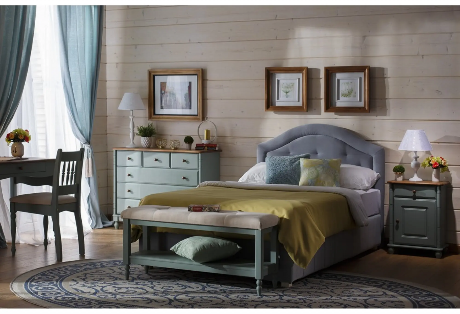 Аналогично, у нас получилось оформить спальню. Для этого мы использовали кровать «Айно». Это большая двухспальная кровать из массива сосны. Рядом с кроватью разместили небольшие тумбочки от IKEA..png)