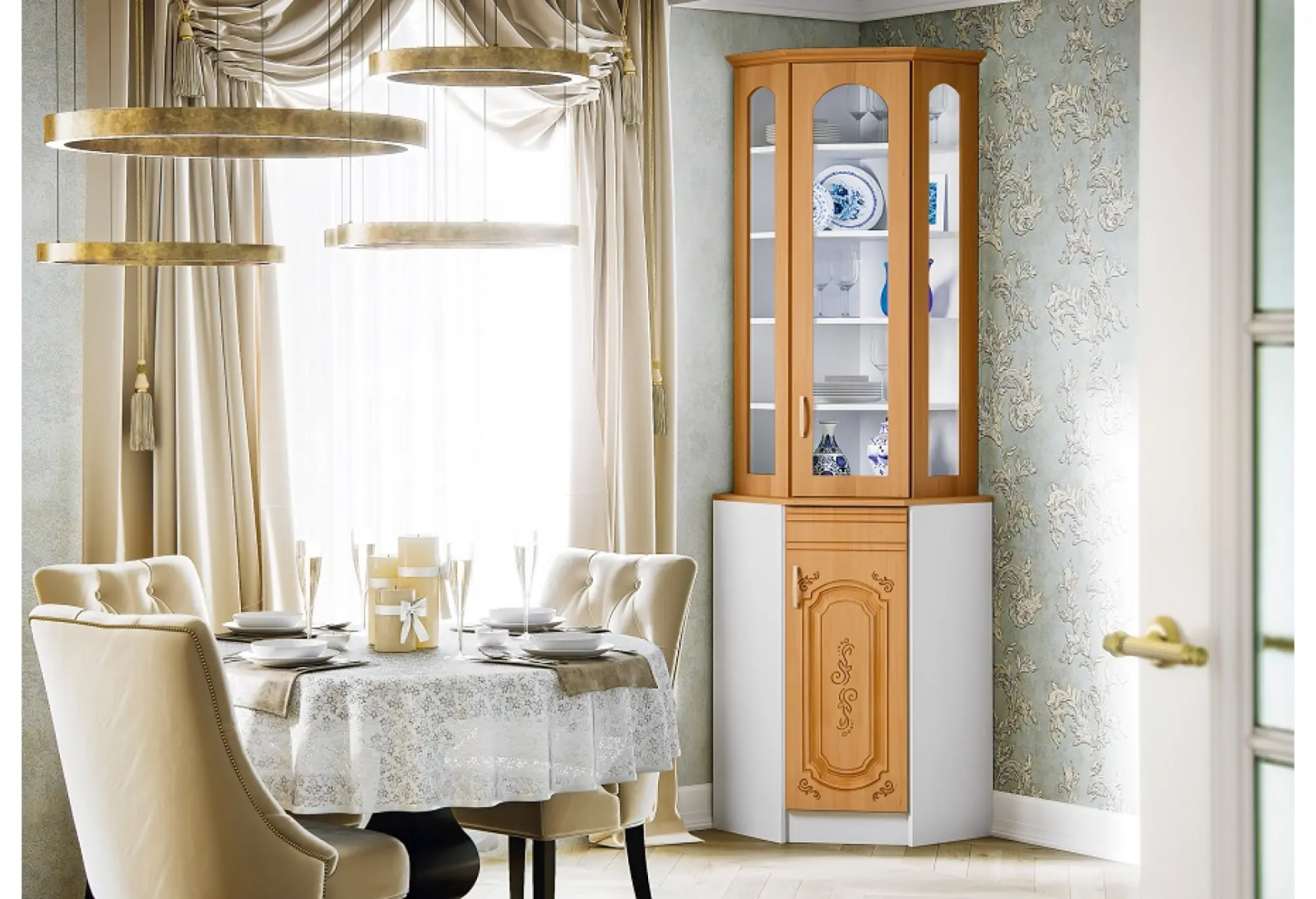 Вот так у нас получилось оформить кухню в небольшой квартире. В комнату мы поставили винтажный, угловой буфет «Лиза», а в центре комнаты разместили небольшой круглый столик. Конечно, большая семья здесь не поместиться, но на двух человек места хватит..png)