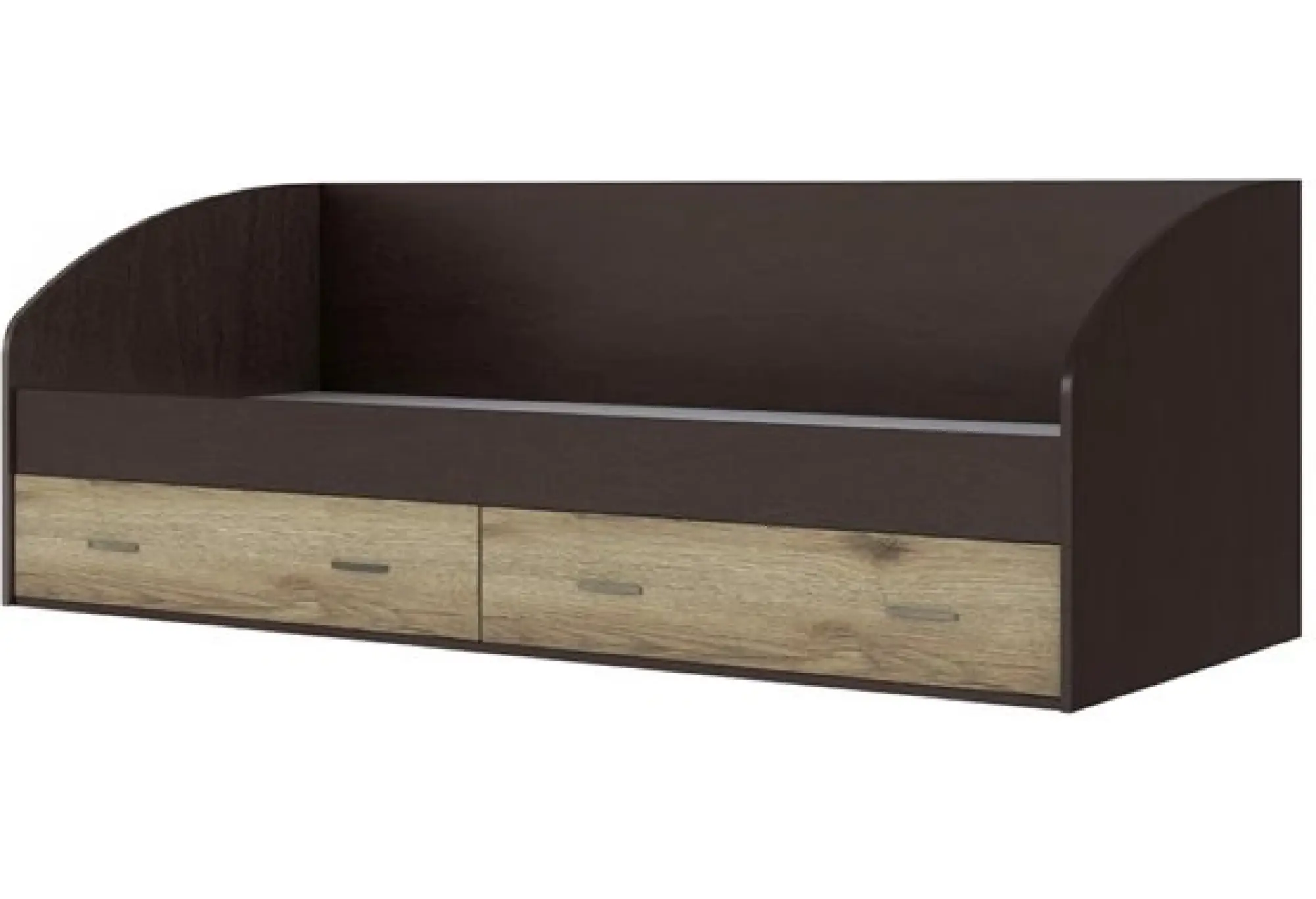 Корпус выполнен из ЛДСП, устойчивой к повседневным нагрузкам и простому уходу. Цветовое сочетание «Ясень шимо / Дуб сонома» создает ощущение теплоты и визуального уюта, хорошо сочетается с нейтральными стенами и текстилем. Настил-основание обеспечивает ровную поверхность под матрас и способствует комфортному лежанию.