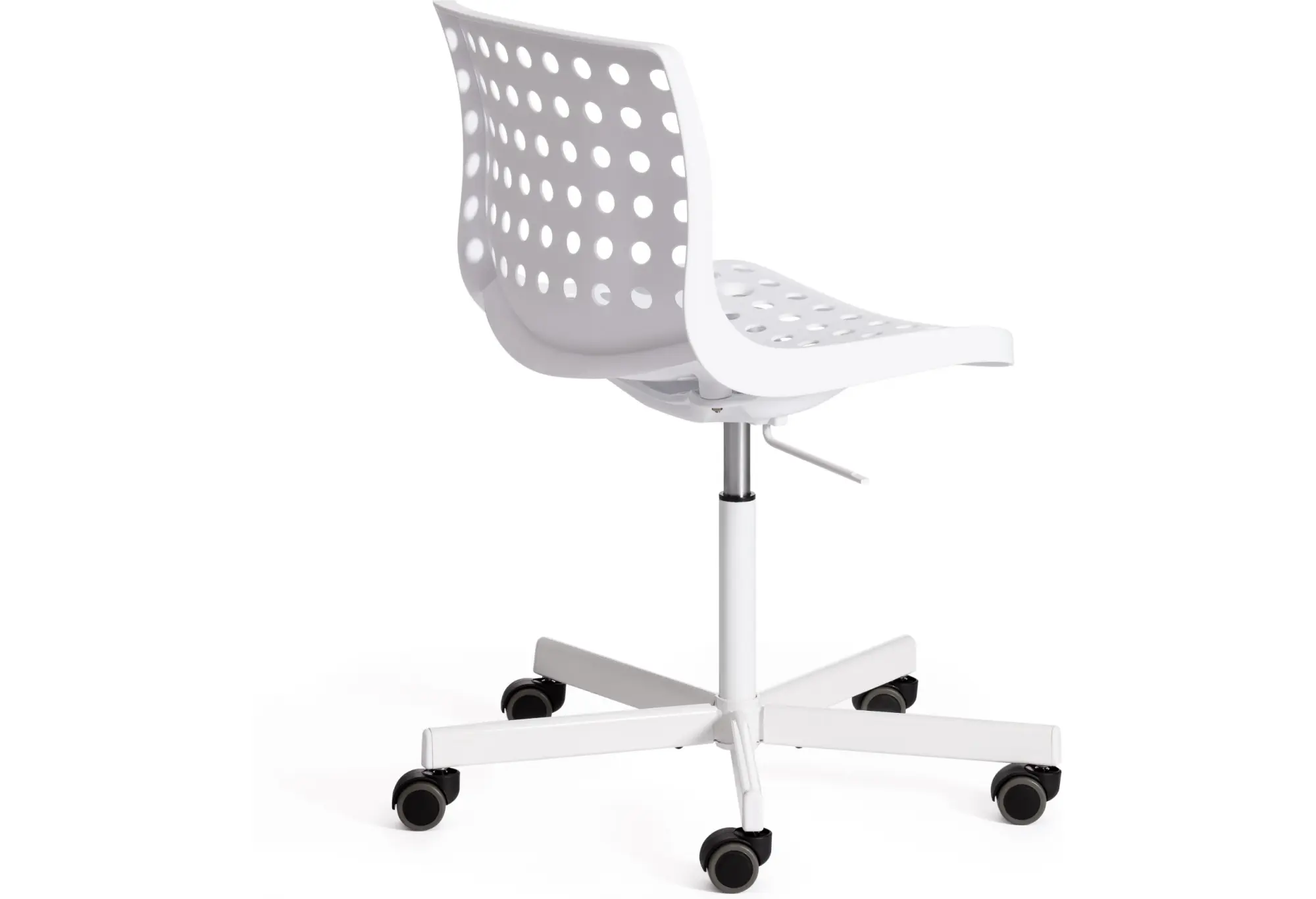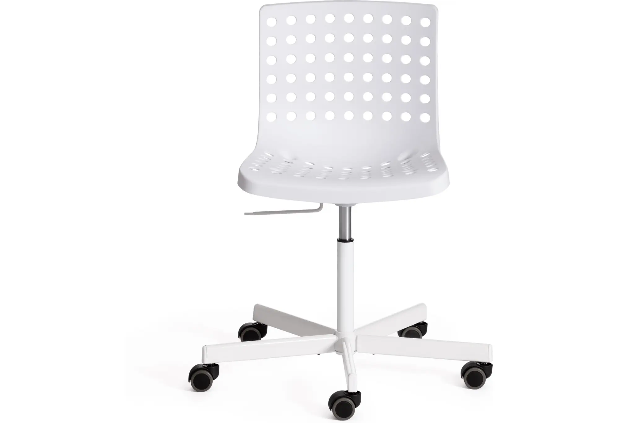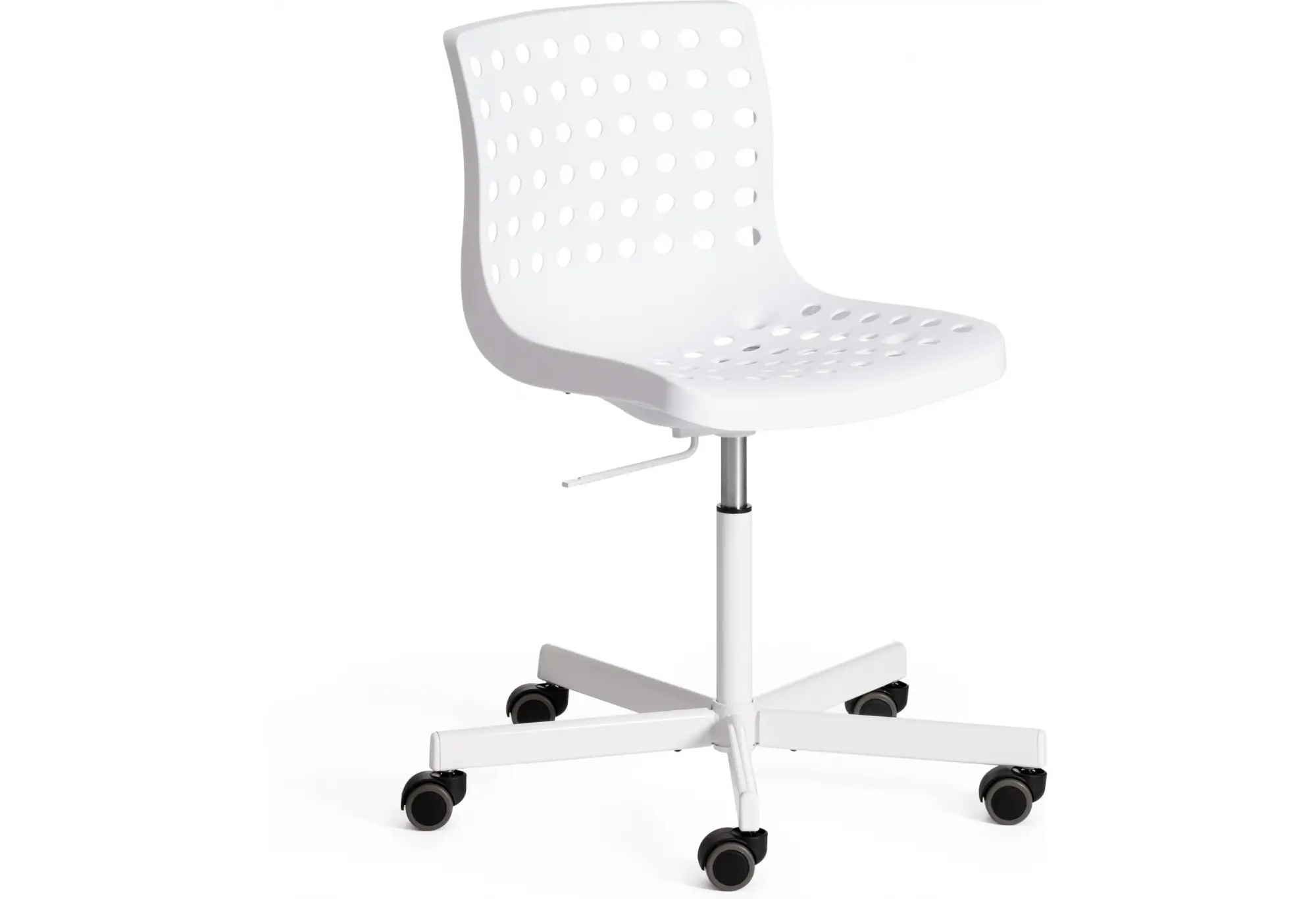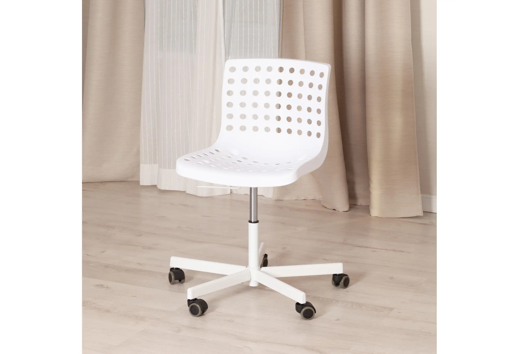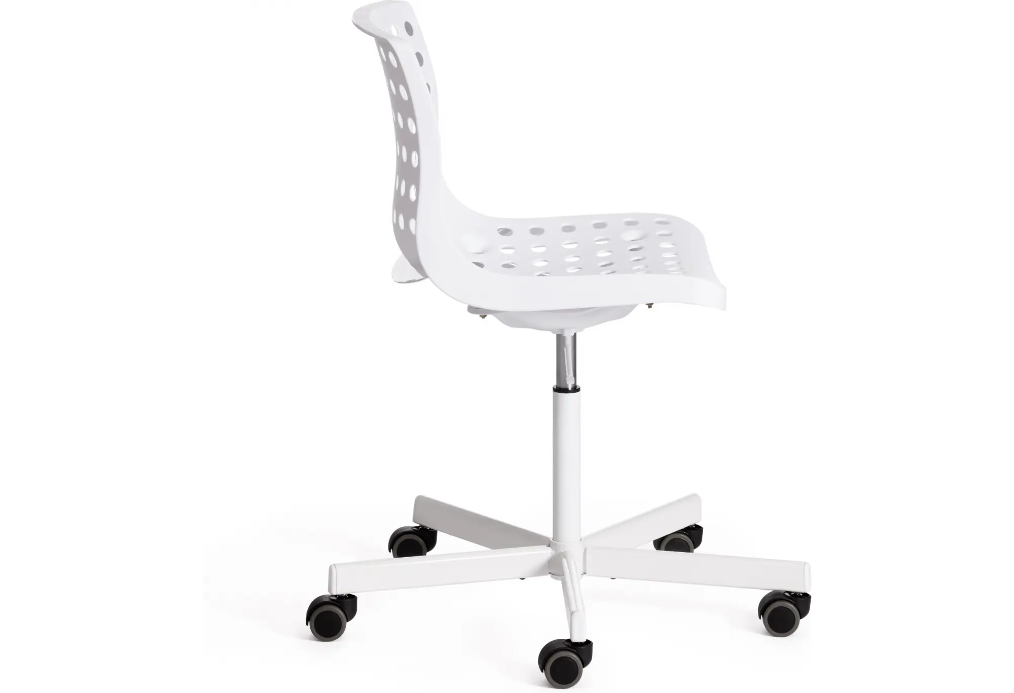 Стильное офисное кресло SKALBERG OFFICE из коллекции Modern выполнено в стиле узнаваемых моделей современных скандинавских дизайнеров компании IKEA. Кресло отлично впишется в интерьер домашнего кабинета, офиса, детской или спальни. Удобное сиденье и спинка позволят с комфортом расположиться на длительное время. Каркас кресла выполнен из литого прочного пластика белого цвета c перфорацией. Крестовина выполнена из металла и покрашена в цвет каркаса кресла. На колесиках кресла есть прорезиненные вставки, которые предотвращают повреждение любых напольных покрытий. Модель практична, надежна, способна выдерживать большие нагрузки, устойчива к воздействию влаги, температурным перепадам и проста в уходе. Кресло очень просто в сборке, инструкция по сборке прилагается.