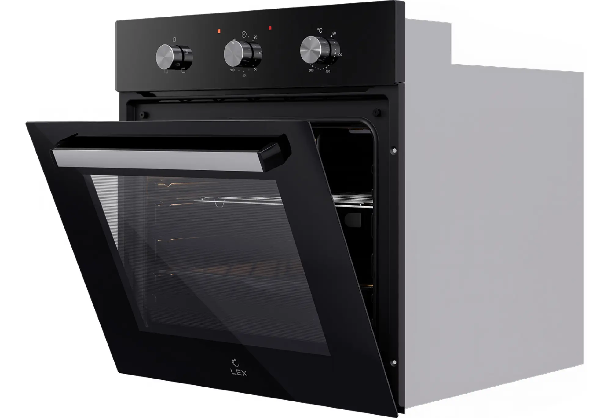 Встраиваемый электрический духовой шкаф LEX EDM 047 BL черного цвета имеет панель управления цвета нержавеющей стали, которая гармонично сочетается с ручкой духовки, выполненную в том же цвете. Духовка обладает стандартными размерами встраивания 60 см, снабжена механическим управлением и яркой подсветкой. Имеются традиционный режим приготовления, а также независимые друг от друга нижний и верхний нагревы. Программируемый таймер позволяет настраивать и контролировать процесс приготовления. Эмаль легкой очистки делает уход за техникой максимально простым. Тангенциальное охлаждение предупреждает нагрев кухонной мебели и обеспечивает равномерное приготовление блюд. Двойное стекло дверцы модели LEX EDM 047 BL надежно защищает от ожогов.