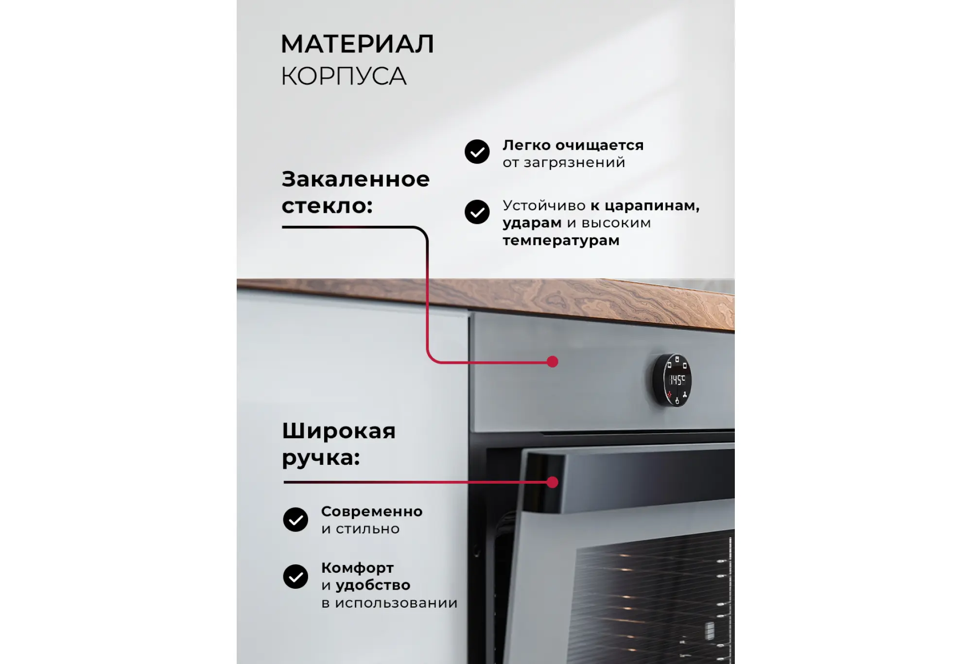 Духовой шкаф LEX EDP 607 Wide Series — комфорт и надежность в одном устройстве Эта модель предлагает просторную камеру объемом 75 литров, 7 режимов приготовления, идеально подходящую для приготовления больших блюд и семейных ужинов. Эргономичная широкая ручка и кольцо управления с экраном подчеркивают современный дизайн и удобство использования.Хромированные телескопические направляющие — удобство и безопасность с первого использования Духовой шкаф LEX EDP 607 Wide Series оснащен хромированными телескопическими направляющими, которые обеспечивают легкий доступ к блюдам во время приготовления. Благодаря им вы можете безопасно и удобно извлекать противни, снижая риск ожогов и делая процесс готовки более комфортным.Богатая цветовая палитра для гармоничного интерьера Модель представлена в следующих цветовых решениях: Black (черный c элементами управления из нержавеющей стали), Grey (серый), Black Black (черный) и White (белый). Такой выбор позволяет подобрать духовку, идеально дополняющую дизайн вашей кухни.Grey (серый)Серый оттенок универсален и гармонирует с любыми стилями и цветами, добавляя кухне современности и изысканности.7 режимов для реализации ваших кулинарных идей Духовка предоставляет семь различных режимов работы, включая традиционный нагрев, конвекцию, гриль и подсветку. С мощностью гриля 1200 Вт и максимальной температурой 270 °C вы сможете приготовить блюда с идеальной текстурой и вкусом.Интуитивное управление для вашего удобства Комбинированная система управления, объединяющая сенсорные и механические элементы, позволяет легко настраивать необходимые параметры. LED-дисплей четко отображает текущие настройки, а цифровой таймер обеспечивает точный контроль процесса приготовления.Современные технологии для безопасной эксплуатации Тройное стекло дверцы и встроенный термостат защищают от перегрева, обеспечивая безопасность использования. Каталитическая система очистки облегчает уход за духовкой, эффективно устраняя жировые отложения. Быстросъемная дверца упрощает обслуживание прибора.Исключительные результаты для каждого блюда С LEX EDP 607 Wide Series и его энергопотреблением класса A вы сможете наслаждаться превосходными кулинарными результатами, делая процесс приготовления приятным и эффективным.