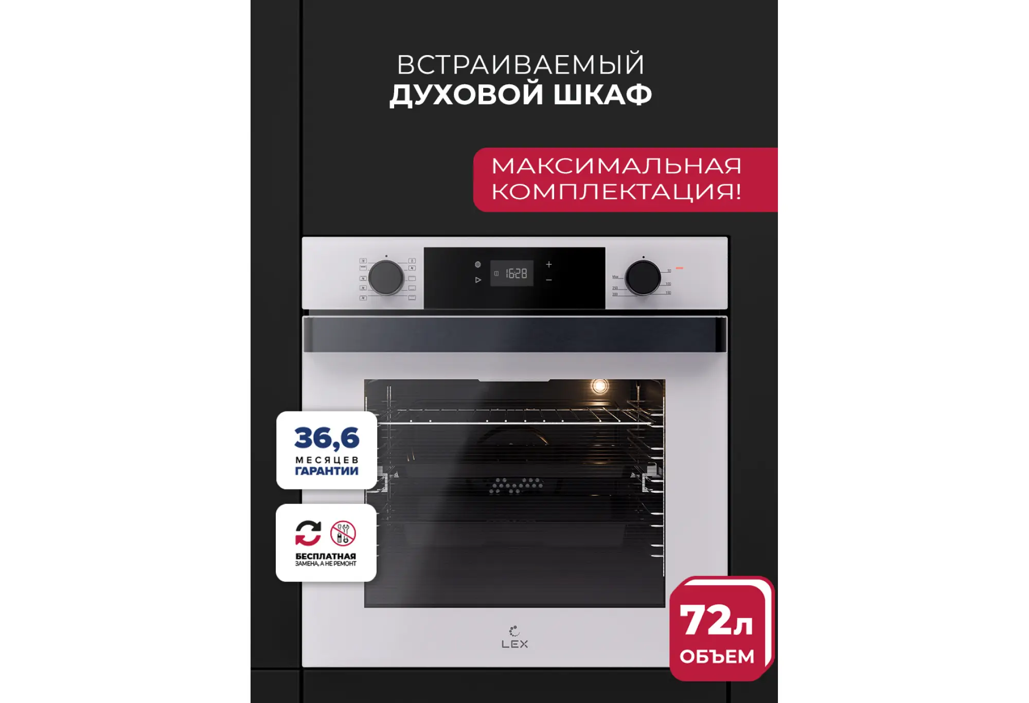 Духовой шкаф LEX EDP 610 Wide Series — сочетание удобства и функциональностиЭта модель серии Wide выделяется стильной широкой ручкой, наличием 10 программ и смешанным управлением с LED экраном. Вместительная камера объемом 75 литров, обеспечит удобство и комфорт в использовании. Тройное стекло дверцы гарантирует отличную теплоизоляцию, сохраняя стабильную температуру внутри шкафа.Хромированные телескопические направляющие — удобство и безопасность в использованииДуховой шкаф LEX EDP 610 Wide Series оснащен хромированными телескопическими направляющими, которые обеспечивают легкий доступ к блюдам во время готовки. Они позволяют безопасно и удобно извлекать противни, минимизируя риск ожогов и облегчая процесс приготовления.Широкая цветовая палитра для идеального сочетания с вашим интерьеромМодель LEX EDP 610 Wide Series доступна в различных цветовых решениях: White (белый), Black (черный), Dark Inox (темная нержавеющая сталь), Grey (серый) и Inox (нержавеющая сталь). Такой выбор позволяет подобрать духовку, которая гармонично впишется в дизайн вашей кухни.LEX EDP 610 Wide Series — 10 режимов для ваших кулинарных экспериментовШирокий выбор режимов позволяет адаптировать духовку под любой рецепт. Среди них — традиционный нагрев, конвекция с кольцевым нагревательным элементом, гриль и размораживание, что делает модель универсальной для готовки любых блюд. Мощность гриля 2100 Вт и температурный диапазон от 50 до 270°C обеспечивают быстрое и качественное приготовление пищи с идеальной текстурой.Точная настройка для удобного использованияСмешанное управление сочетает сенсорные и механические элементы, обеспечивая точную регулировку параметров. LED-дисплей отображает все необходимые данные, а цифровой таймер помогает задать точное время готовки. Хромированные телескопические направляющие добавляют удобства, позволяя безопасно размещать и извлекать противни на нужной высоте.Безопасность и простота уходаТройное стекло дверцы защищает от перегрева, а термостат обеспечивает дополнительную надежность. Каталитическая система очистки значительно облегчает уход за духовкой, помогая легко удалять жировые загрязнения. Быстросъемная дверца и набор телескопических направляющих делают процесс эксплуатации комфортным и безопасным.Идеальные результаты для каждого блюдаБлагодаря режимам конвекции и гриля, блюда готовятся равномерно и получают аппетитную корочку. Духовой шкаф с энергоэффективностью класса A позволяет готовить не только вкусно, но и экономично, делая этот процесс максимально приятным и удобным.