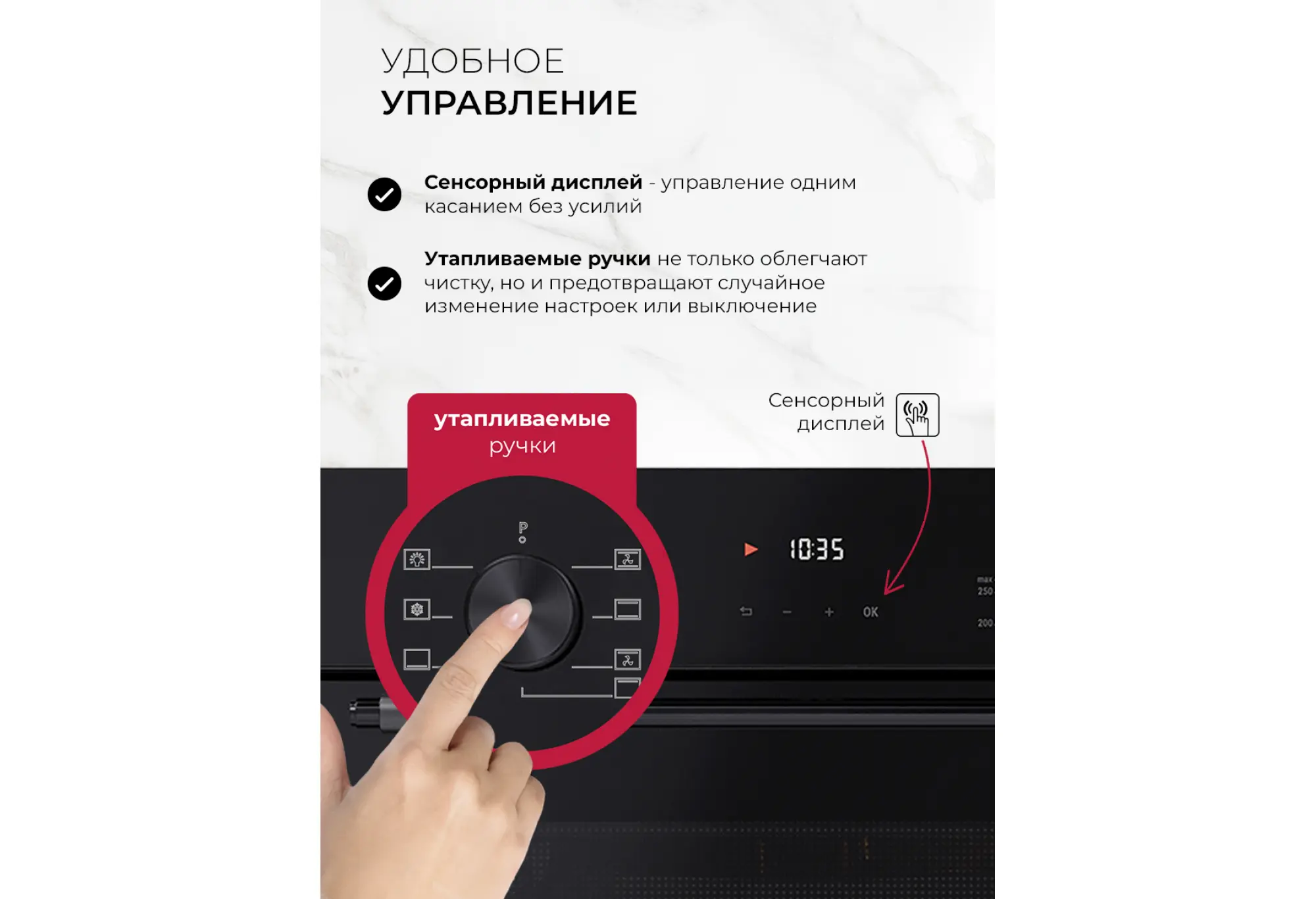 - Утапливаемые ручки для удобства очистки и аккуратного внешнего вида