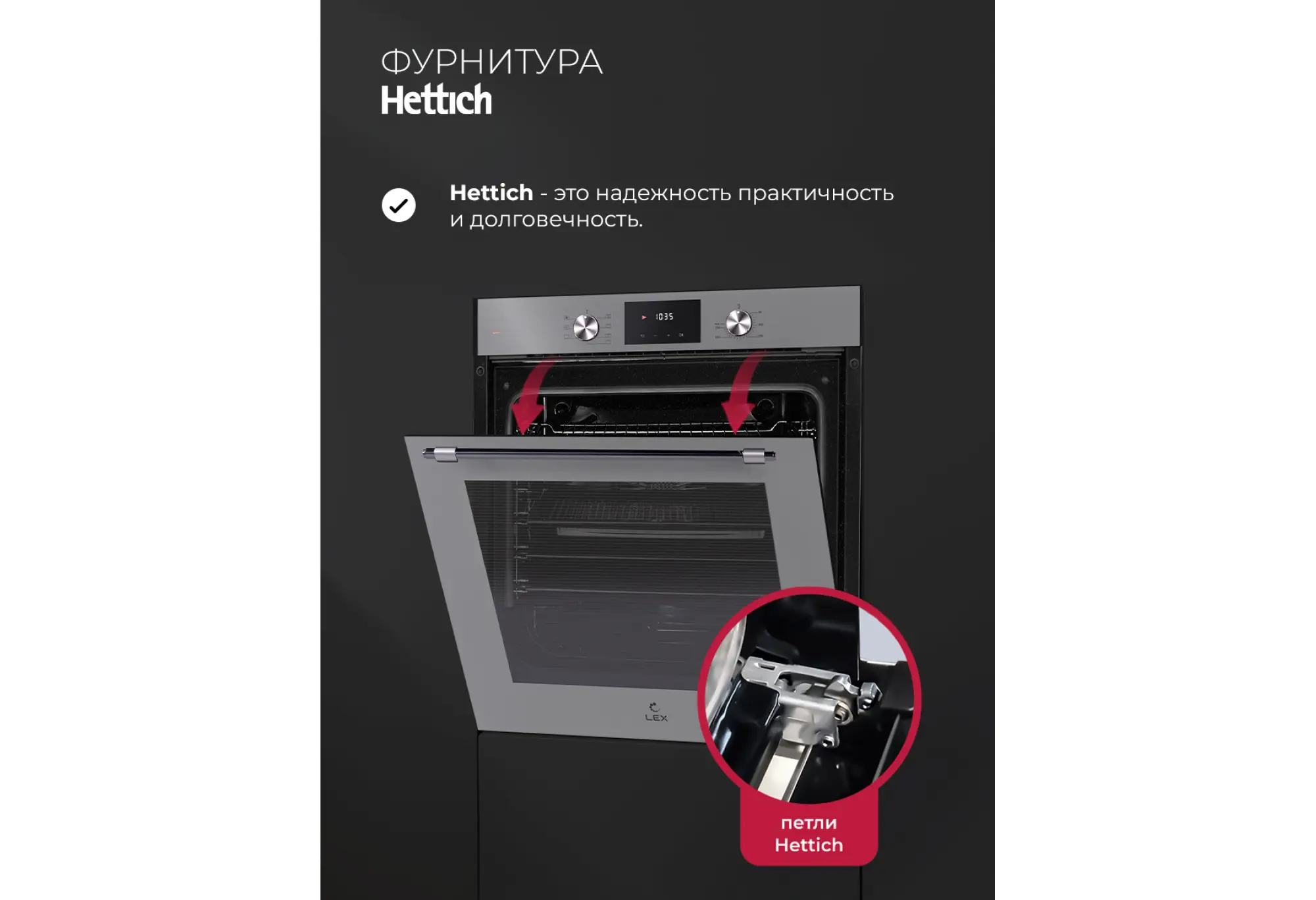 Электрический духовой шкаф LEX EDP 671 GR MAX вписывается в современный кухонный интерьер и рассчитан на регулярное использование без лишних сложностей. Сочетание нержавеющей стали, серого стекла и лаконичной панели управления делает модель уместной как в светлых, так и в темных гарнитурах.