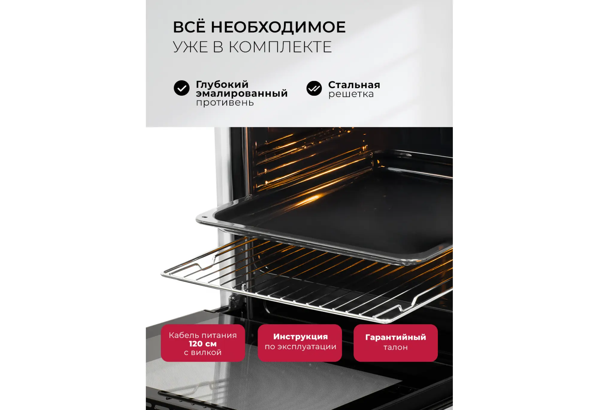 Преимущества:- Объем 78 л — комфортное приготовление на нескольких уровнях