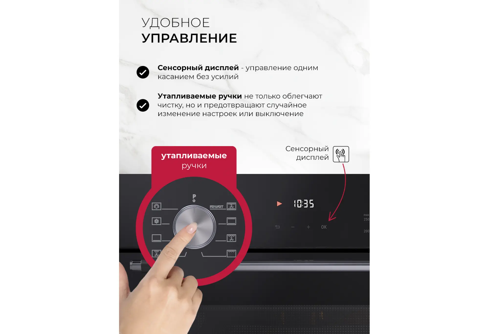 Духовой шкаф относится к серии MAX, основная особенность которой — увеличенный объем рабочей камеры (78 литров). Кроме того, эти модели имеют утапливаемые ручки управления, а в дверце установлено стекло немецкого бренда SCHOTT.LEX EDP 680 MAX – Откройте новые горизонты в кулинарии с 8 режимами работы!Этот духовой шкаф создан для тех, кто хочет максимум возможностей в одном приборе. С LEX EDP 680 вы получаете 8 различных режимов работы, включая эксклюзивную функцию FryArt, которая придаст вашим блюдам непревзойдённую текстуру. Хотите идеальный гриль, конвекцию или нижний нагрев? Эта модель справится с любой задачей.Точная настройка под ваши нуждыУправление здесь совмещает в себе сенсорные и механические элементы, что позволяет гибко настраивать параметры готовки. Удобный LED-дисплей отображает все важные данные, а утапливаемые ручки добавляют простоты в эксплуатации и поддержании чистоты.Современные технологии для максимальной безопасностиТангенциальное охлаждение предотвращает перегрев устройства, а двойное стекло дверцы сохраняет безопасную температуру снаружи. Легкосъёмное внутреннее стекло делает уход за духовкой лёгким и быстрым.Результат – каждый раз идеальныйС режимами конвекции и гриля, вам больше не нужно гадать – результат всегда будет превосходным. Мощность в 2509 Вт позволяет достигать максимальной температуры в 250°C за считанные минуты.