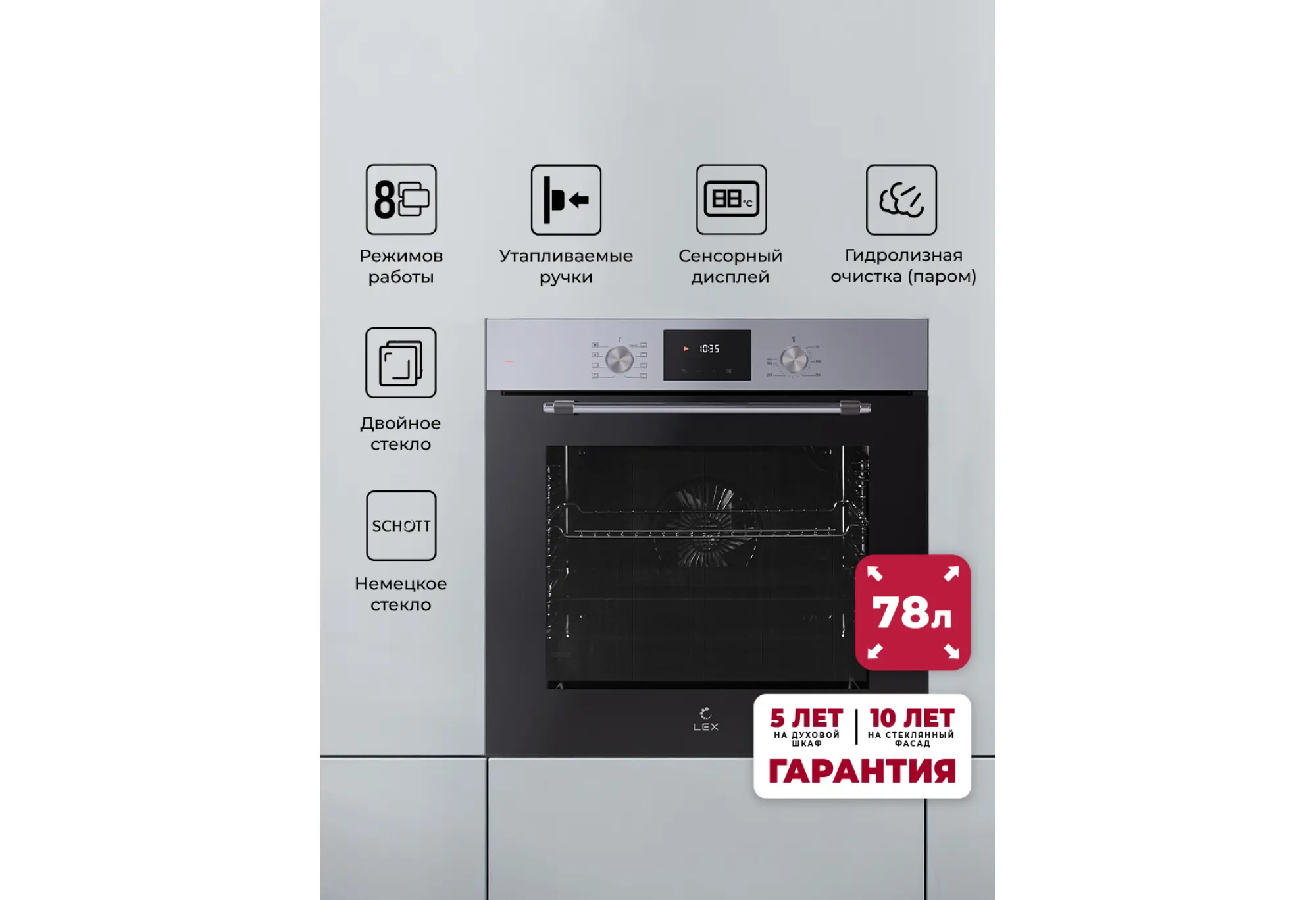 Духовой шкаф относится к серии MAX, основная особенность которой — увеличенный объем рабочей камеры (78 литров). Кроме того, эти модели имеют утапливаемые ручки управления, а в дверце установлено стекло немецкого бренда SCHOTT.LEX EDP 680 MAX – Откройте новые горизонты в кулинарии с 8 режимами работы!Этот духовой шкаф создан для тех, кто хочет максимум возможностей в одном приборе. С LEX EDP 680 вы получаете 8 различных режимов работы, включая эксклюзивную функцию FryArt, которая придаст вашим блюдам непревзойдённую текстуру. Хотите идеальный гриль, конвекцию или нижний нагрев? Эта модель справится с любой задачей.Точная настройка под ваши нуждыУправление здесь совмещает в себе сенсорные и механические элементы, что позволяет гибко настраивать параметры готовки. Удобный LED-дисплей отображает все важные данные, а утапливаемые ручки добавляют простоты в эксплуатации и поддержании чистоты.Современные технологии для максимальной безопасностиТангенциальное охлаждение предотвращает перегрев устройства, а двойное стекло дверцы сохраняет безопасную температуру снаружи. Легкосъёмное внутреннее стекло делает уход за духовкой лёгким и быстрым.Результат – каждый раз идеальныйС режимами конвекции и гриля, вам больше не нужно гадать – результат всегда будет превосходным. Мощность в 2509 Вт позволяет достигать максимальной температуры в 250°C за считанные минуты.