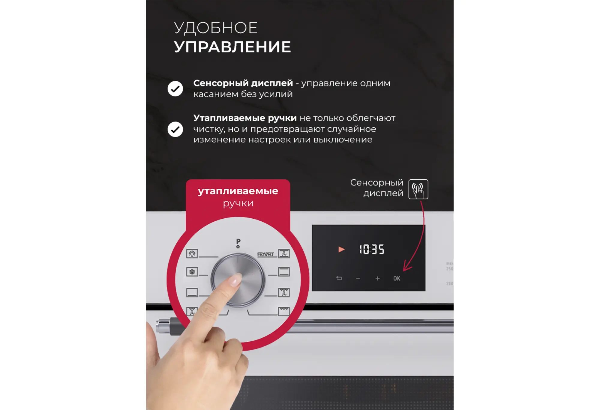 - Утапливаемые ручки и LED-дисплей для удобного и наглядного управления