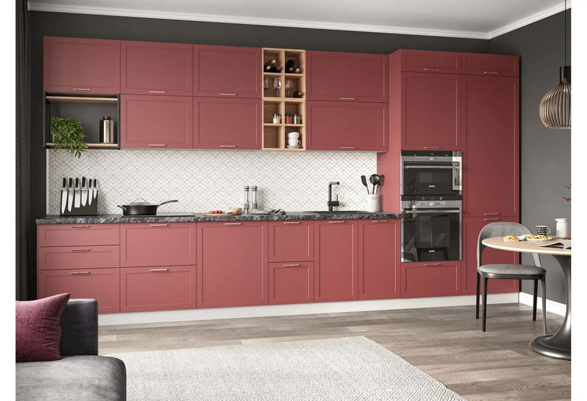Модульная кухня "Квадро" Красная кожа МДФ