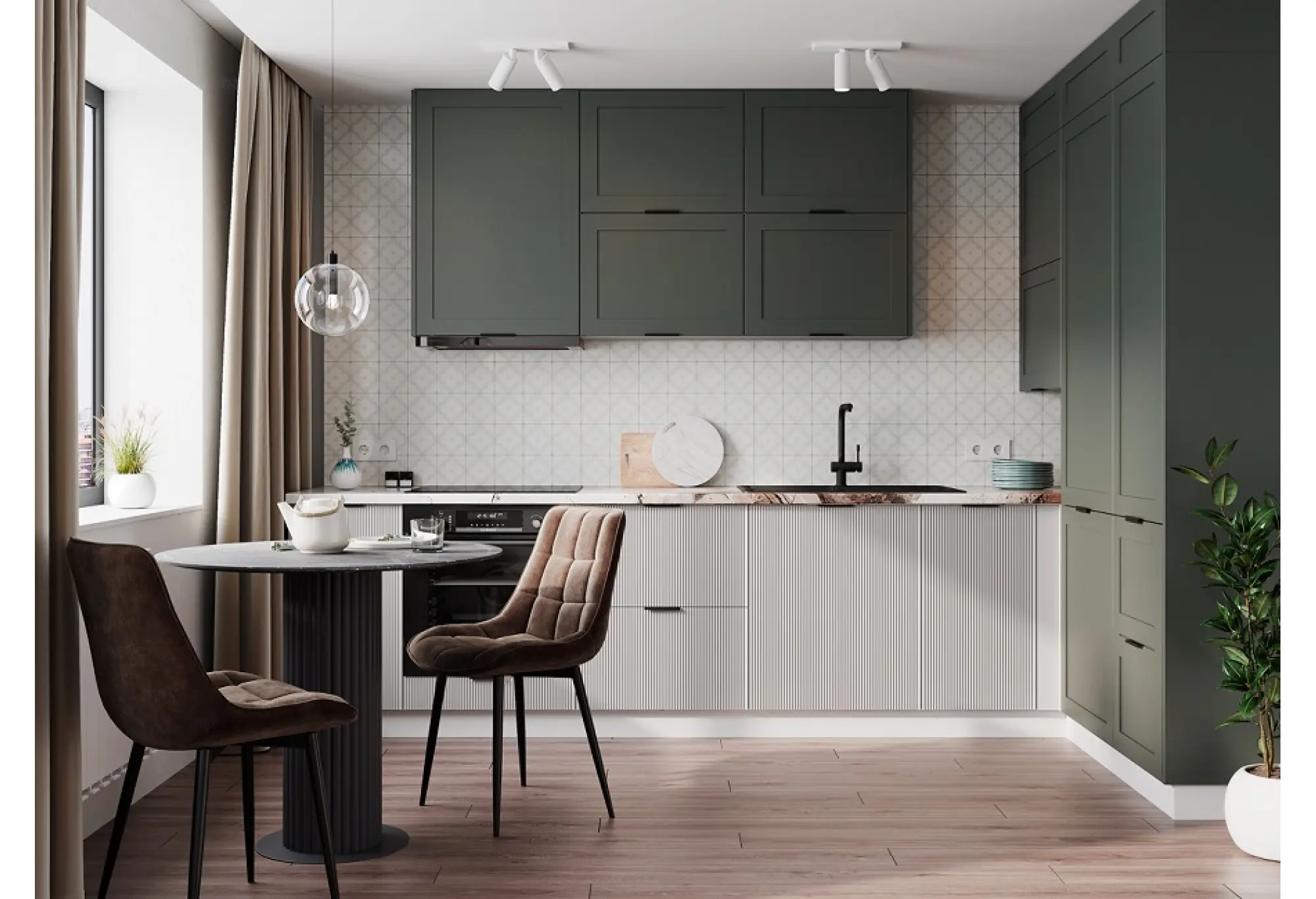 Модульная кухня "Квадро" Оливково-зеленый / "Мелисса" Белый МДФ