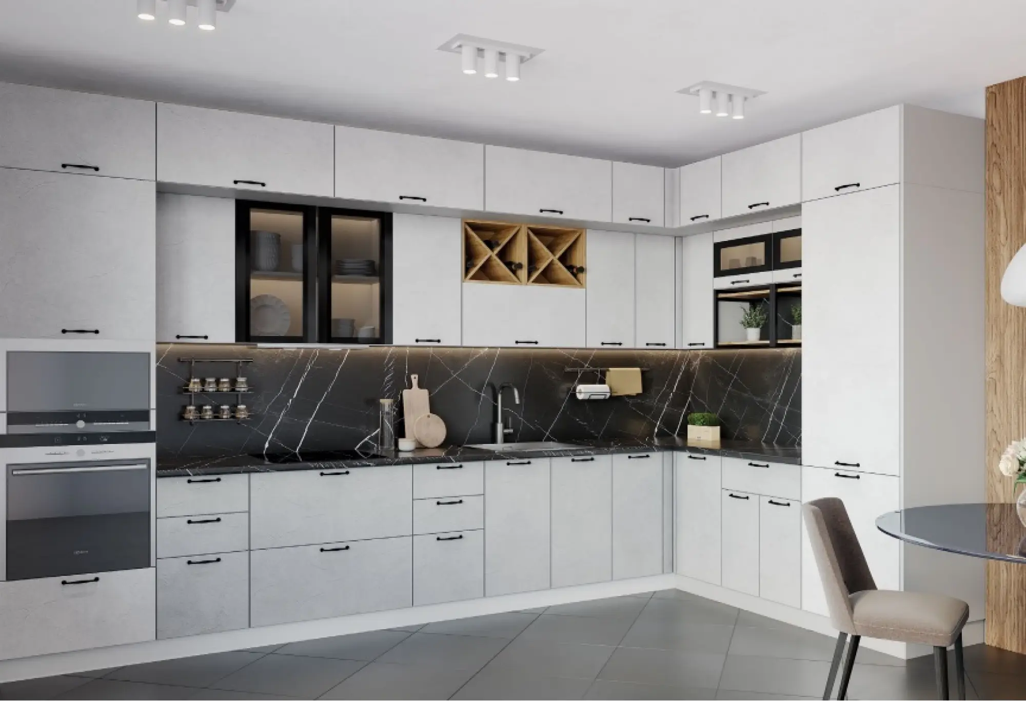 Модульная кухня "Лофт" Штукатурка белая / Штукатурка серая МДФ