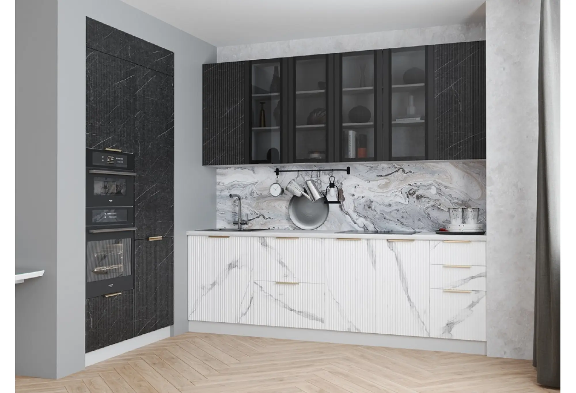 Модульная кухня "Монца" Гранит Оникс / Мрамор Арктик МДФ