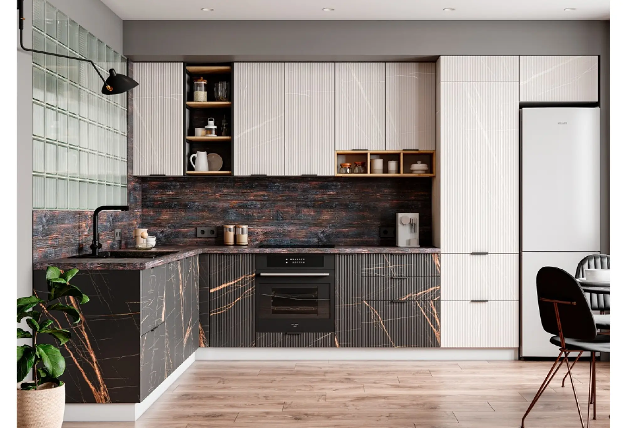 Модульная кухня "Монца" Кварц бежевый / Кварц чёрный МДФ