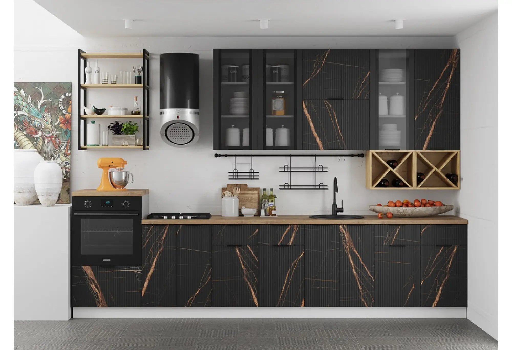Модульная кухня "Монца" Кварц чёрный МДФ