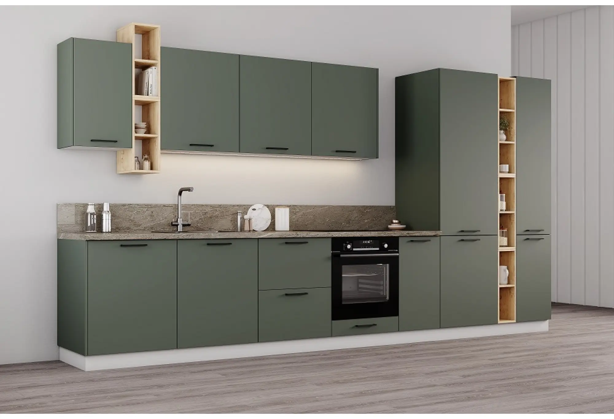 Модульная кухня "Ройс" Оливково-зеленый МДФ Композиция № 1