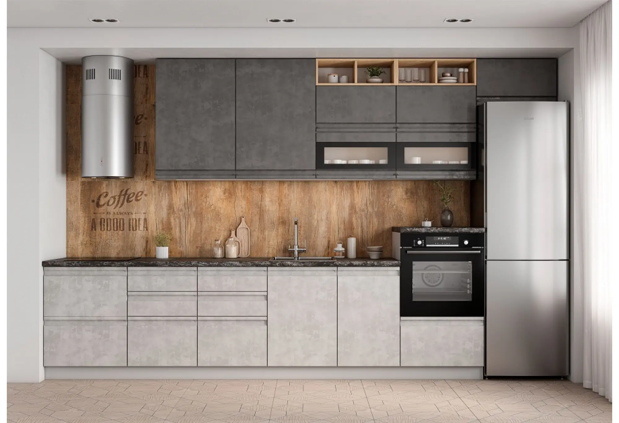 Модульная кухня "Скала" Бетон светлый / Бетон тёмный МДФ Композиция №1