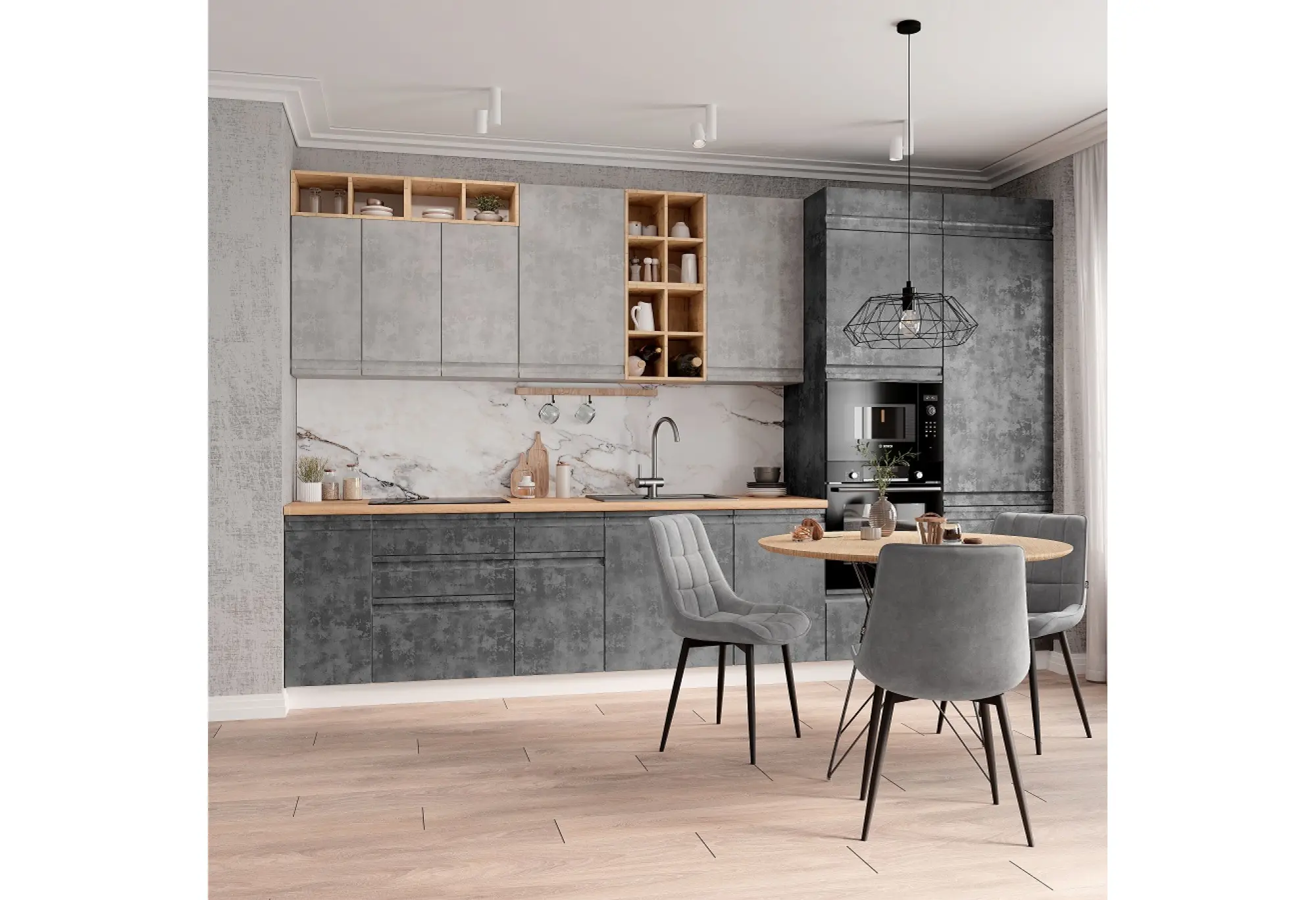 Модульная кухня "Скала" Бетон светлый / Бетон тёмный МДФ Композиция №2