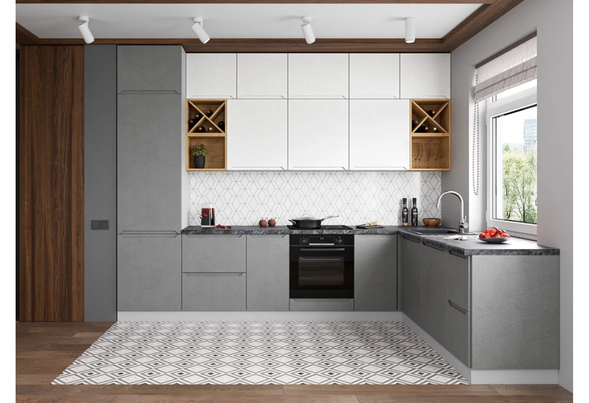 Модульная кухня "Тренто" Штукатурка серая / Штукатурка белая МДФ Композиция № 3