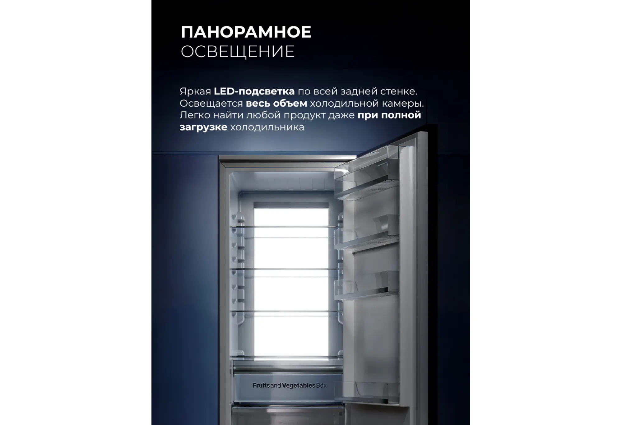 Двухкамерный холодильник LEX LBI 193.3ID Grey оснащен современным инверторным компрессором, который гарантирует эффективную и практически бесшумную работу. Он также обеспечивает низкий расход энергии и долго поддерживает температуру без электропитания. Он оснащен технологией No Frost благодаря чему уход за холодильником становится гораздо легче. При большом объеме, мощной заморозке и яркой подсветке эта модель высотой 193 см обладает прекрасной энергоэффективностью и низким уровнем шума. Электронная панель управления удобна и долговечна, а режим сохранения температуры выручит при отключении электричества. Для вашего комфорта дверцу холодильника можно закрепить справа или слева; специальный сенсор позаботится о том, чтобы она всегда была герметично закрыта. Модель оснащена ящиком, в котором можно отдельно настраивать уровень влажности, создавая идеальные условия для хранения разных видов овощей и фруктов.