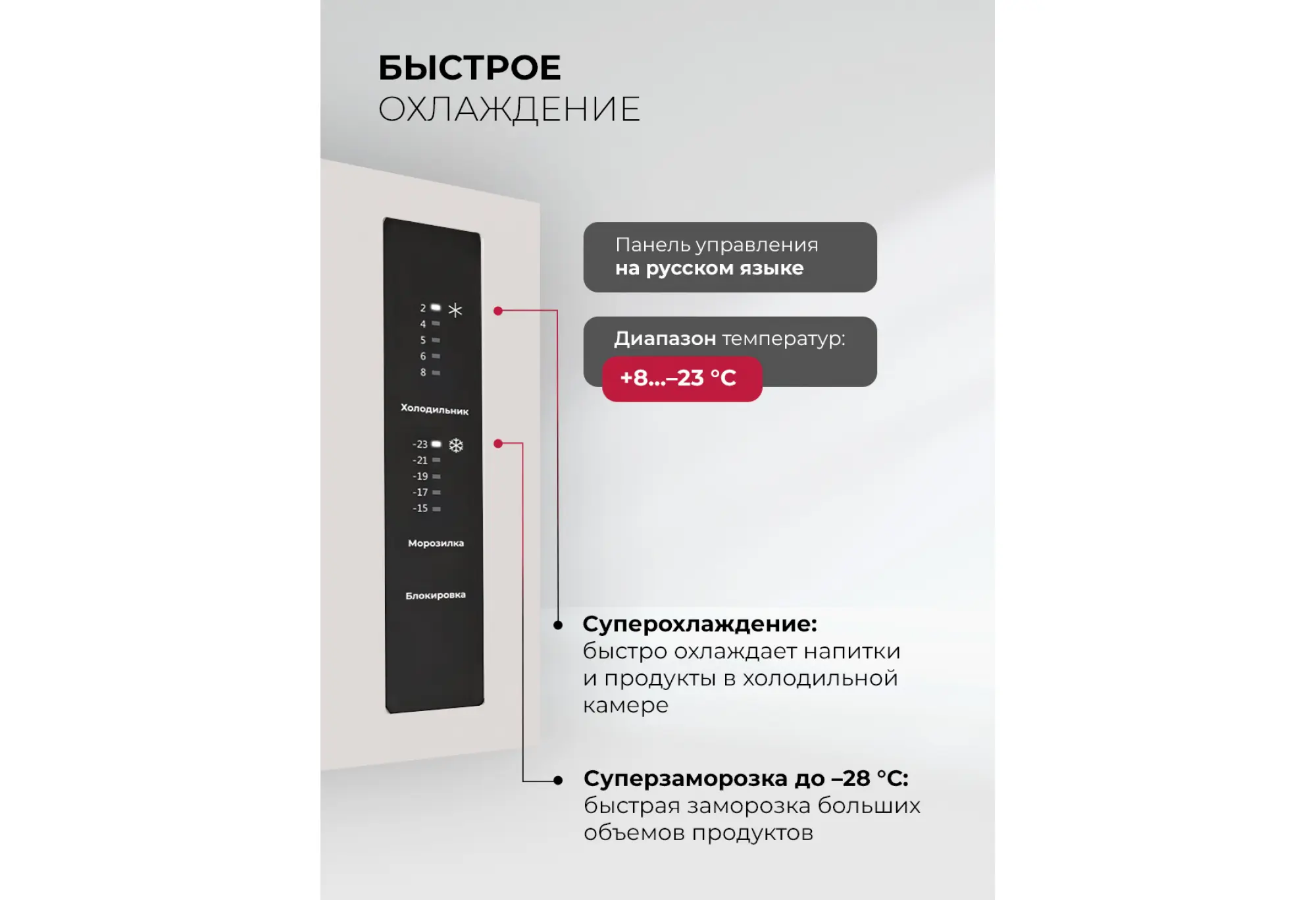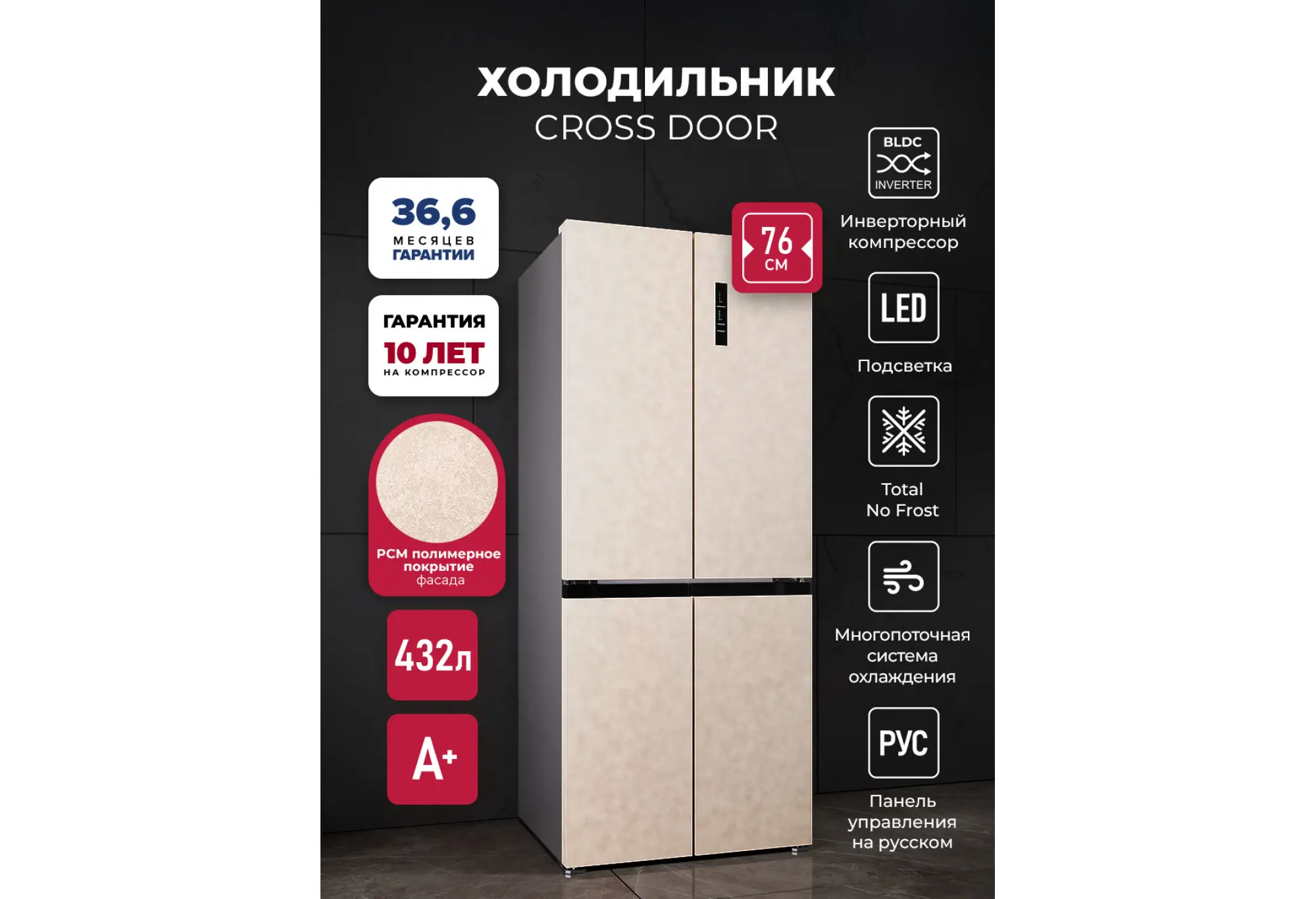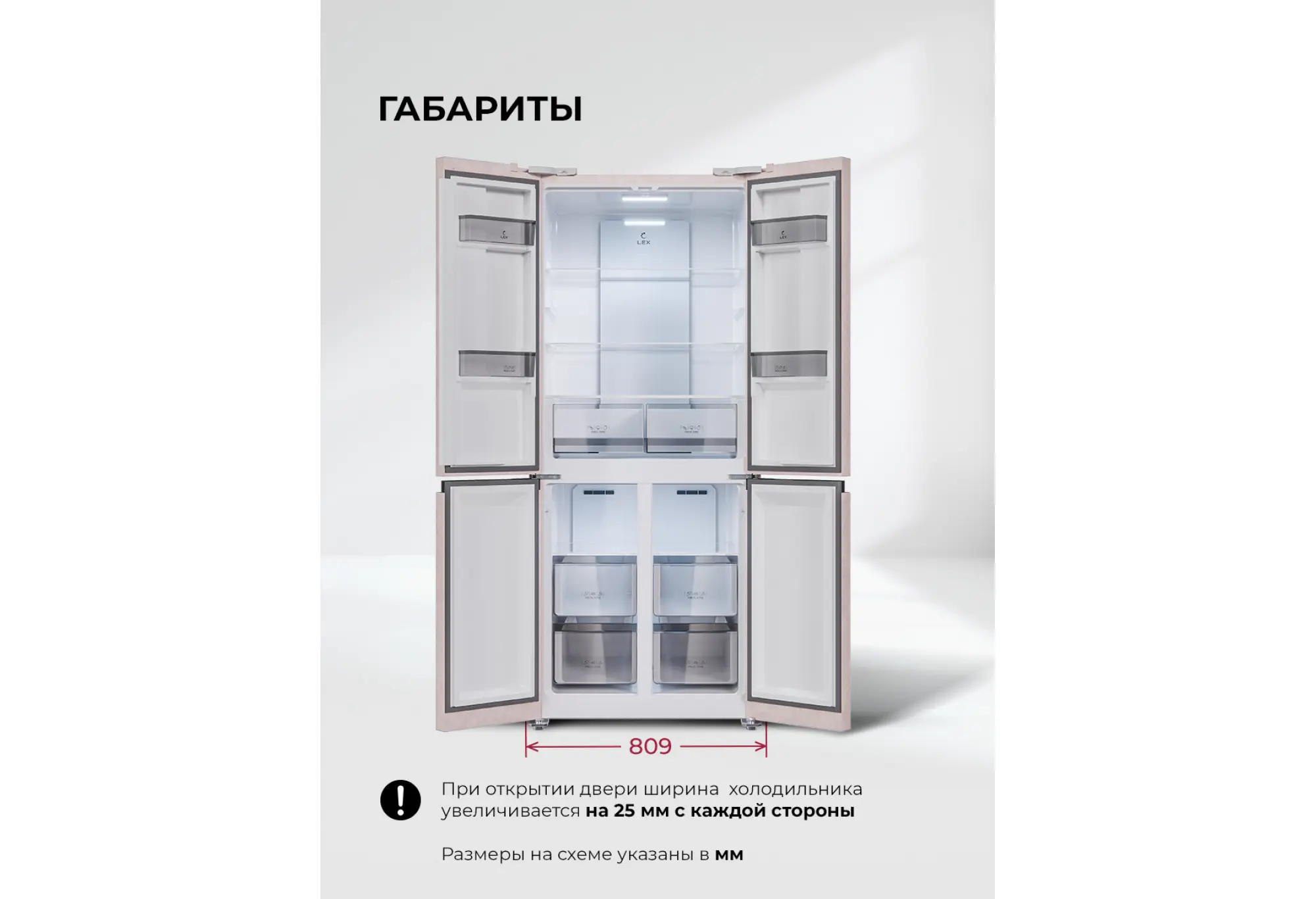 LCD432 — холодильник с двумя морозильными отделениями и самой современной технической начинкой. Благодаря конструкции CROSS DOOR и удобной электронной панели управления со светодиодными индикаторами в рабочих камерах всегда легко поддерживать наиболее подходящие параметры хранения. Большой холодильник с энергоэффективным инверторным компрессором имеет систему охлаждения Total No Frost, поэтому не требует разморозки. Запатентованная вентиляционная система Volume Stream Air равномерно распределяет холодный воздух по всем отделениям и зонам. Яркие LED-лампы помогут быстро найти все любимые продукты даже при максимальной загрузке холодильника. Модель имеет температурный диапазон от +8 °С в холодильном до –23 °С в морозильном отделении. А функция суперзаморозки быстро устанавливает значение –28 °С. Холодильная камера тоже оснащена режимом ускоренного охлаждения. При отключении света также пригодится функция сохранения температуры на 12 часов. Модель представлена в сером и белом металлическом оформлении. Ширина 76 см подойдет для любой, даже небольшой кухни. С холодильником LEX LCD432 ваши мечты станут реальностью!