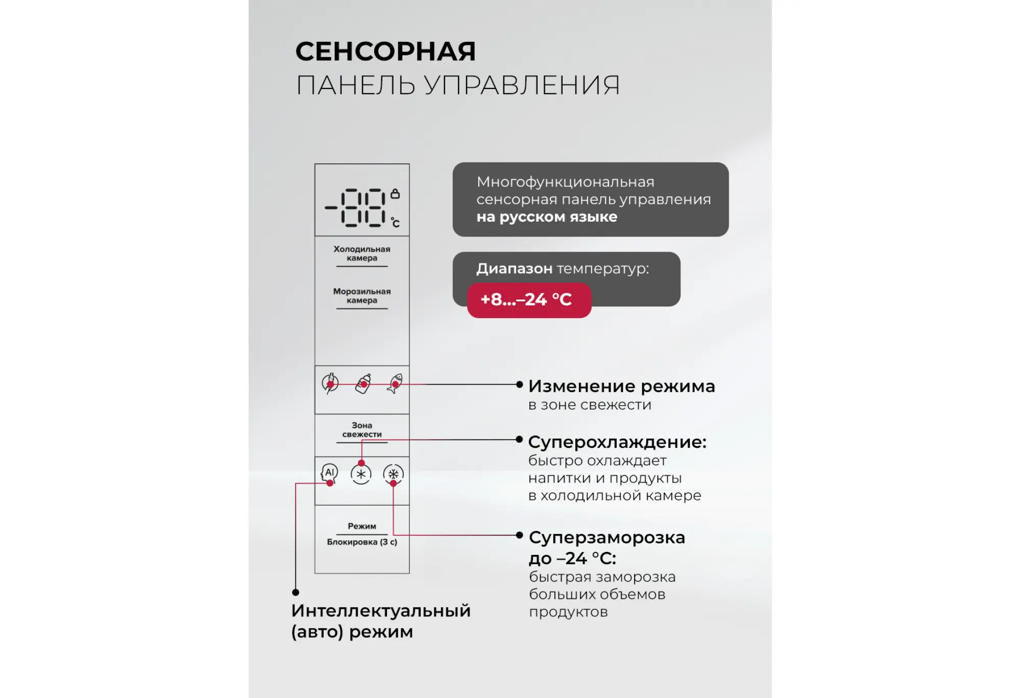 - Русскоязычная сенсорная панель управления