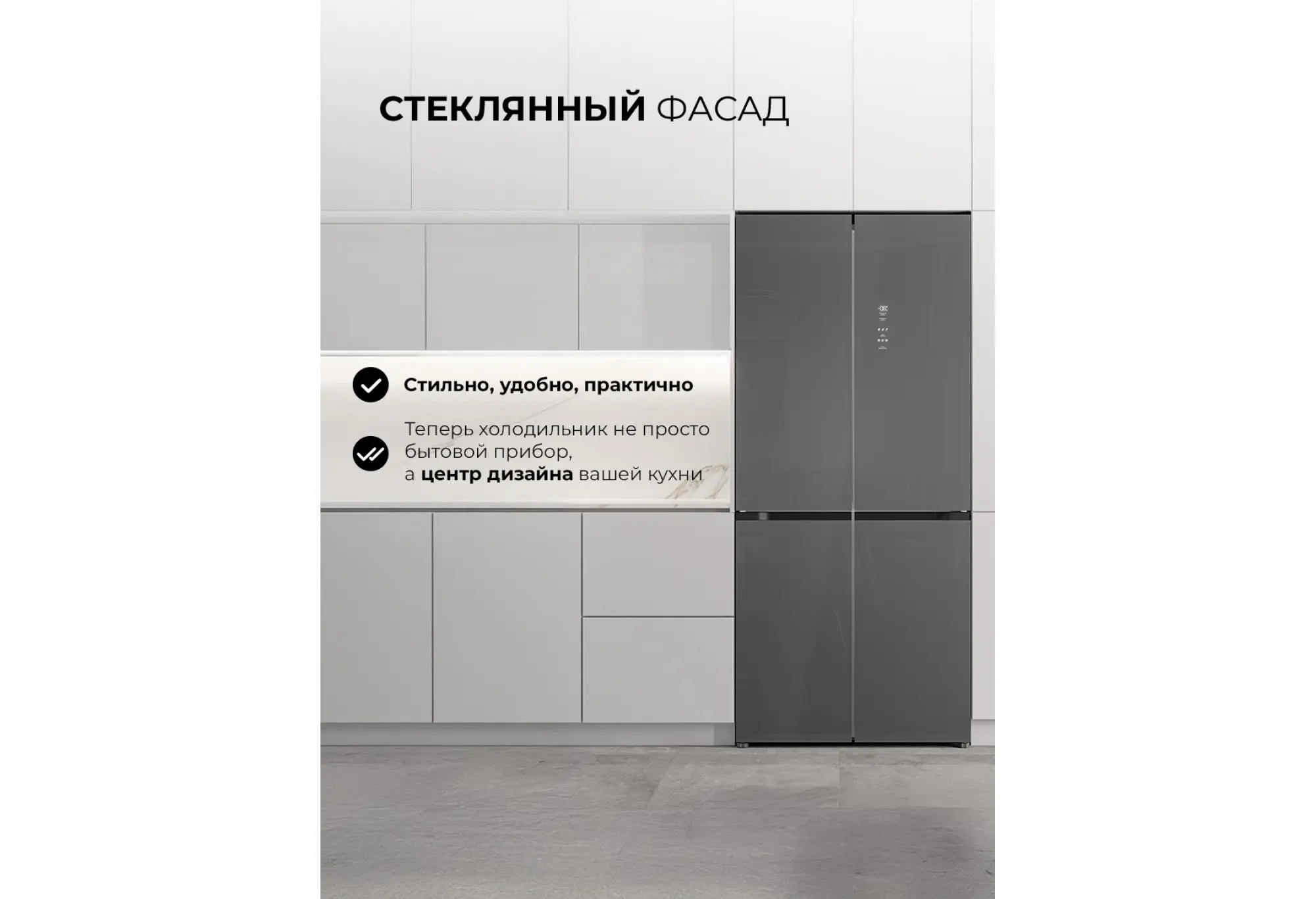 LEX LCD485GRID — современный четырехдверный холодильник Cross Door с инверторным компрессором и стеклянными фасадами, который станет выразительным акцентом в интерьере кухни. Лаконичный серый цвет и ровная глянцевая поверхность дверей легко сочетаются как с светлыми, так и с темными гарнитурами. Вентиляция, расположенная в нижней части корпуса, позволяет интегрировать холодильник в шкаф или нишу без нарушения теплообмена.