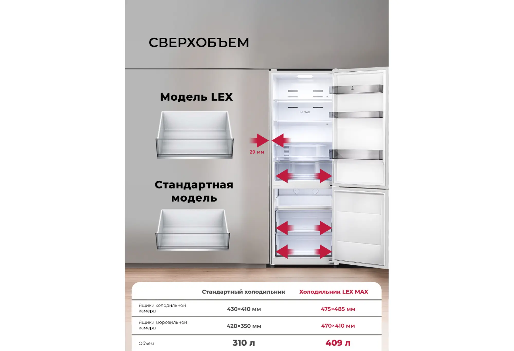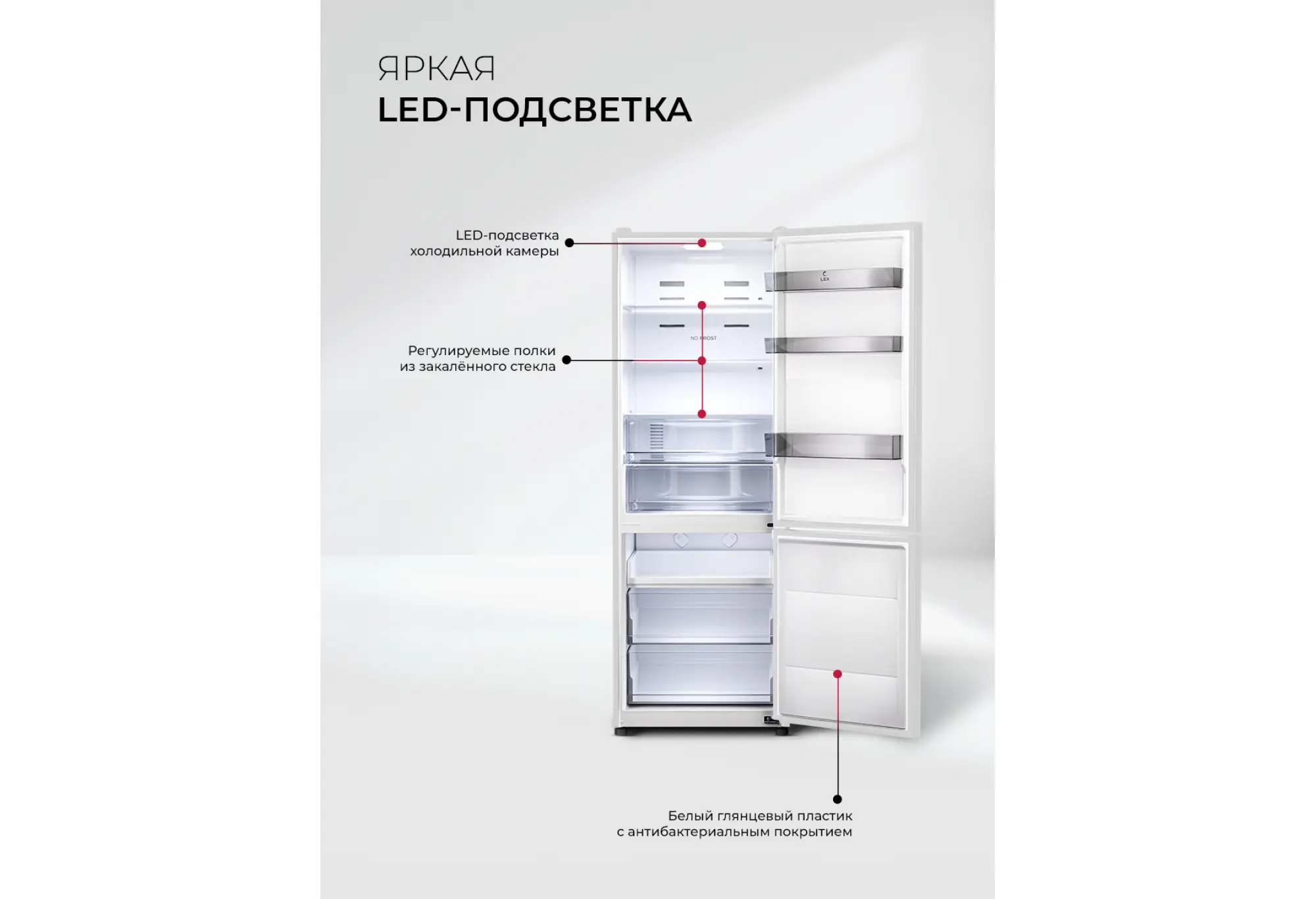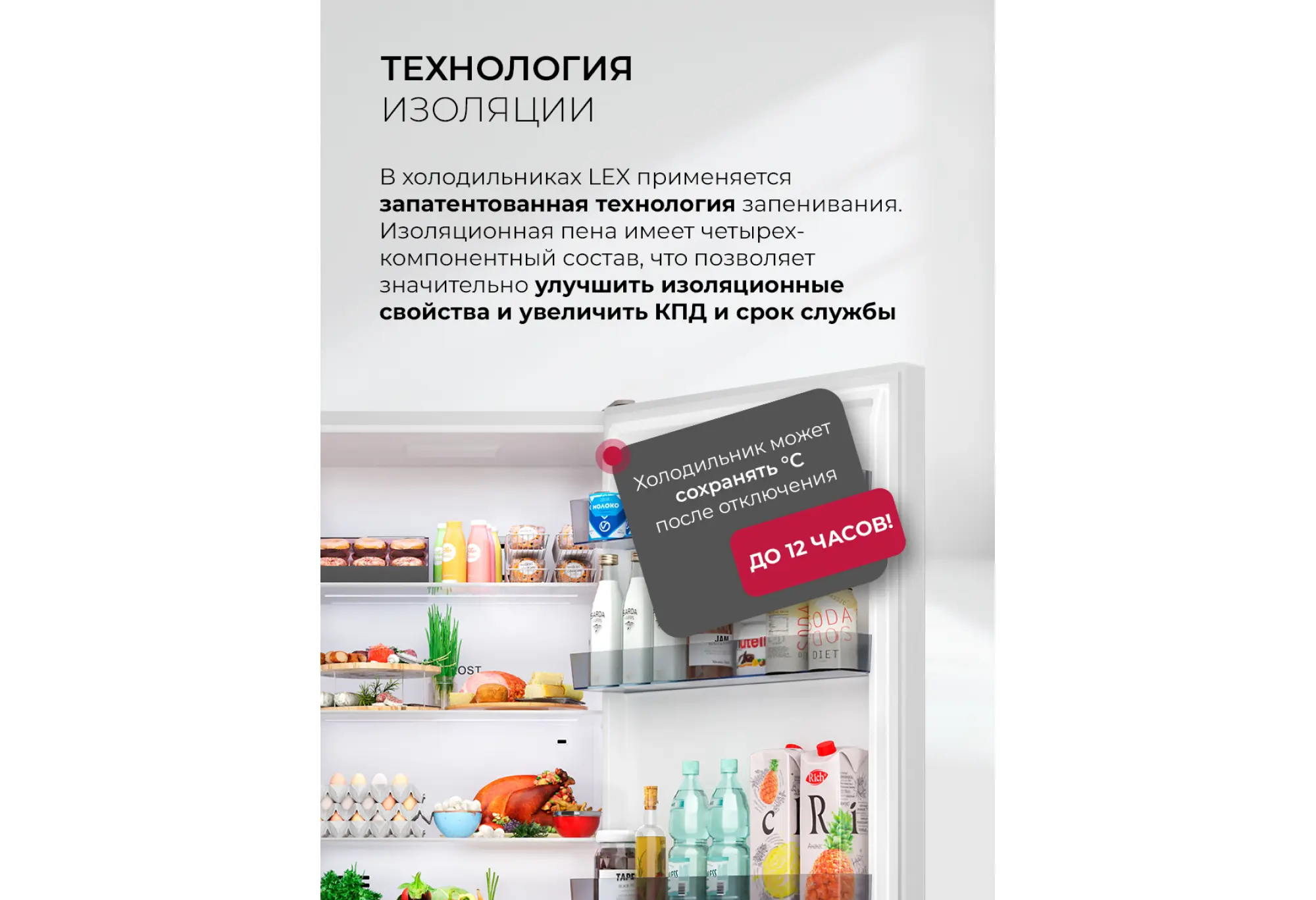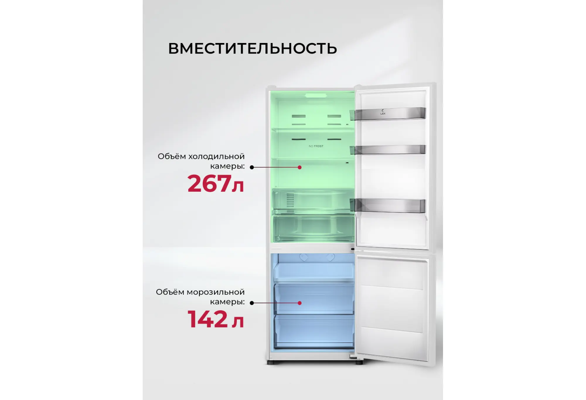 Холодильник LEX LKB185 оснащен современным инверторным компрессором, который гарантирует эффективную и практически бесшумную работу. Он также обеспечивает низкий расход энергии и долго поддерживает температуру без электропитания. Технология Total No Frost значительно упрощает обслуживание и помогает устанавливать оптимальную температуру и влажность.Стильный дизайн модели добавит элегантности в любую кухню.Два отделения с полезным объемом 409 литров дают возможность хранить все блюда и напитки на удобном уровне. Внутреннее пространство холодильника организовано максимально эффективно благодаря регулируемым полкам.LED-лампы обеспечивают яркий свет, помогая вам быстро найти все, что нужно. Электронная панель управления делает настройку параметров интуитивно понятной. А перенавешиваемые двери делают холодильник LEX LKB185 универсальным для любой кухни.