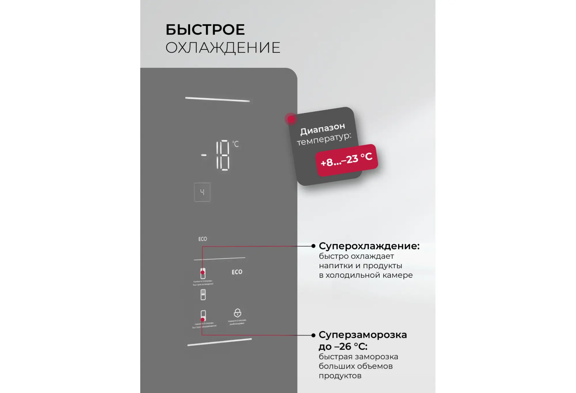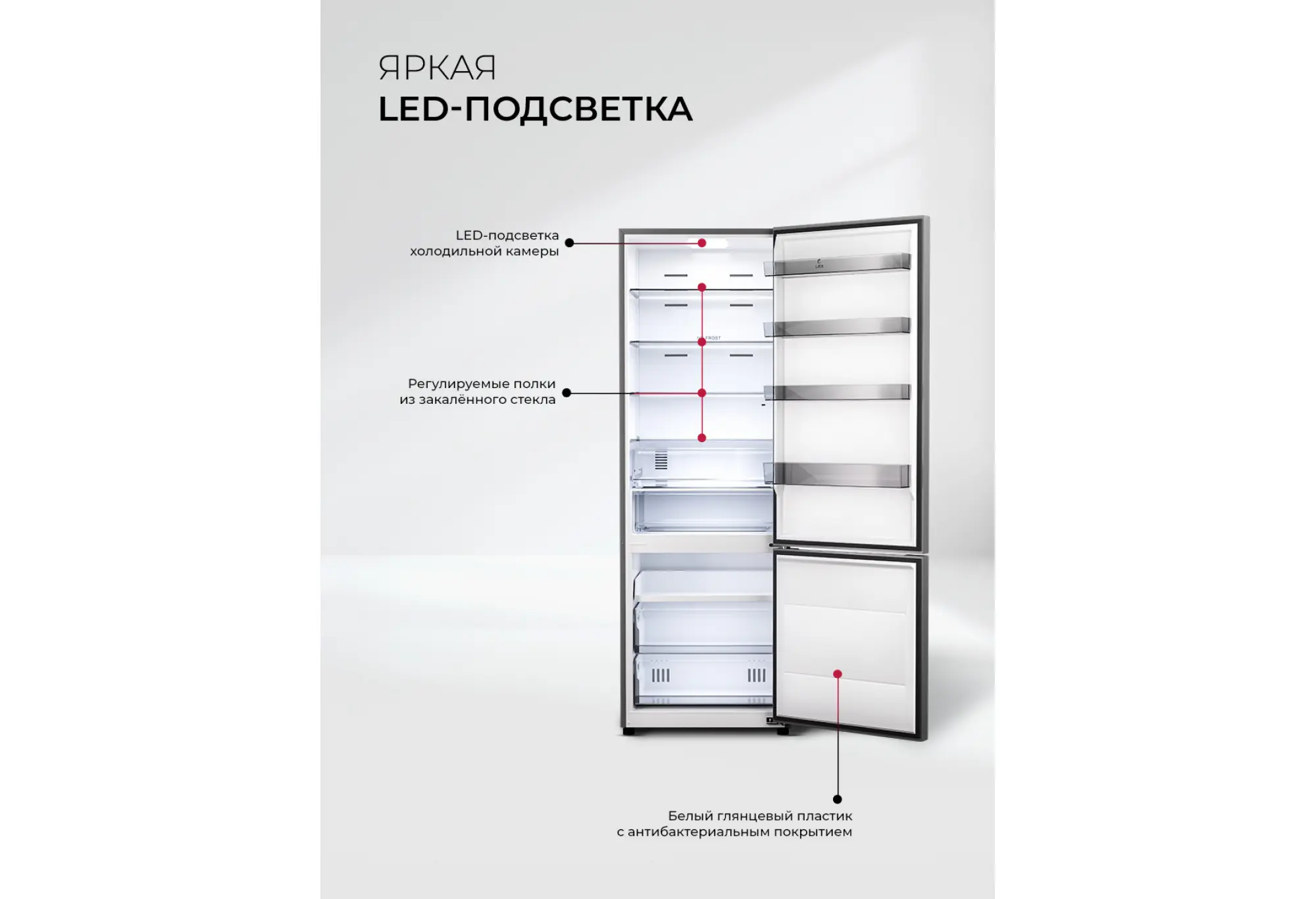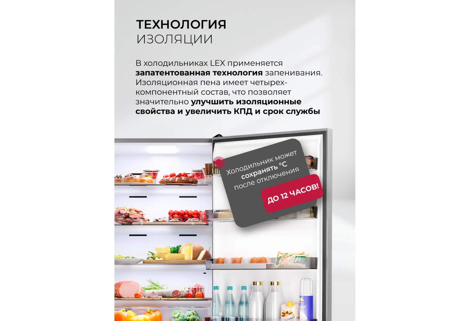 Холодильник LEX LKB201 оснащен современным инверторным компрессором, который гарантирует эффективную и практически бесшумную работу. Он также обеспечивает низкий расход энергии и долго поддерживает температуру без электропитания. Технология Total No Frost значительно упрощает обслуживание и помогает устанавливать оптимальную температуру и влажность.Стильный дизайн модели добавит элегантности в любую кухню.Два отделения с полезным объемом 456 литров дают возможность хранить все блюда и напитки на удобном уровне. Внутреннее пространство холодильника организовано максимально эффективно благодаря регулируемым полкам.LED-лампы обеспечивают яркий свет, помогая вам быстро найти все, что нужно. Электронная панель управления делает настройку параметров интуитивно понятной. А перенавешиваемые двери делают холодильник LEX LKB201 универсальным для любой кухни.