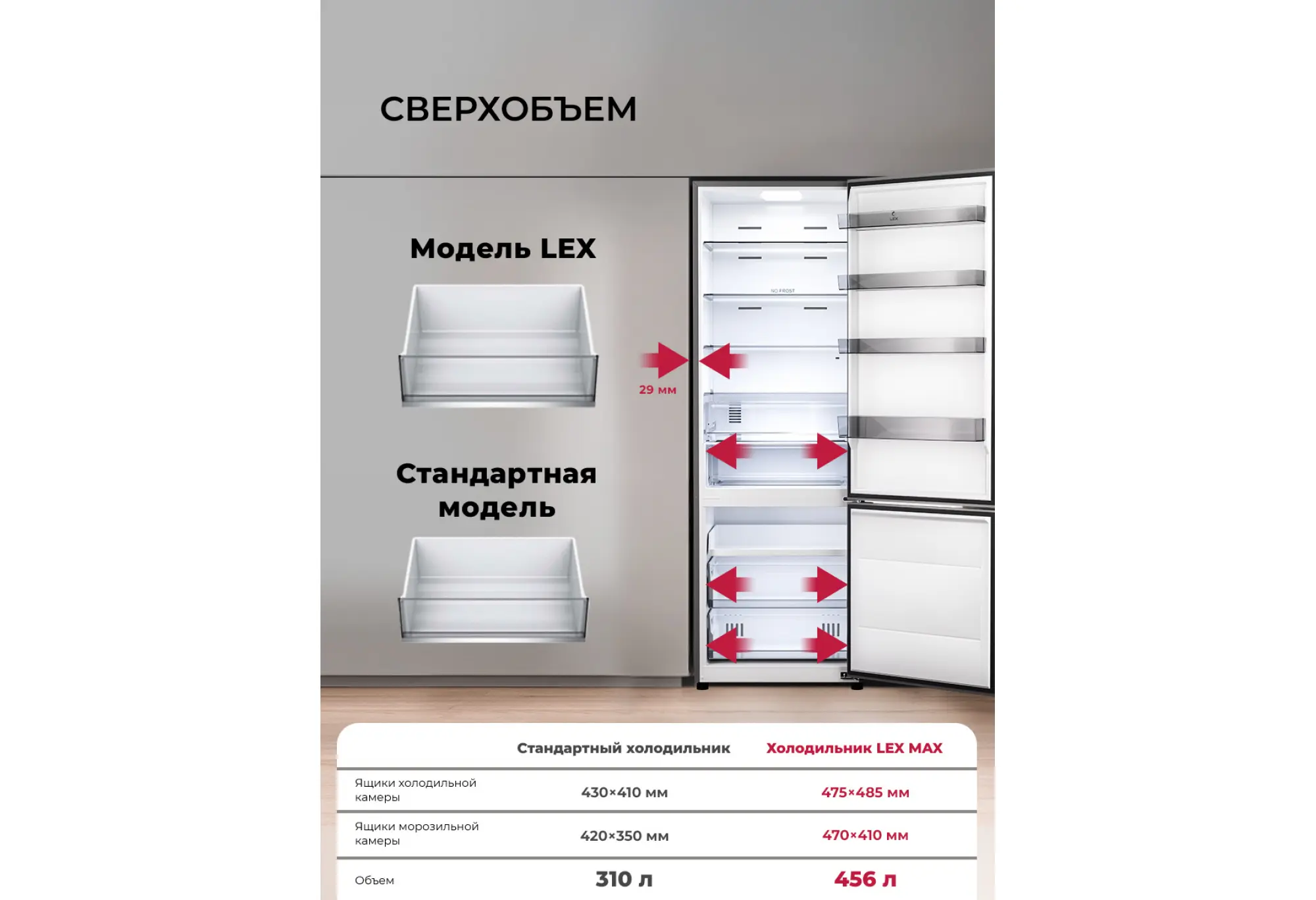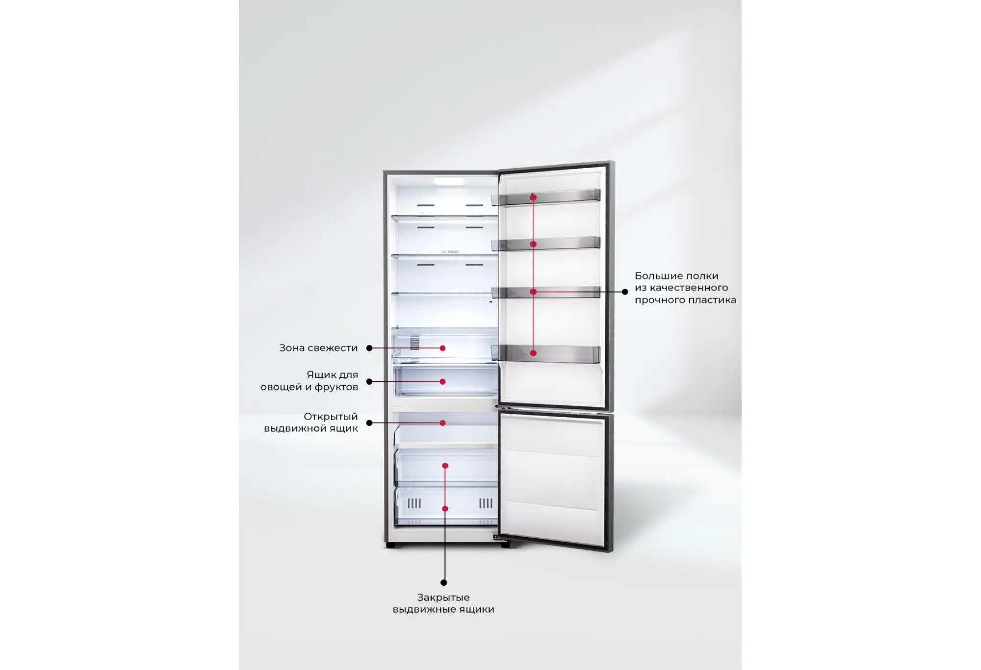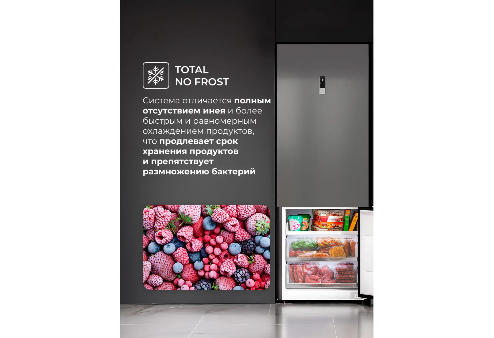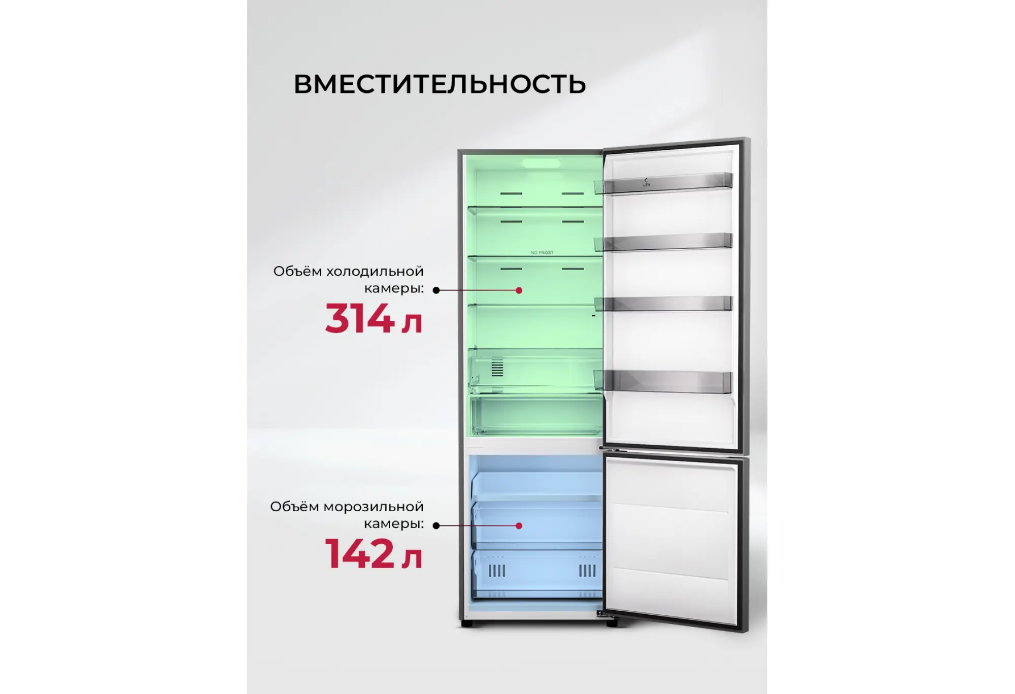 Холодильник LEX LKB201 оснащен современным инверторным компрессором, который гарантирует эффективную и практически бесшумную работу. Он также обеспечивает низкий расход энергии и долго поддерживает температуру без электропитания. Технология Total No Frost значительно упрощает обслуживание и помогает устанавливать оптимальную температуру и влажность.Стильный дизайн модели добавит элегантности в любую кухню.Два отделения с полезным объемом 456 литров дают возможность хранить все блюда и напитки на удобном уровне. Внутреннее пространство холодильника организовано максимально эффективно благодаря регулируемым полкам.LED-лампы обеспечивают яркий свет, помогая вам быстро найти все, что нужно. Электронная панель управления делает настройку параметров интуитивно понятной. А перенавешиваемые двери делают холодильник LEX LKB201 универсальным для любой кухни.