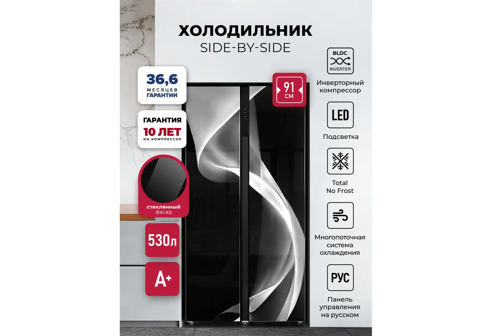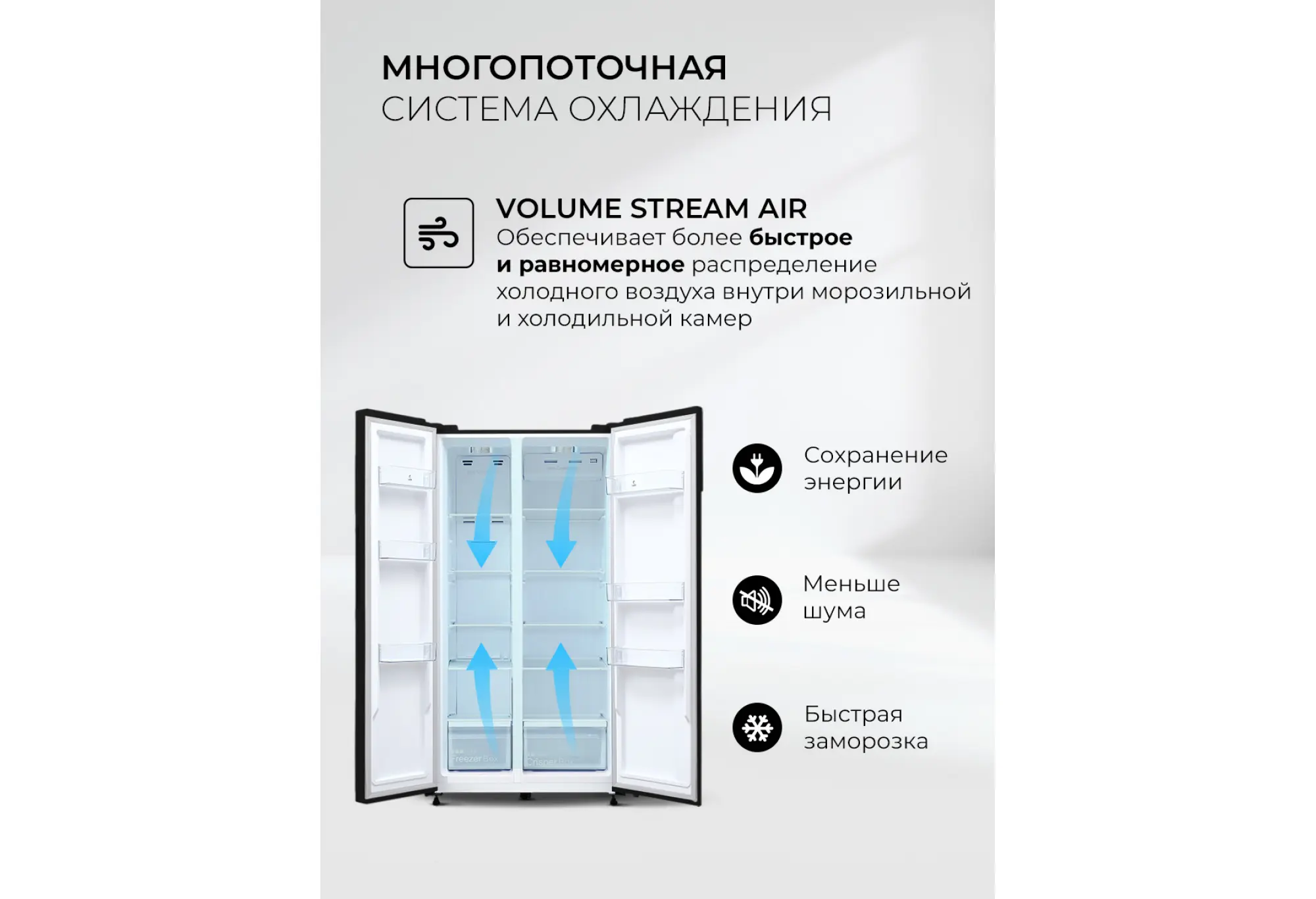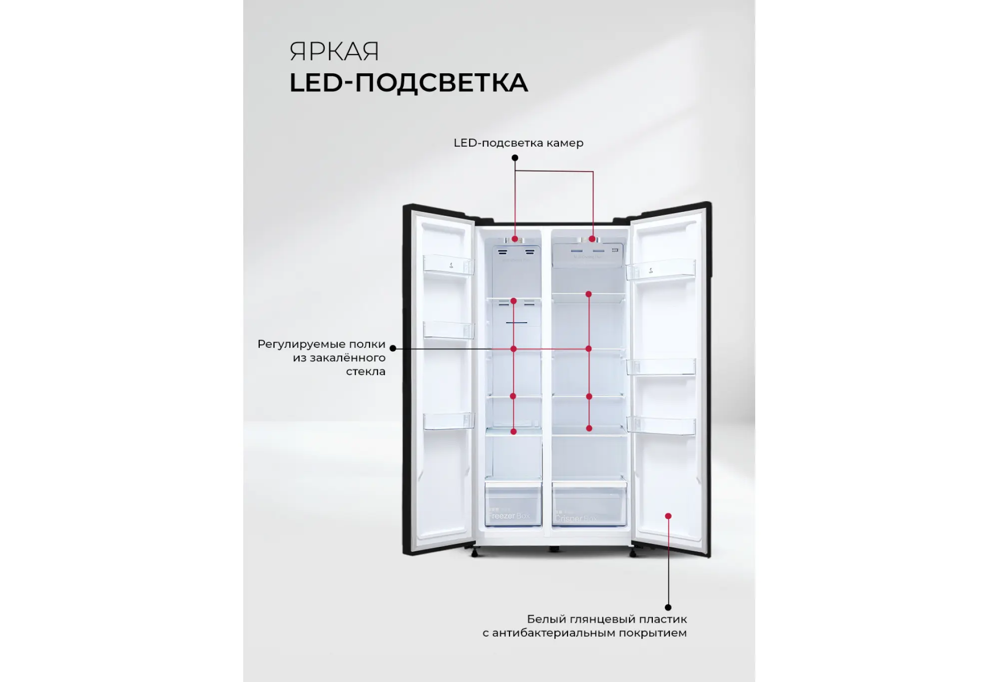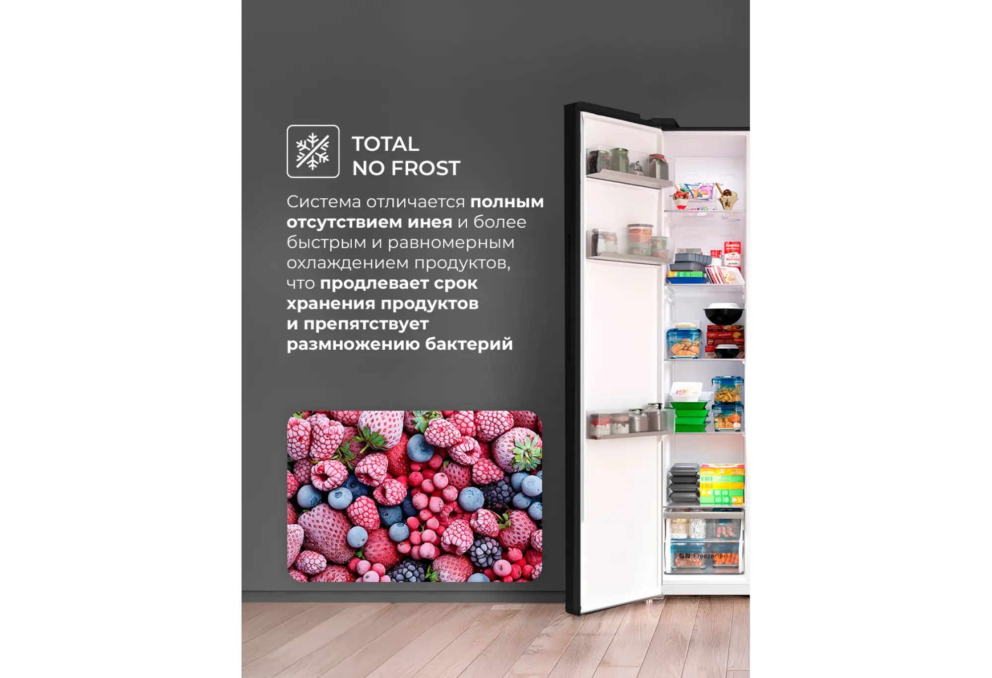 Двухкамерный холодильник LSB 530 вместит все вкусное и полезное. Fresh-зона и многопоточная система вентиляции обеспечат свежесть любого продукта, два контура охлаждения, панель управления и дисплей позволят точно контролировать температуру в каждом отделении. Для простоты эксплуатации модель имеет несколько предустановленных режимов работы: суперзаморозка и быстрое охлаждение, а также смарт-режим и поддержание температуры в течение нескольких часов, которое пригодится при неполадках с электричеством. Благодаря расположению дверей SIDE BY SIDE продукты в обеих камерах можно размещать на комфортных для вас уровнях. Технология Total No Frost делает уход за холодильником максимально легким, чтобы у вас было больше свободного времени, а мощный инверторный компрессор работает почти бесшумно.