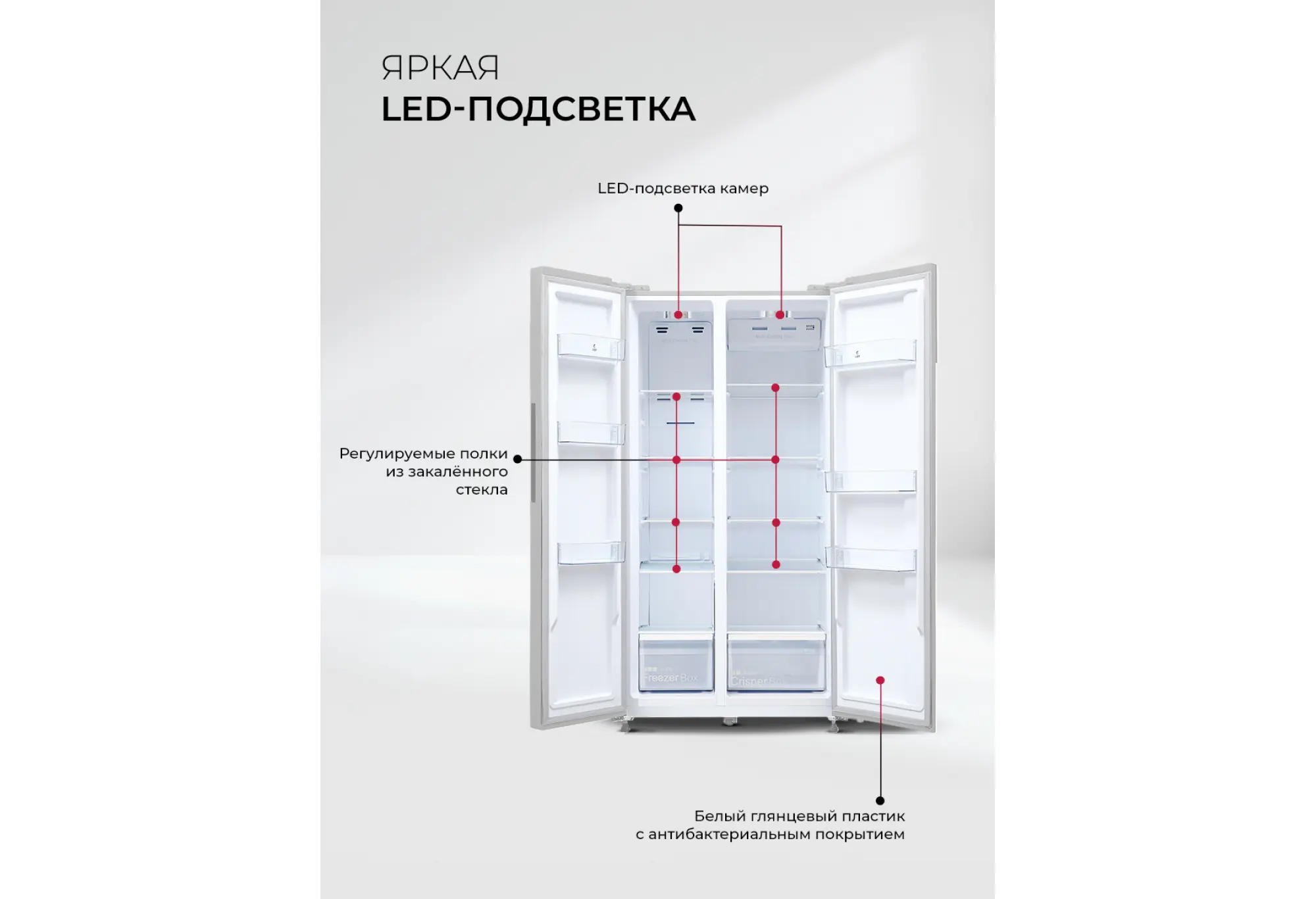 Двухкамерный холодильник LSB 530 вместит все вкусное и полезное. Fresh-зона и многопоточная система вентиляции обеспечат свежесть любого продукта, два контура охлаждения, панель управления и дисплей позволят точно контролировать температуру в каждом отделении. Для простоты эксплуатации модель имеет несколько предустановленных режимов работы: суперзаморозка и быстрое охлаждение, а также смарт-режим и поддержание температуры в течение нескольких часов, которое пригодится при неполадках с электричеством. Благодаря расположению дверей SIDE BY SIDE продукты в обеих камерах можно размещать на комфортных для вас уровнях. Технология Total No Frost делает уход за холодильником максимально легким, чтобы у вас было больше свободного времени, а мощный инверторный компрессор работает почти бесшумно.