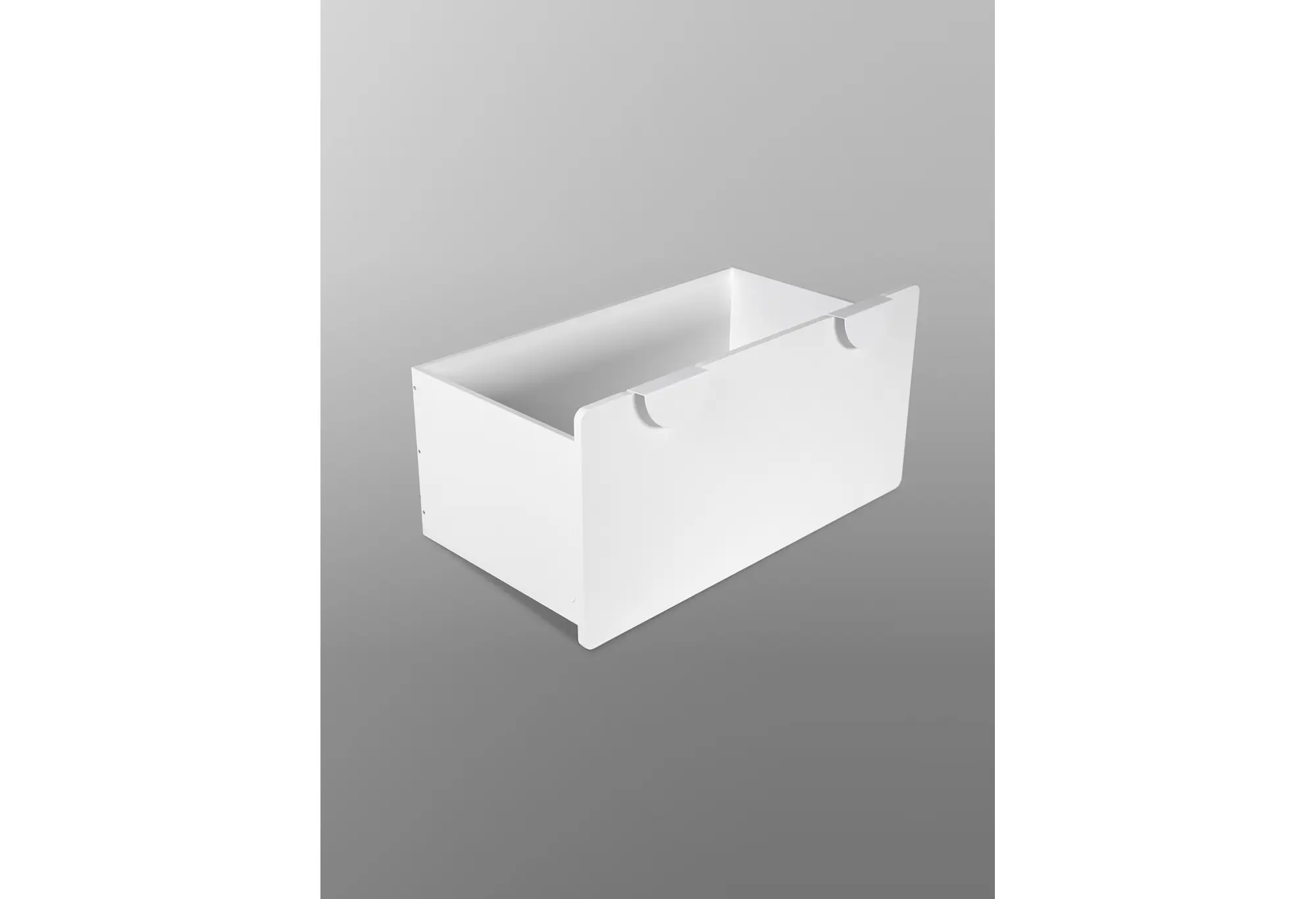 Компактные габариты позволяют рационально использовать место. Ящик удобно задвигается под подходящую по высоте мебель, освобождая открытое пространство в комнате. Открытые вырезы на передней панели служат удобными ручками, за которые легко потянуть ящик, не царапая поверхность и не прилагая лишних усилий.