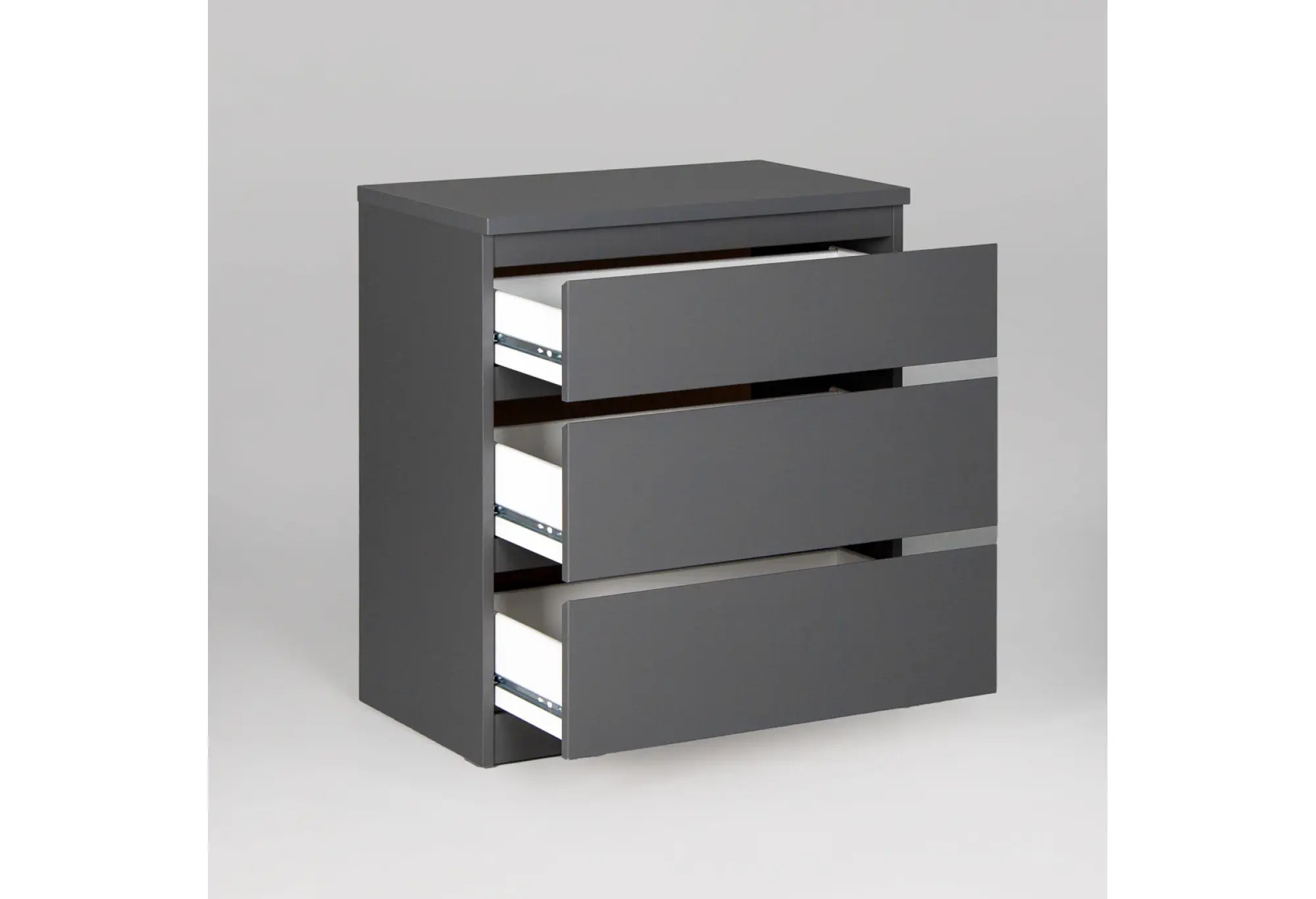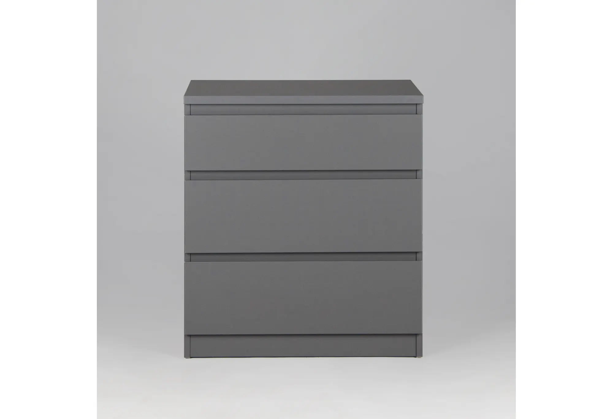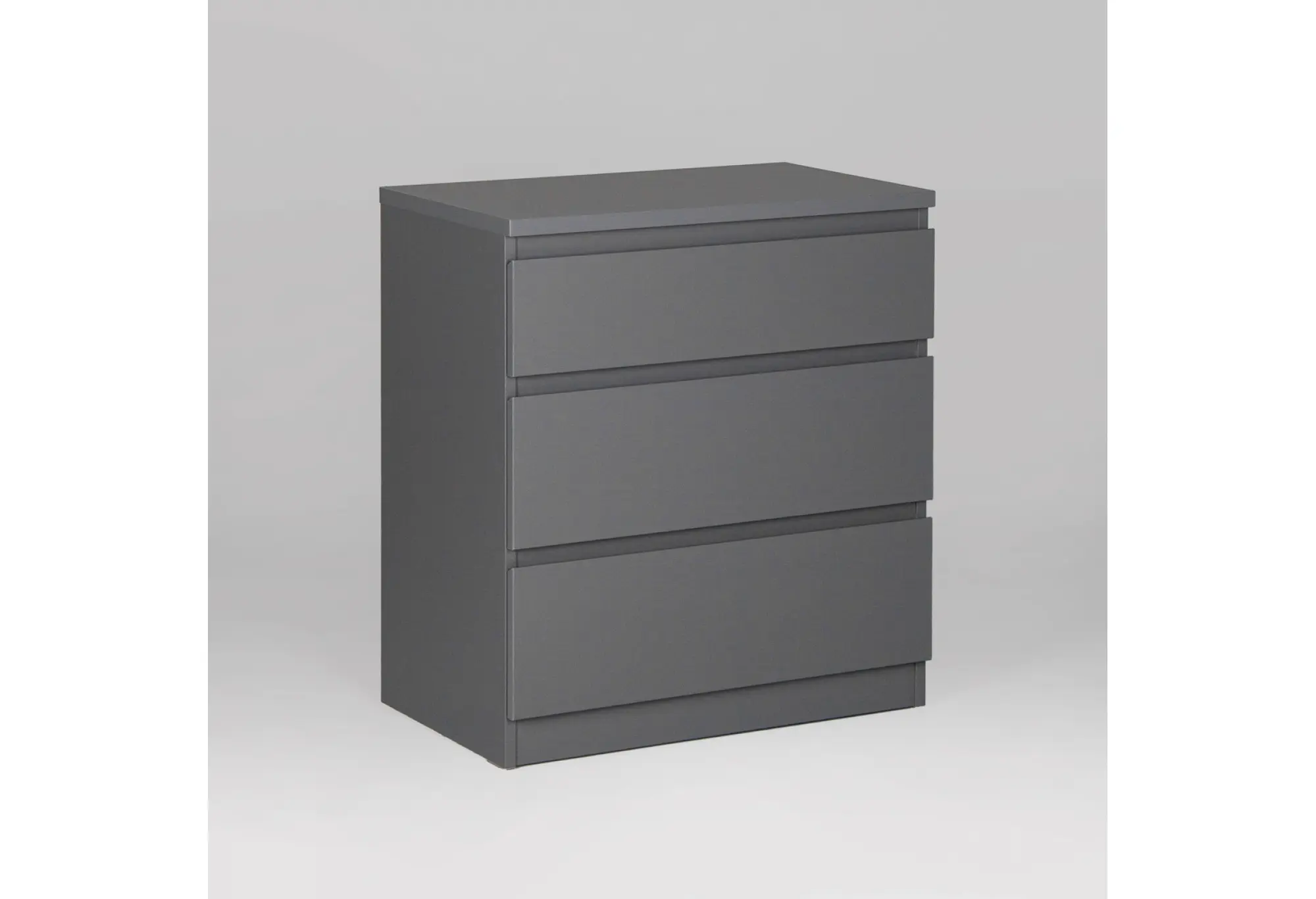 Компактный комод КАСТОР с тремя выдвижными ящиками выполнен в лаконичном сером цвете и рассчитан на использование в жилых и общественных интерьерах. Корпус изготовлен из кашированного ДСП толщиной 16 мм, что обеспечивает стабильность формы и ровные плоскости фасадов и боковин. Конструкция предусматривает крепление к стене, за счет чего комод устойчив и безопасен при повседневной эксплуатации.