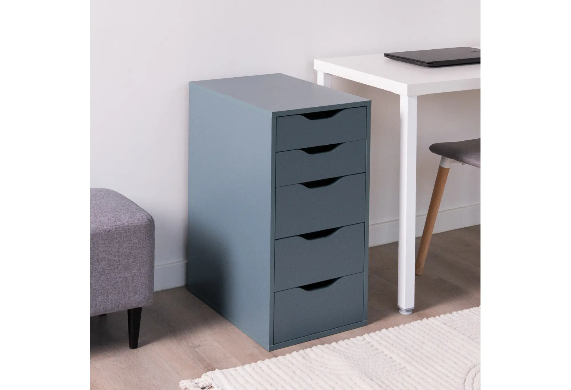 Узкий комод «Ингар 5» в серо-бирюзовом цвете — функциональное решение для тех, кому важно рационально использовать пространство. При ширине всего 53 см и глубине 36 см он легко вписывается в небольшие комнаты, коридоры, гардеробные зоны или рабочие кабинеты, не загромождая помещение. Высота 71 см позволяет удобно использовать верхнюю поверхность как дополнительную полку для декора, документов или повседневных мелочей.