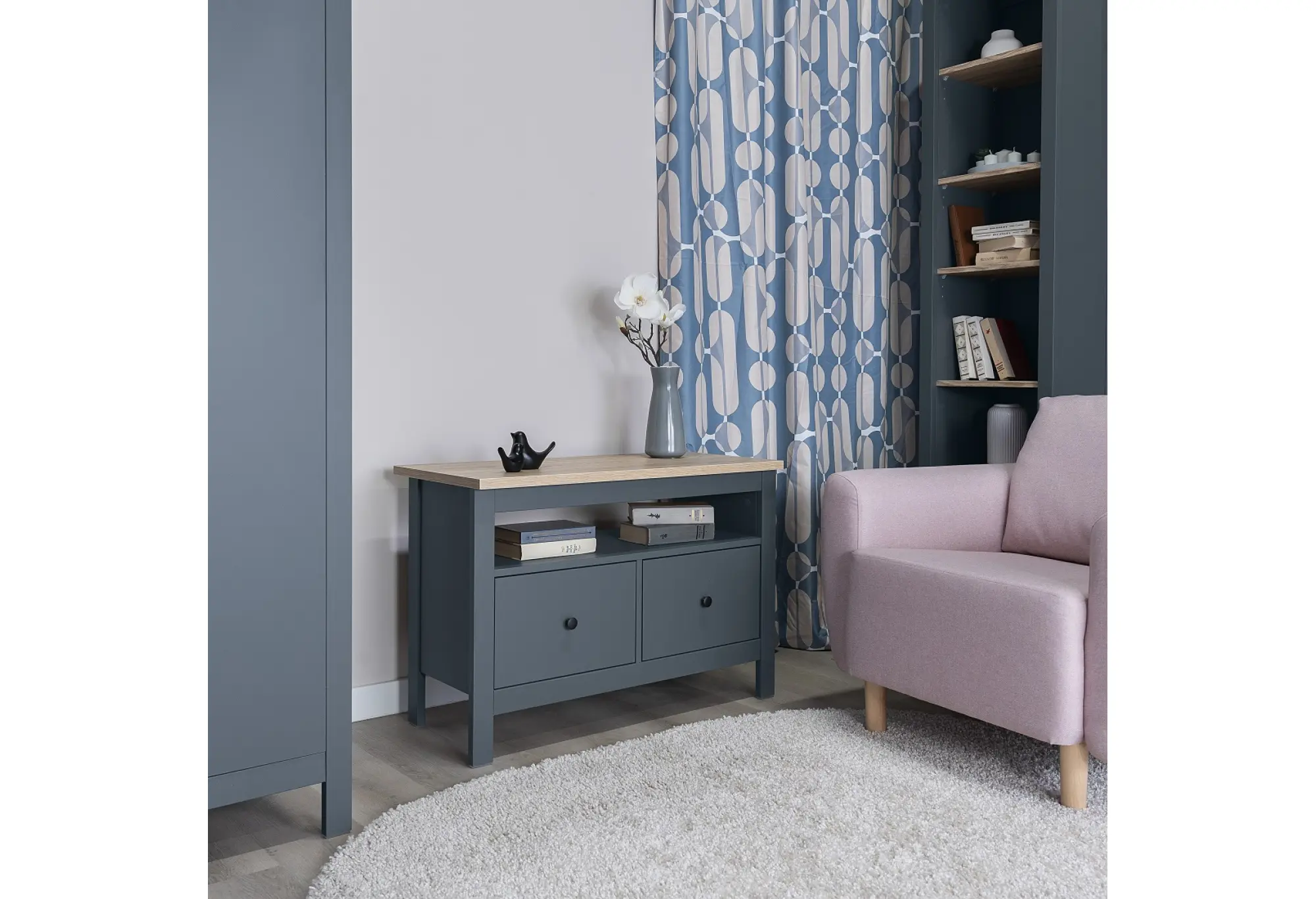 2.08.03.080.16 САГА тумба 2 ящика темно-бирюзовая/ясень RU