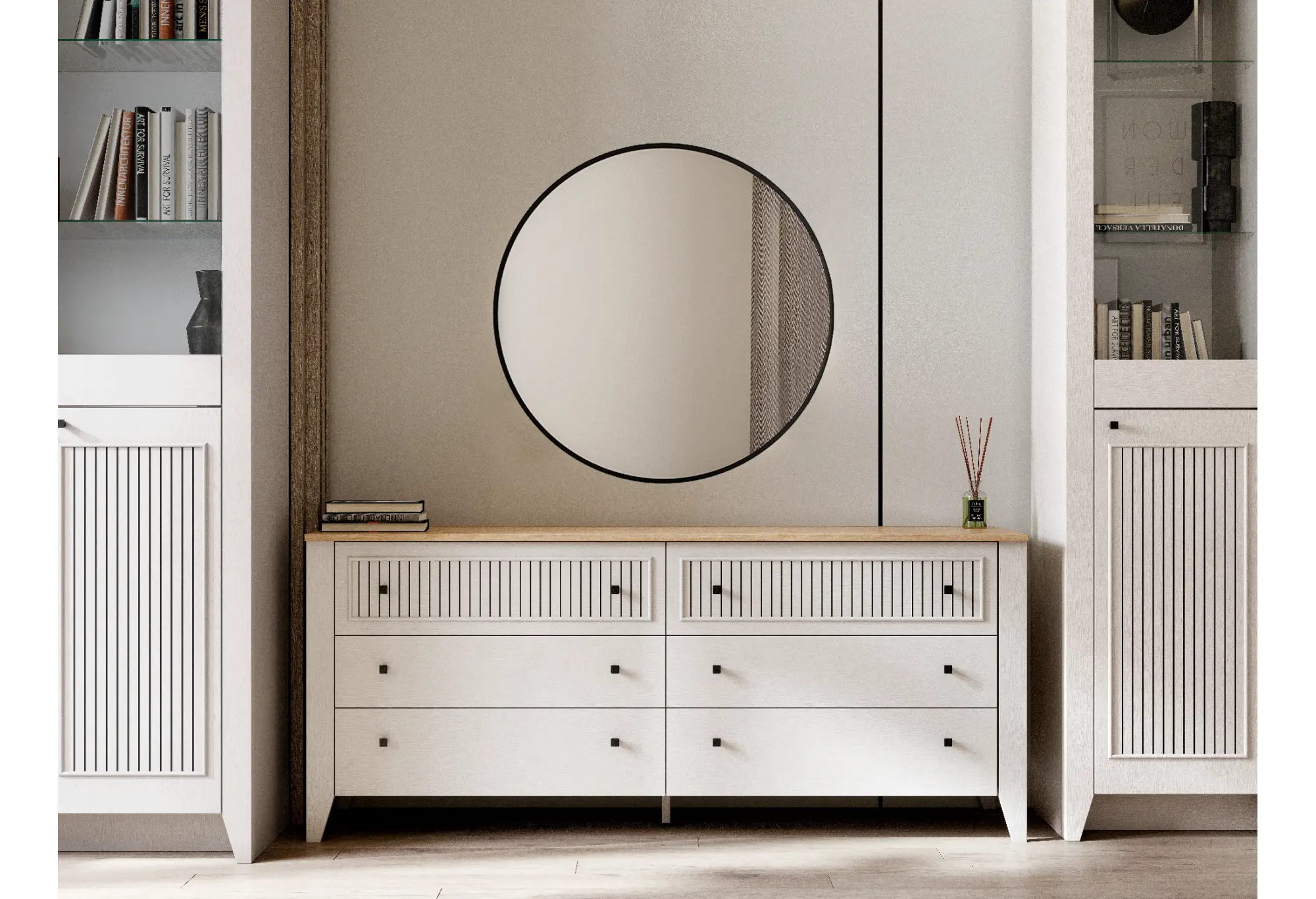 Комод "Валенсия" выполнен в комбинации Дуб натуральный светлый / Персидский жемчуг и состоит из выдвижных ящиков на шариковых направляющих (без амортизаторов), что позволяет удобно хранить вещи и поддерживать порядок в комнате. Он выполнен из безопасных, качественных материалов, что гарантирует долговечность и сохранение первоначального вида на протяжении долгого времени.