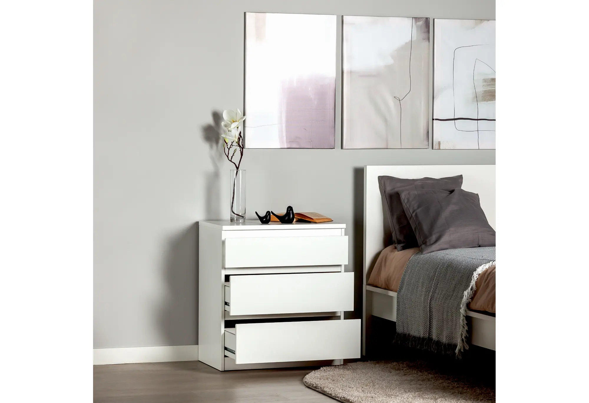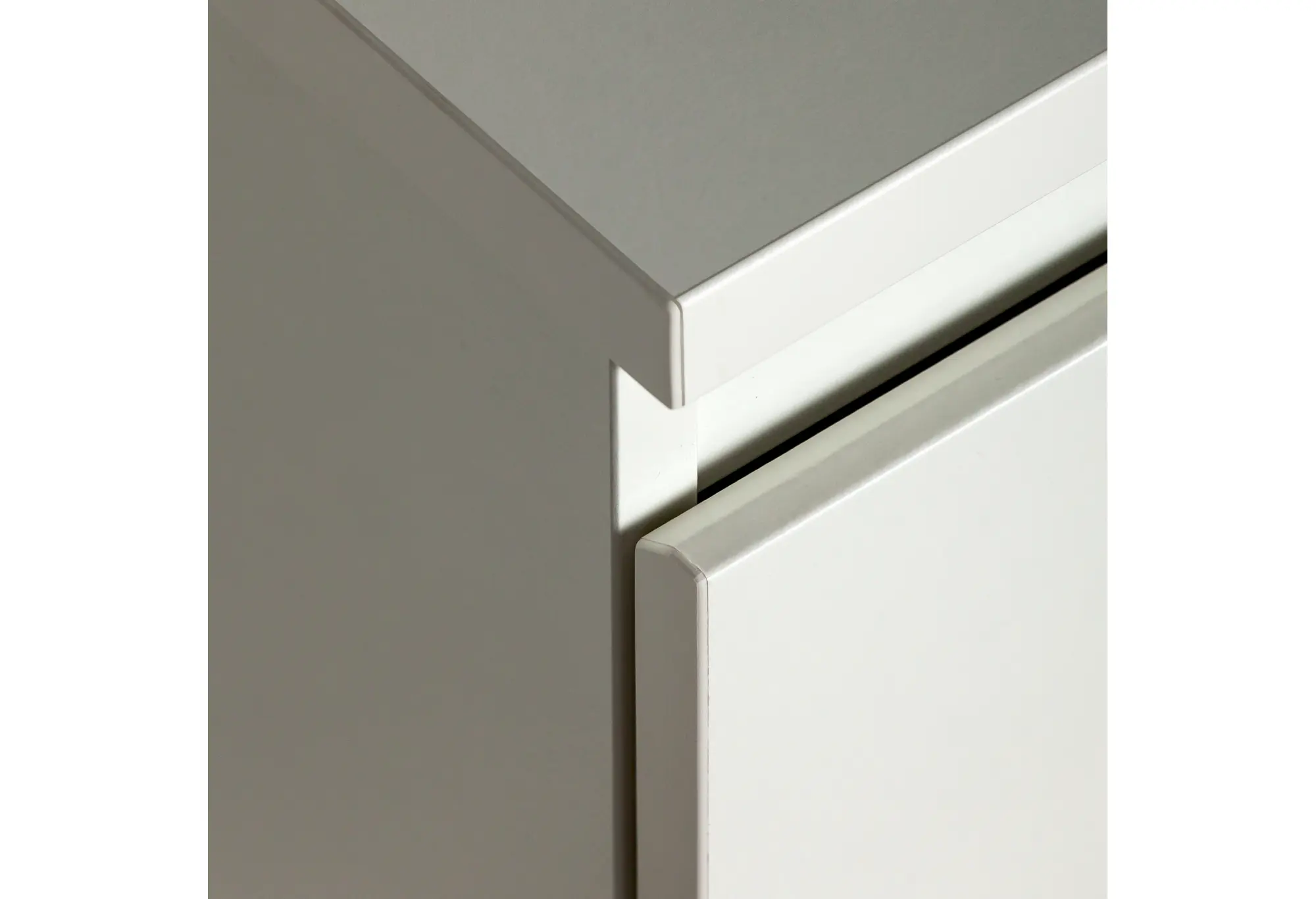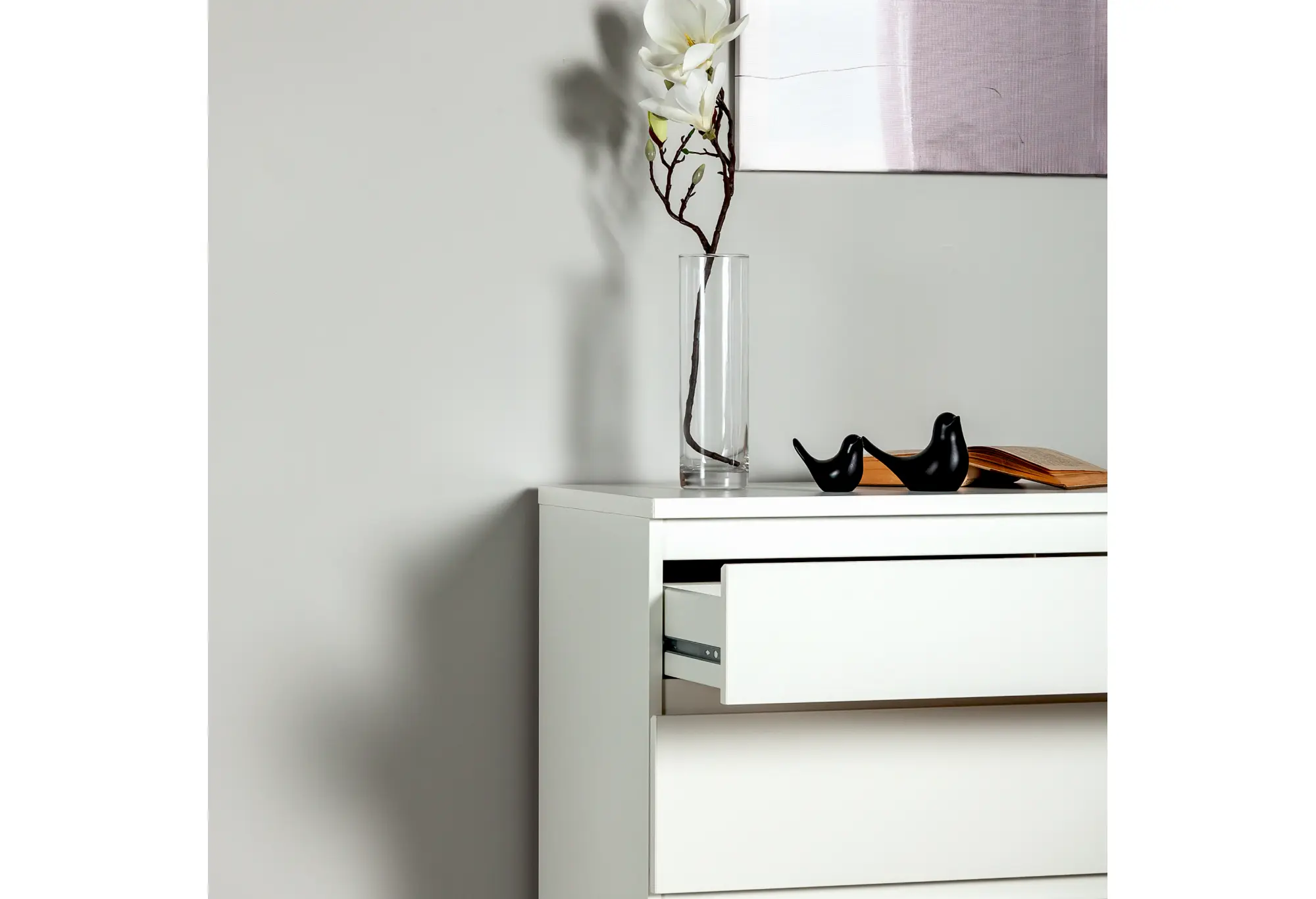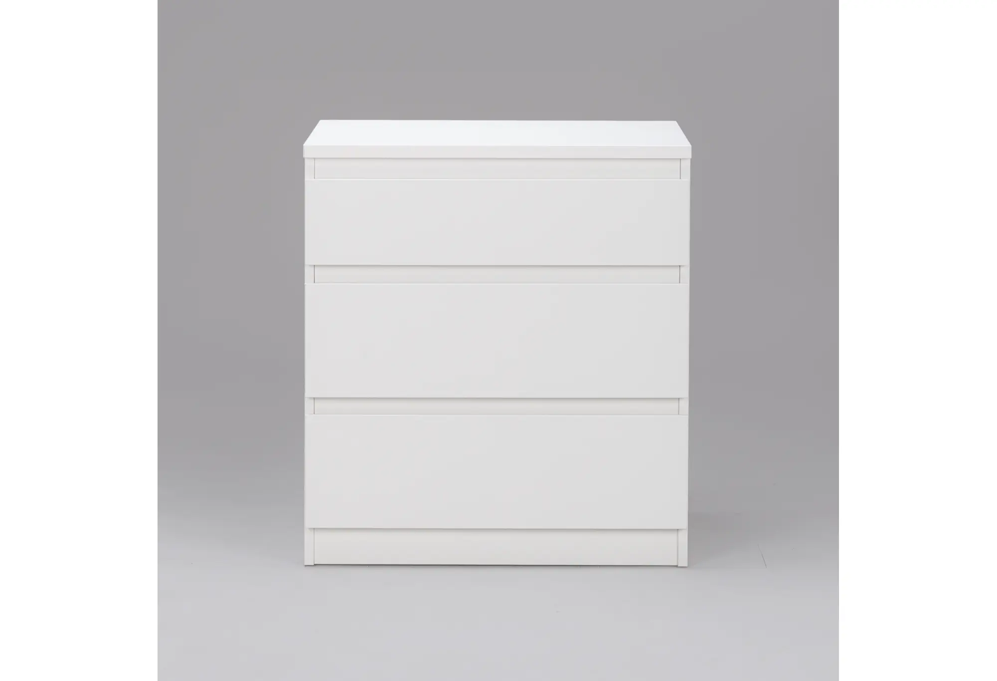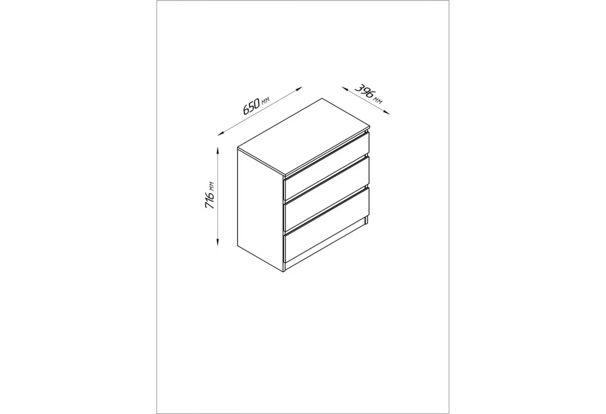 Комод оснащен тремя вместительными ящиками на шариковых направляющих, что обеспечивает плавное и бесшумное открытие. Каждый ящик выдерживает нагрузку до 8 кг, что позволяет удобно хранить повседневные вещи и аксессуары. Минималистичный дизайн без лишних деталей подчеркнет современный стиль вашего дома.