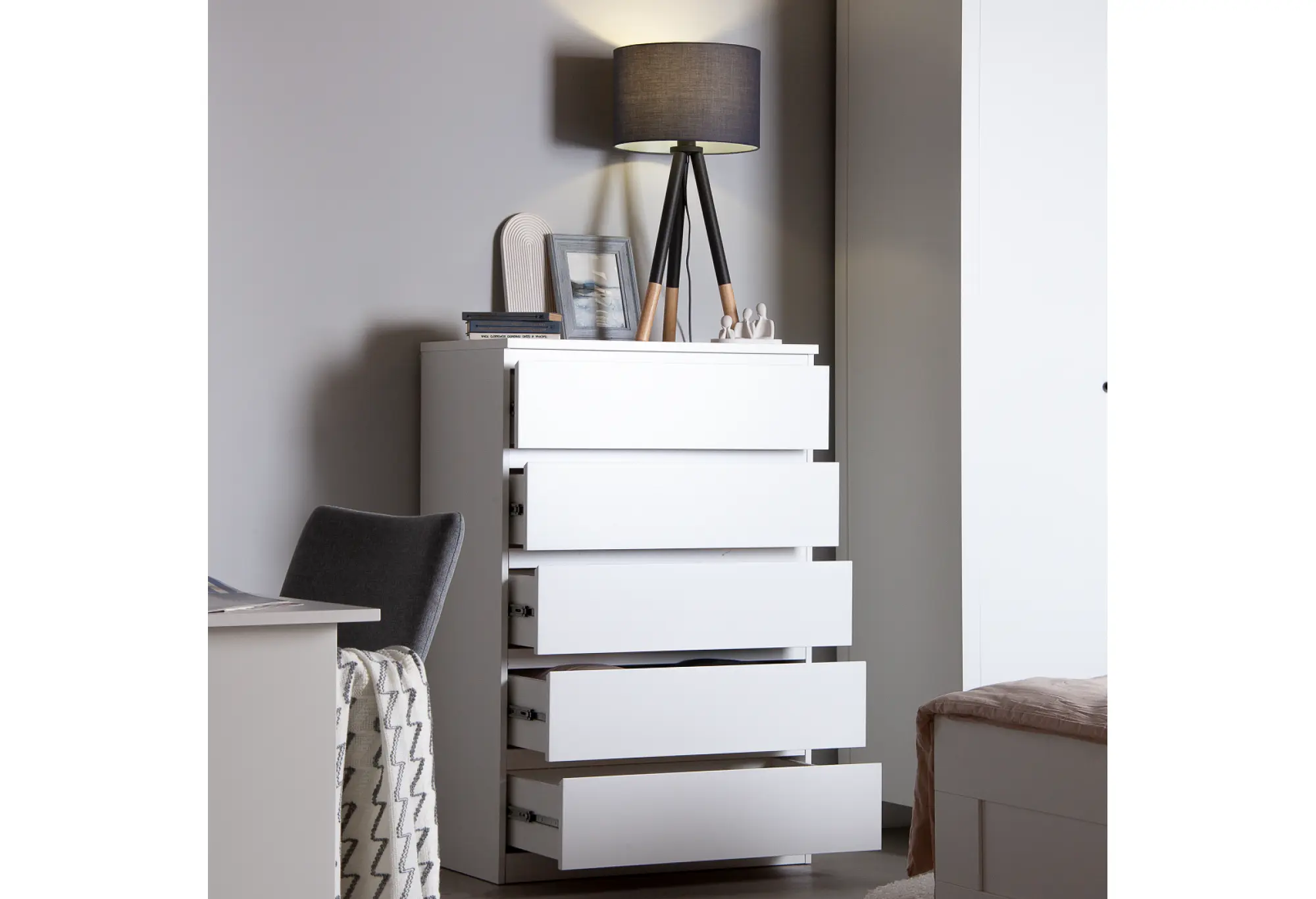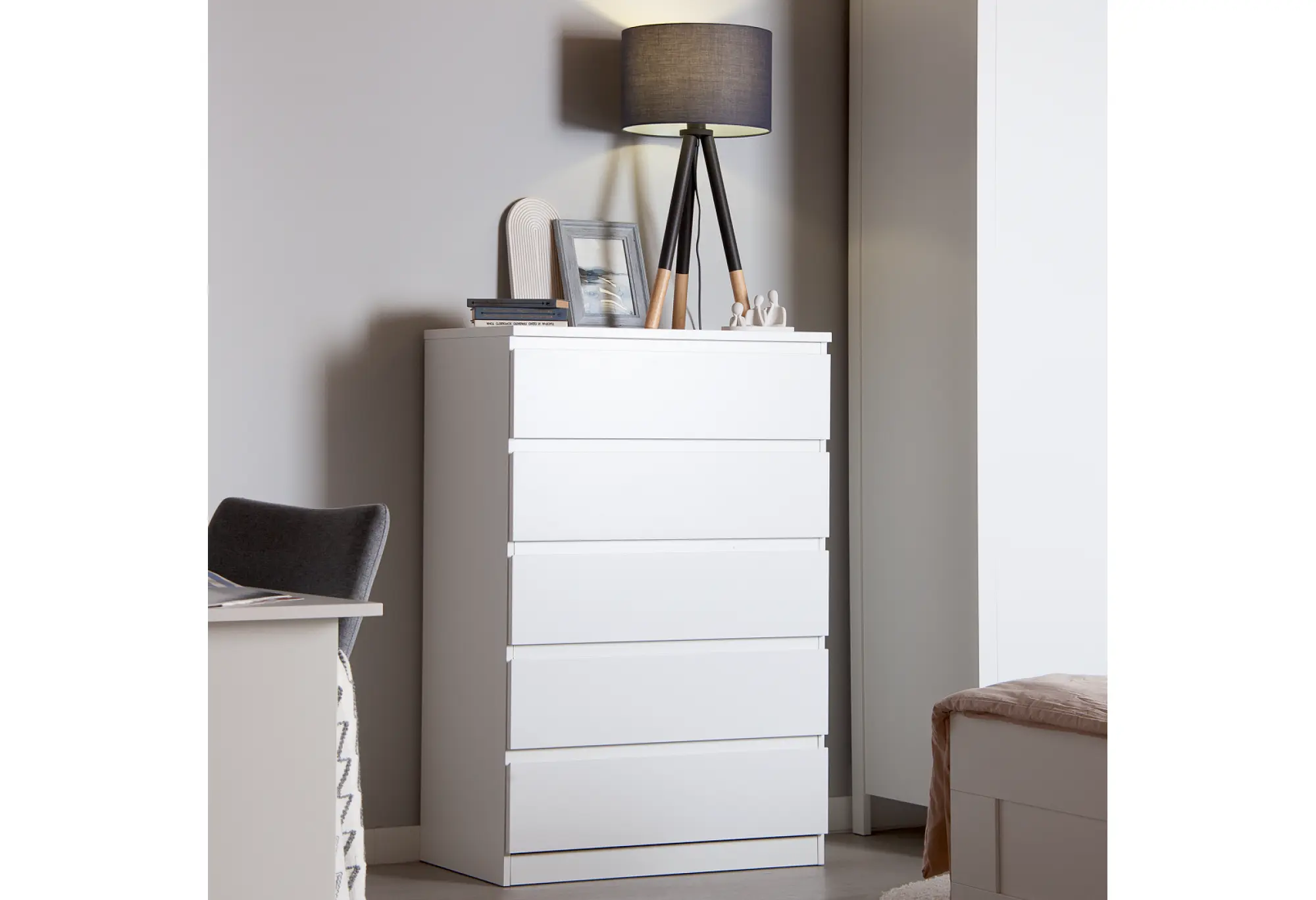 - Комод МАЛЬТА высокий с пятью одинаковыми выдвижными ящиками, цвет белый