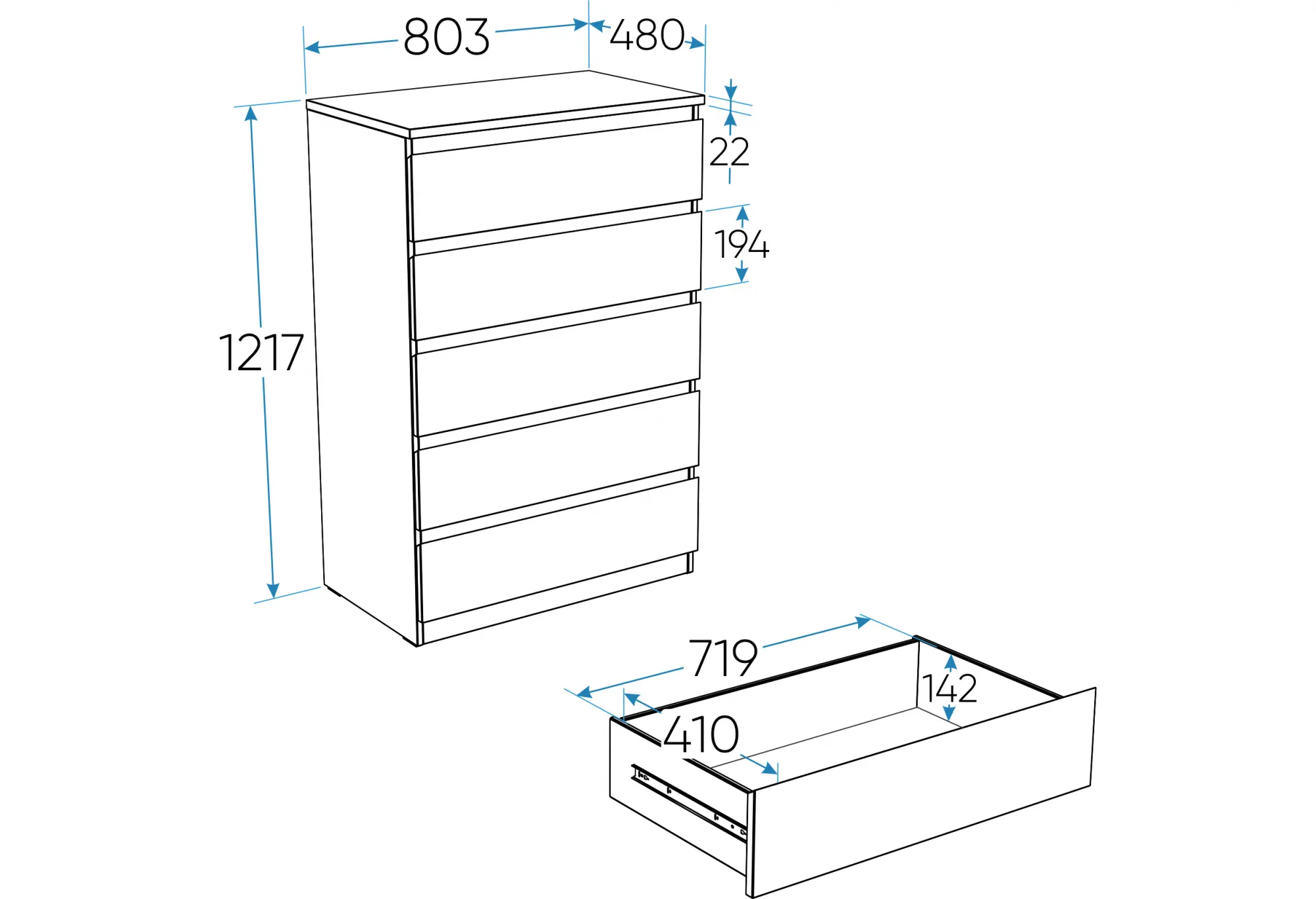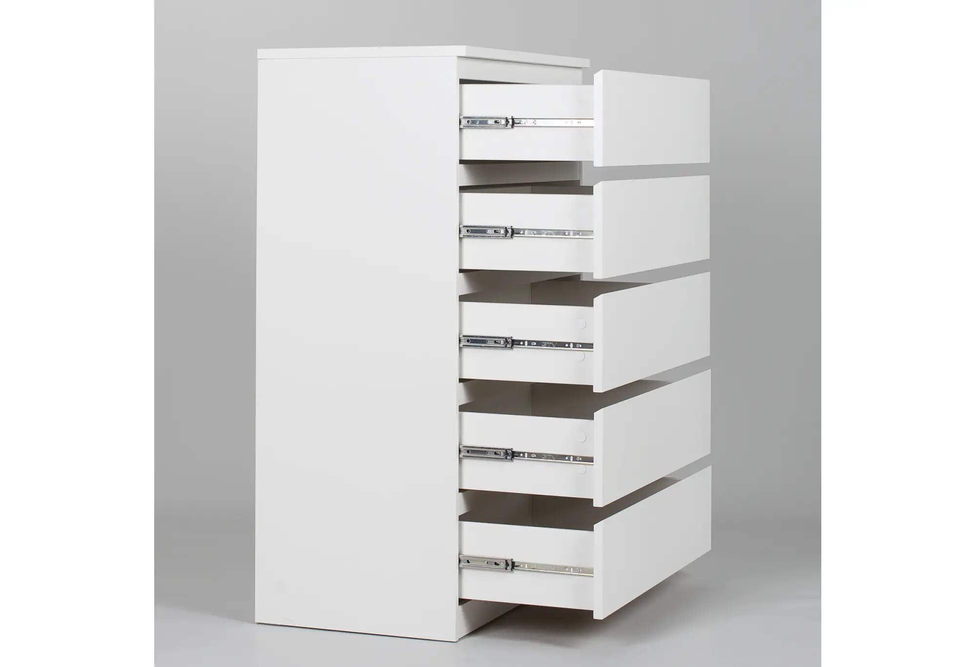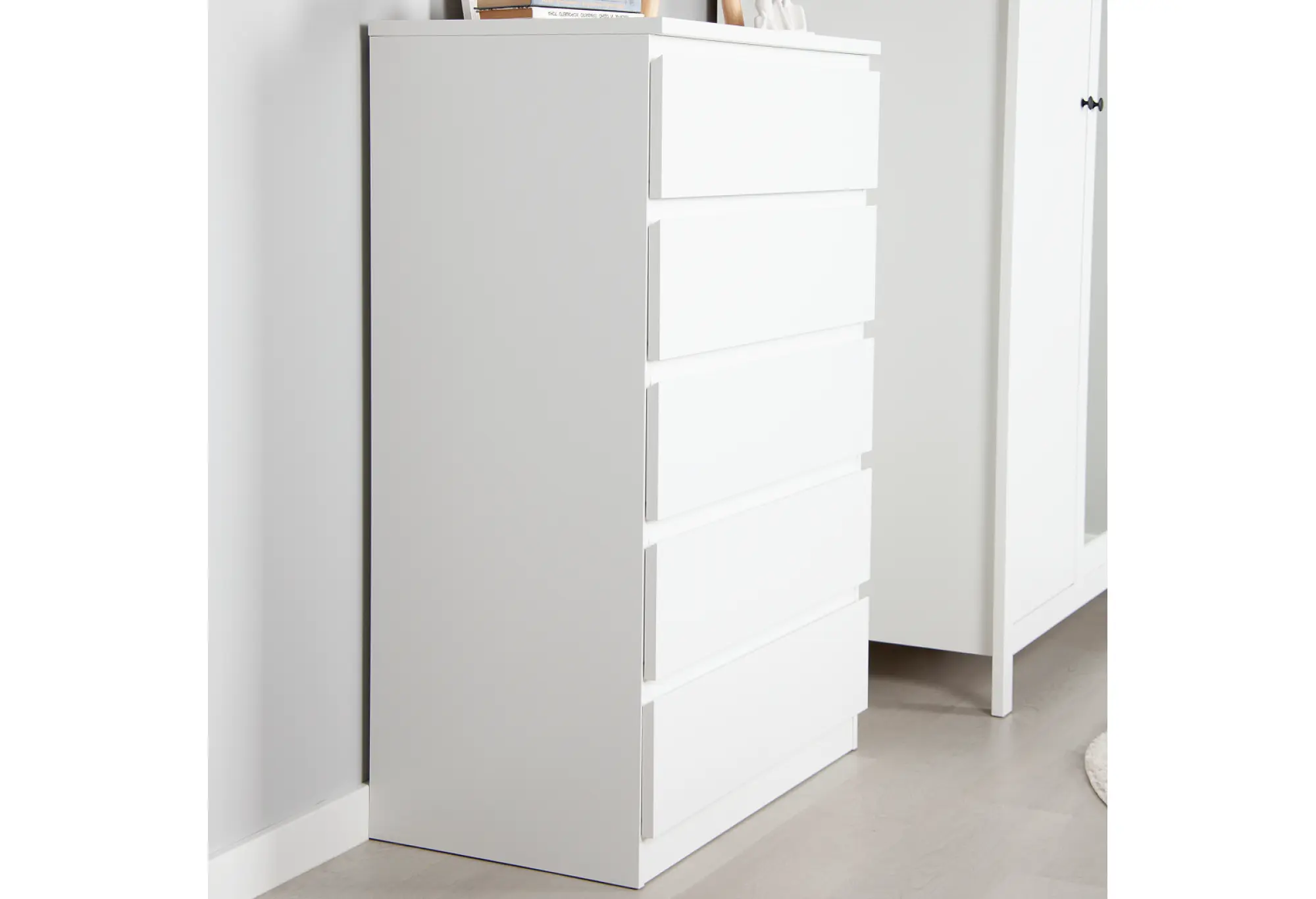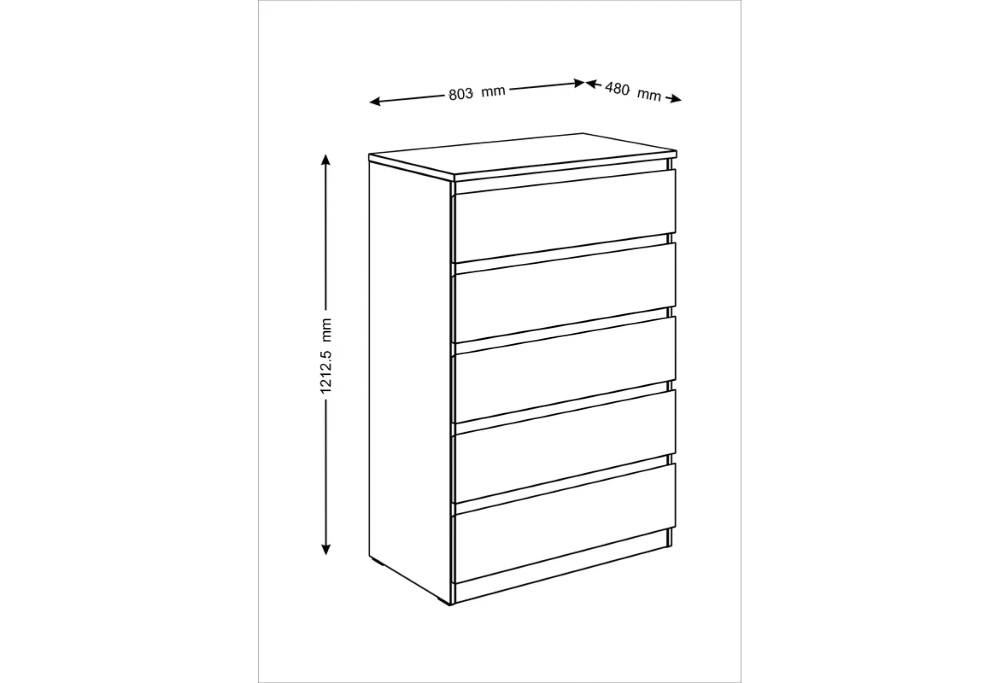 Комод МАЛЬТА с пятью выдвижными ящиками, 803х480х1212, цвет Белый. Крепится к стене. Гарантийный срок для жилых помещений 24 месяца, для общественных помещений - 18 месяцев.