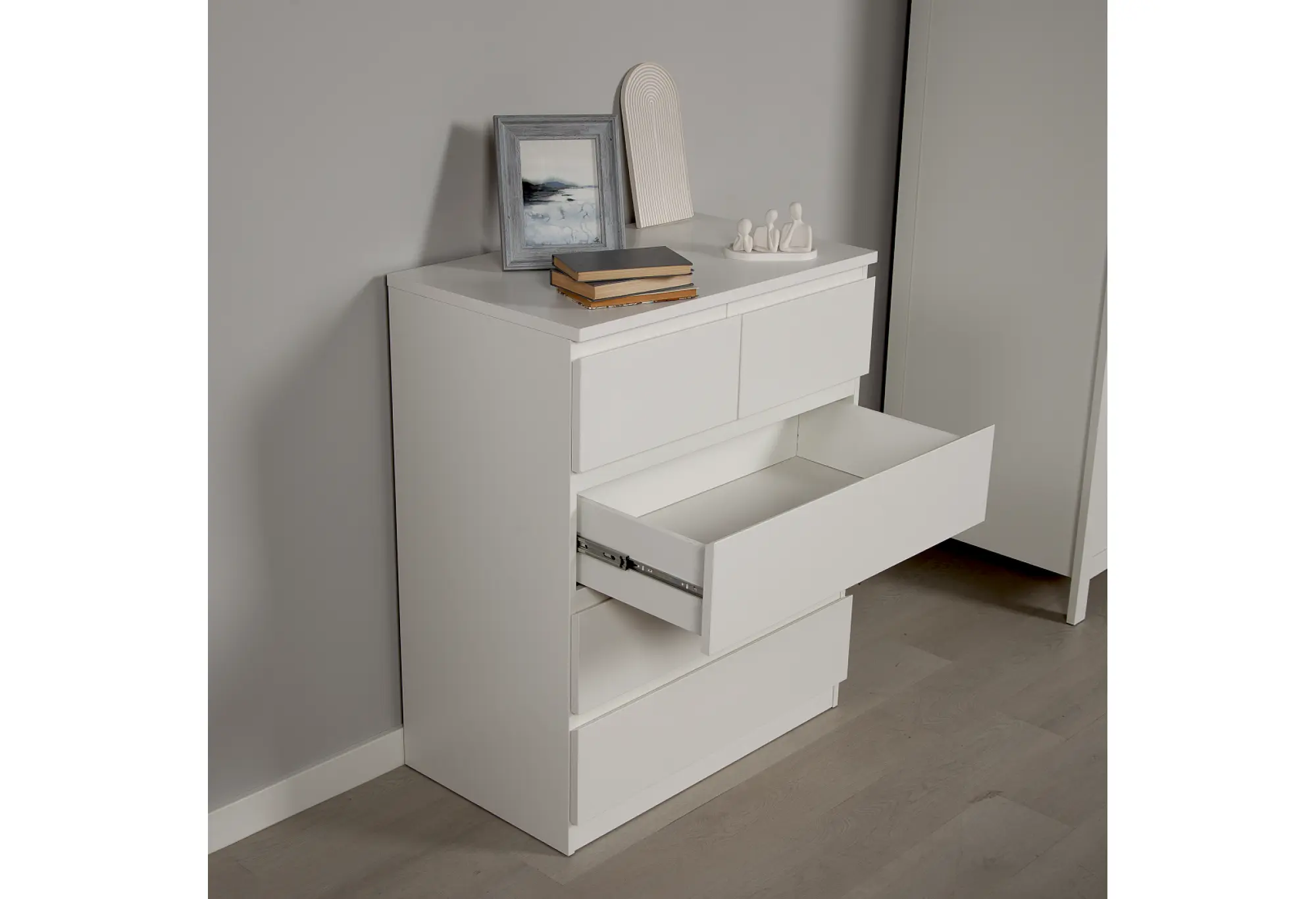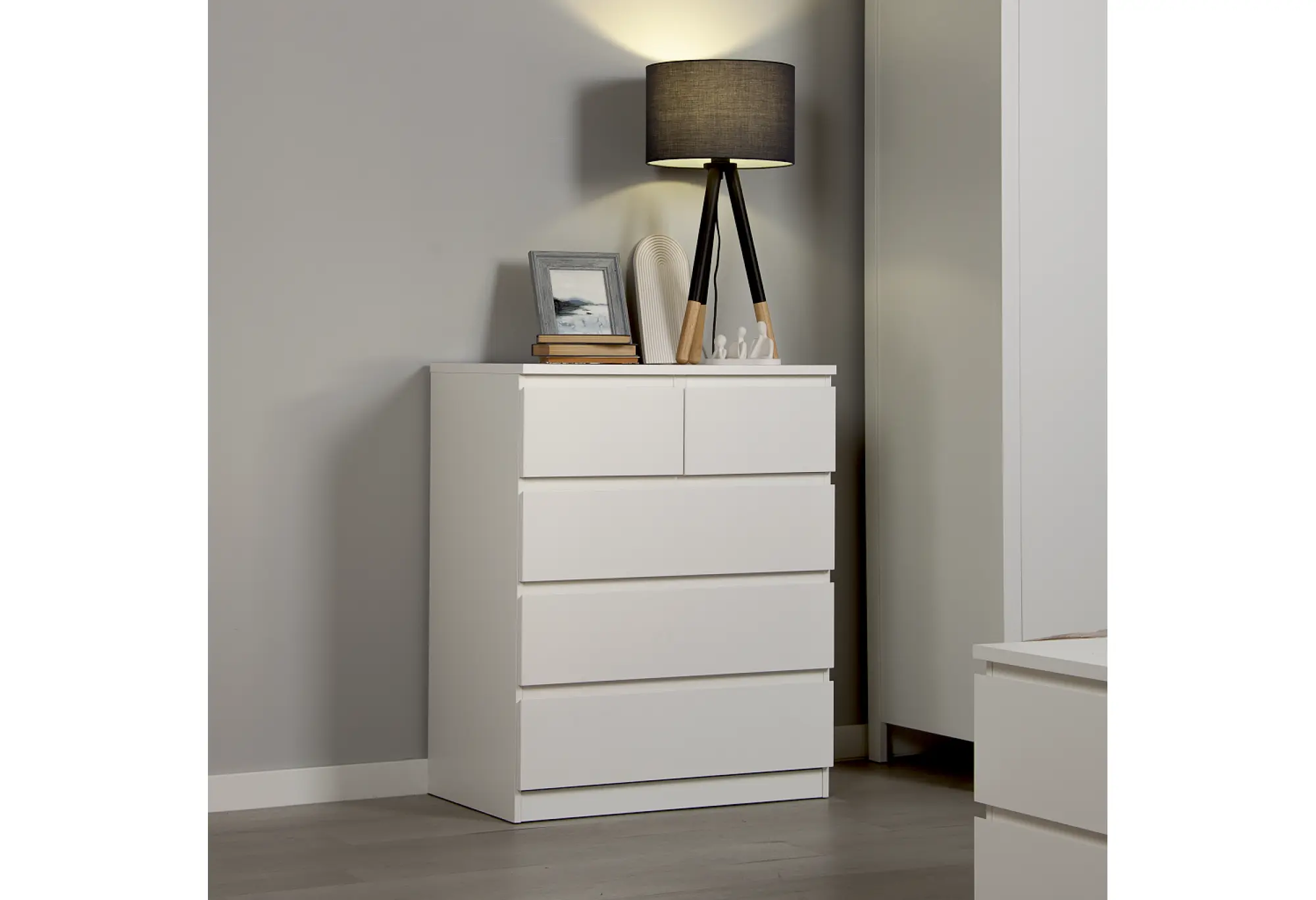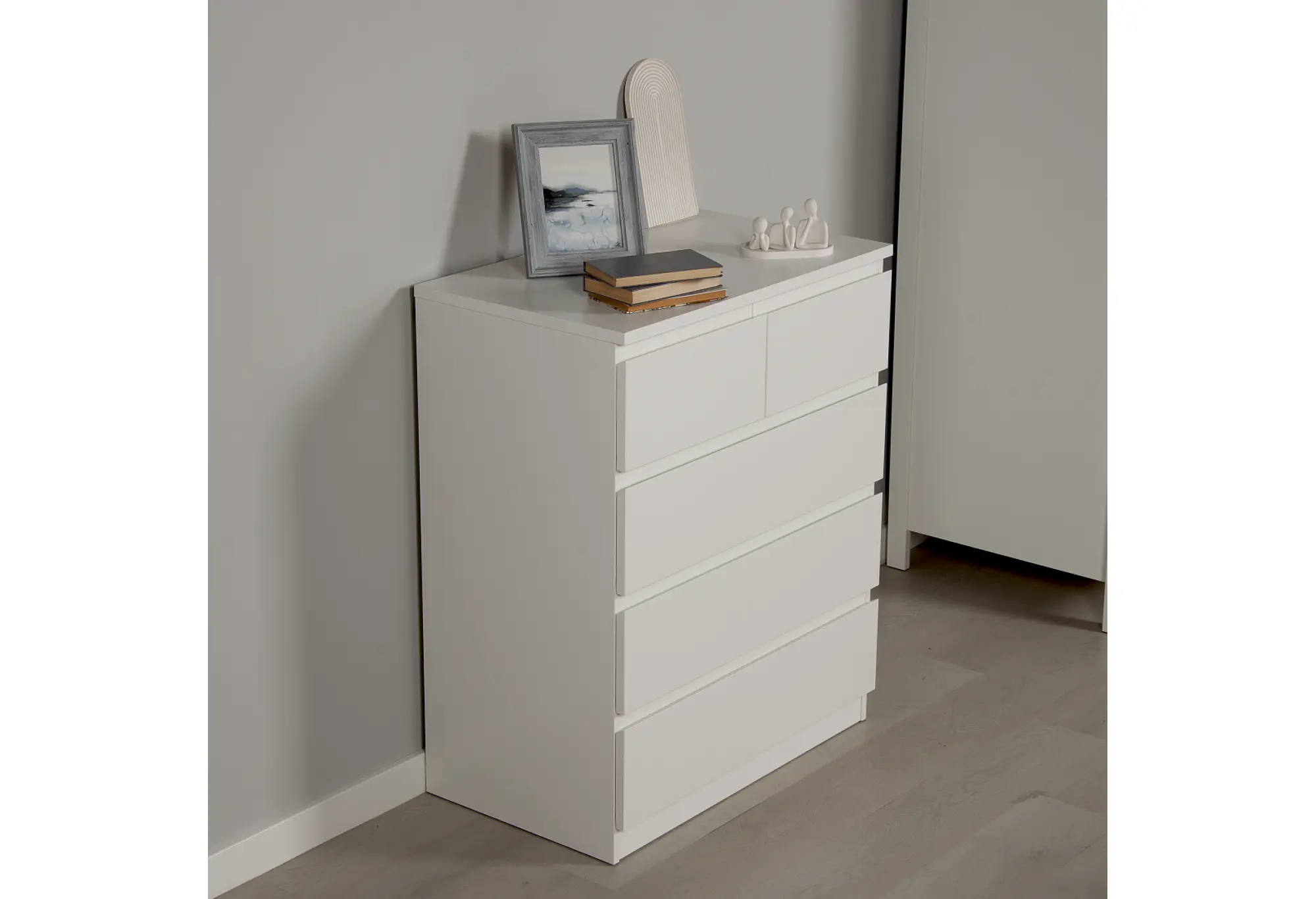 - Комод МАЛЬТА высокий с пятью выдвижными ящиками, цвет белый