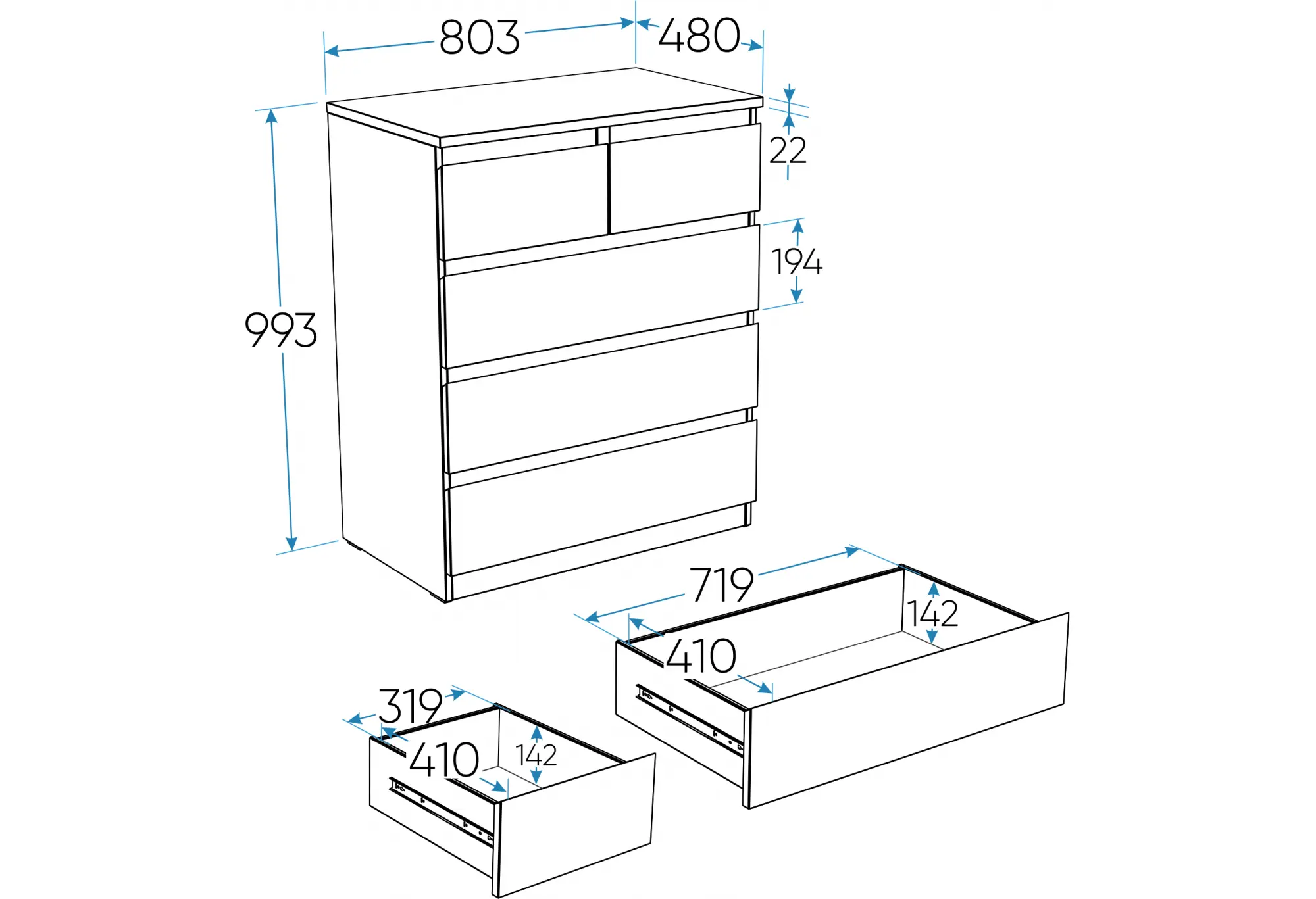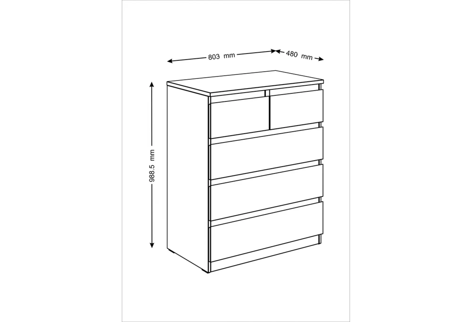 Комод МАЛЬТА с пятью выдвижными ящиками, 803х480х988, цвет Белый. Крепится к стене. Гарантийный срок для жилых помещений 24 месяца, для общественных помещений - 18 месяцев.