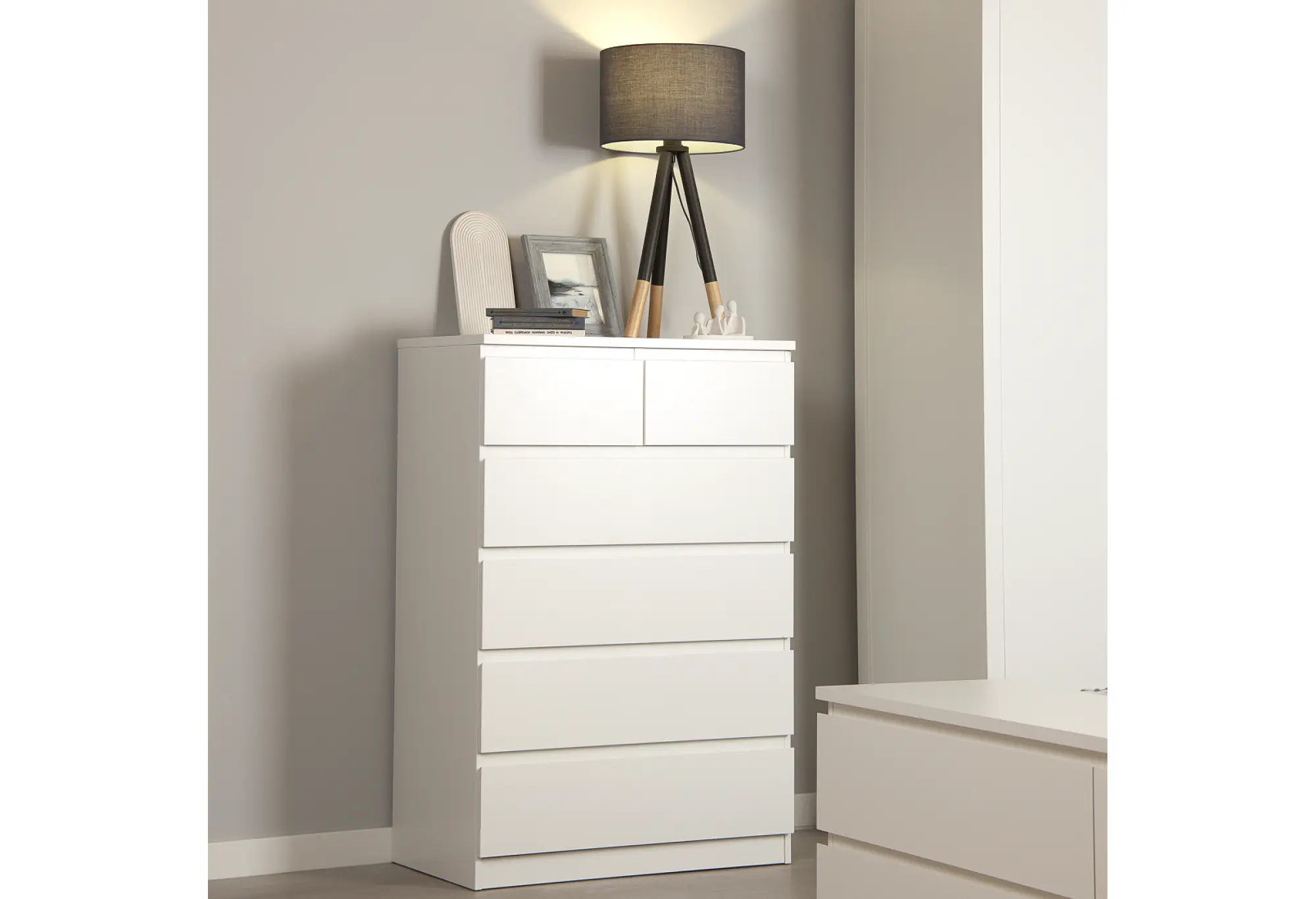 Комод МАЛЬТА высокий с шестью выдвижными ящиками, цвет белый
