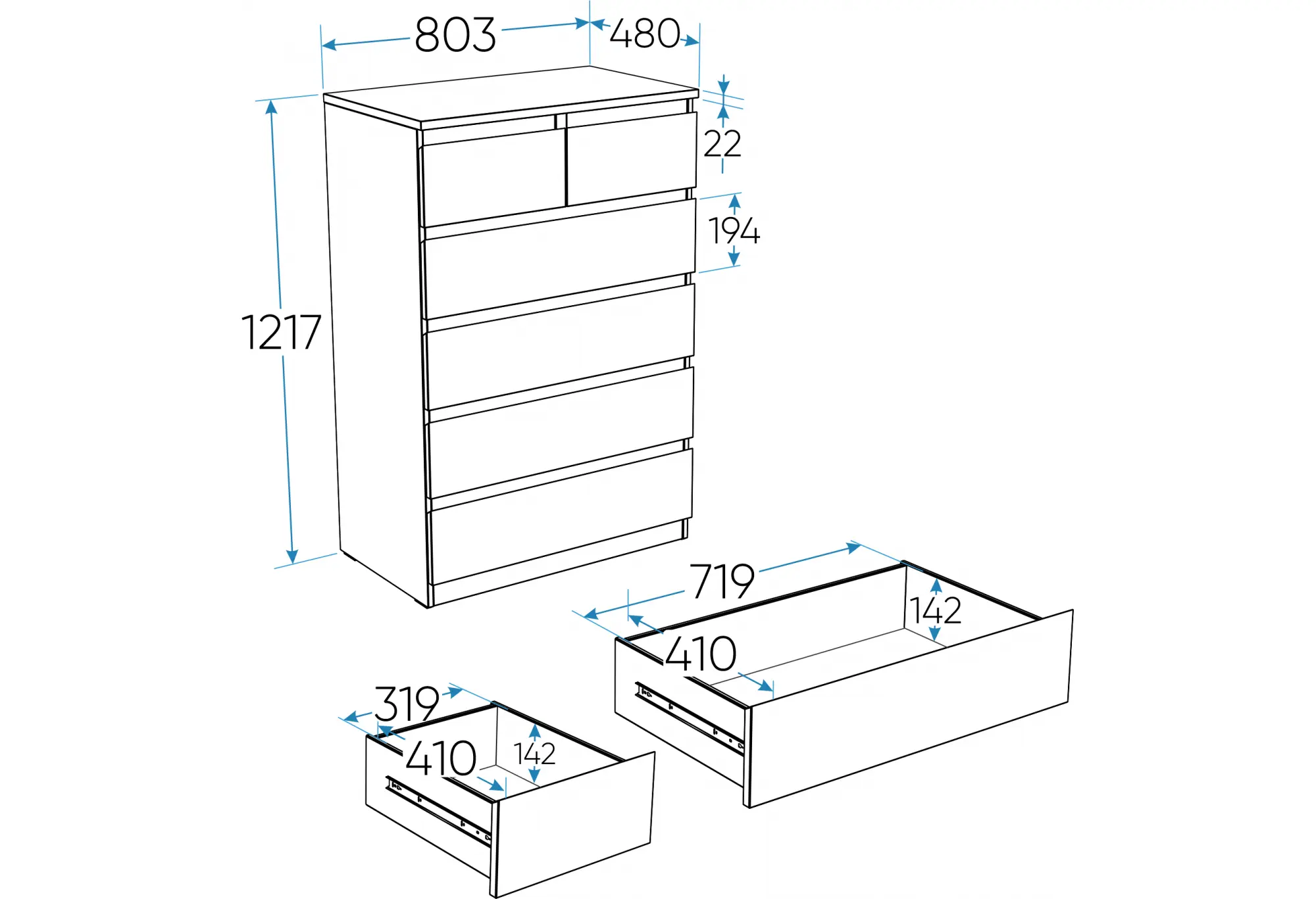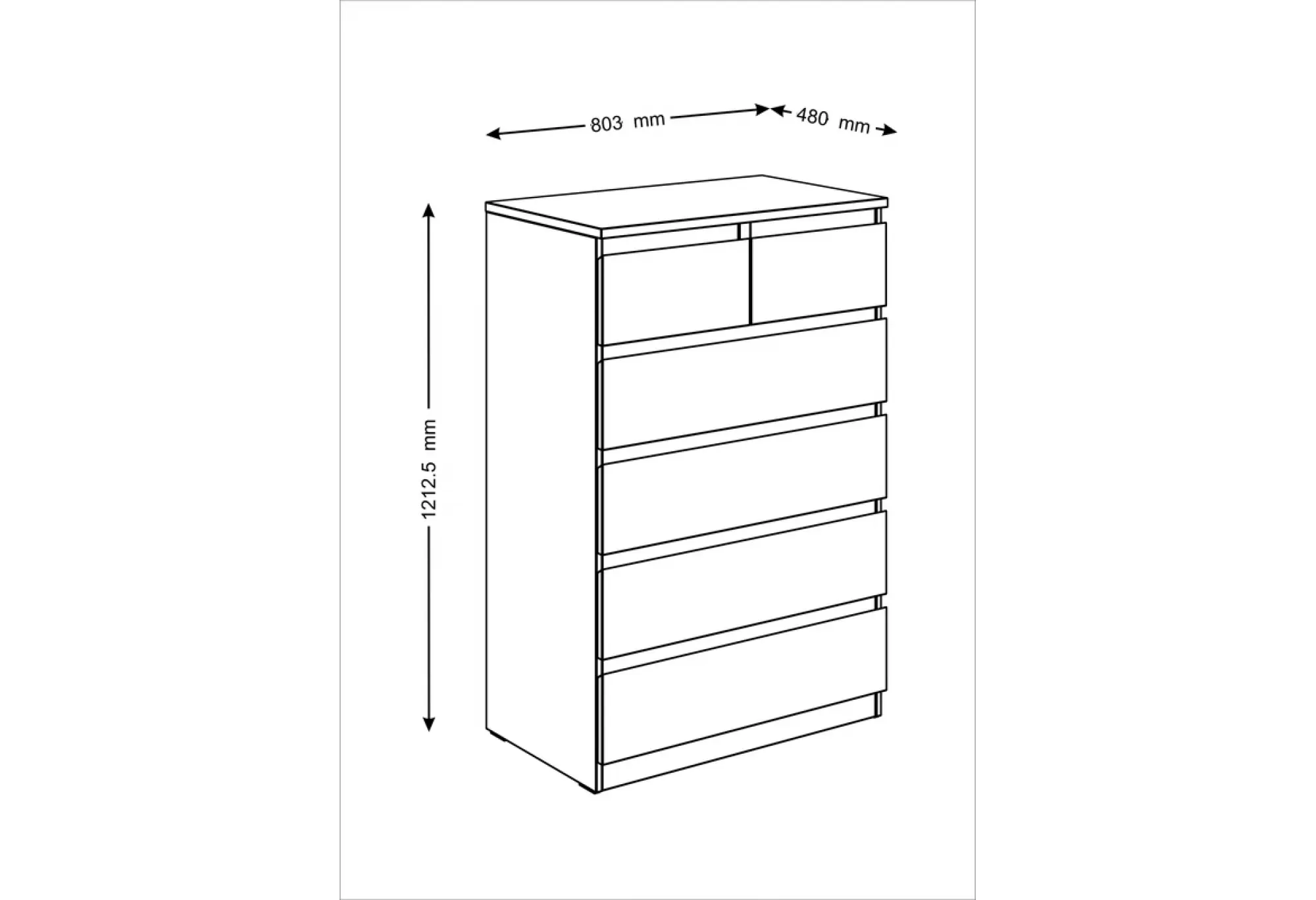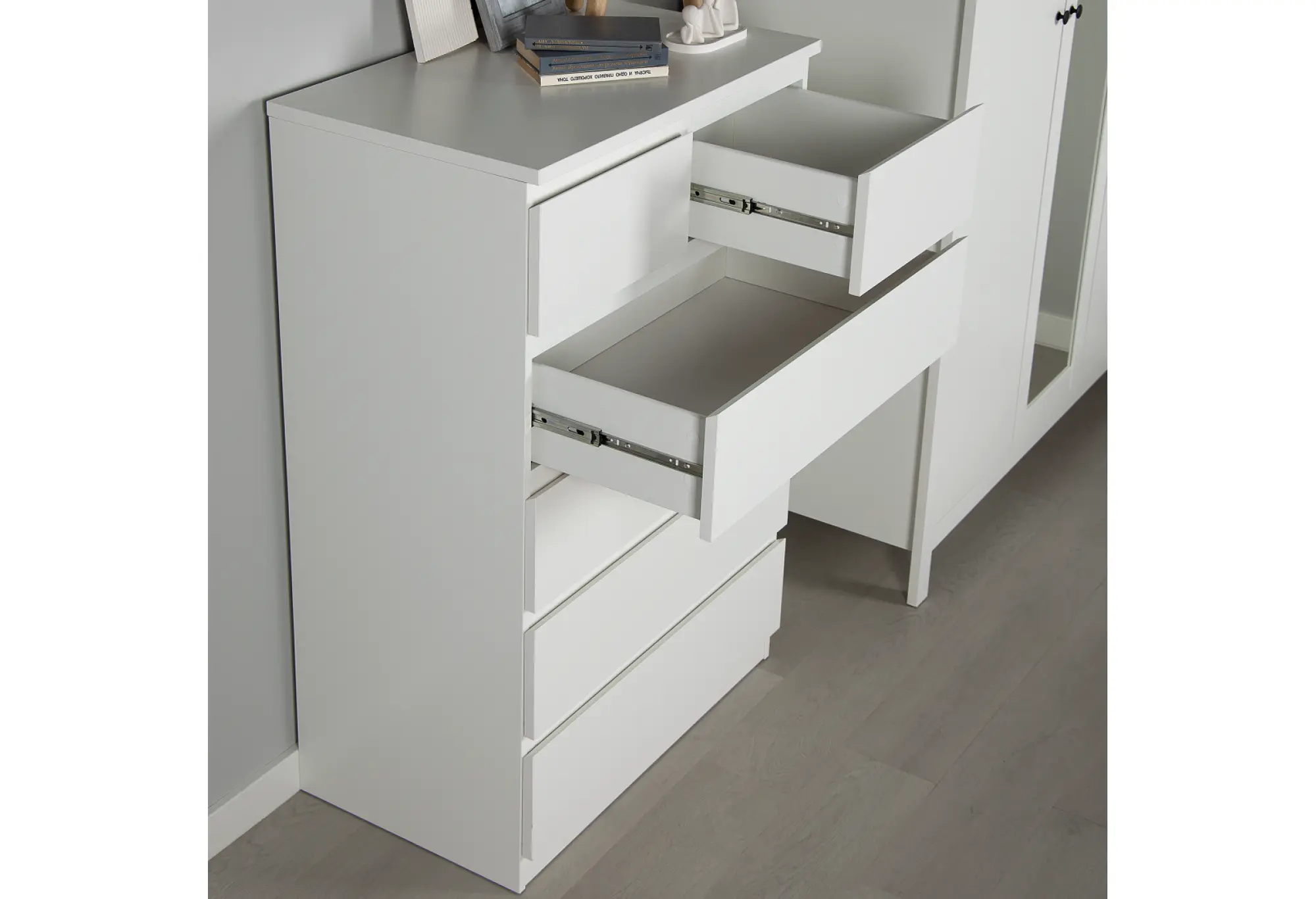 Комод МАЛЬТА с шестью выдвижными ящиками, 803х480х1212, цвет Белый. Крепится к стене. Гарантийный срок для жилых помещений 24 месяца, для общественных помещений - 18 месяцев.