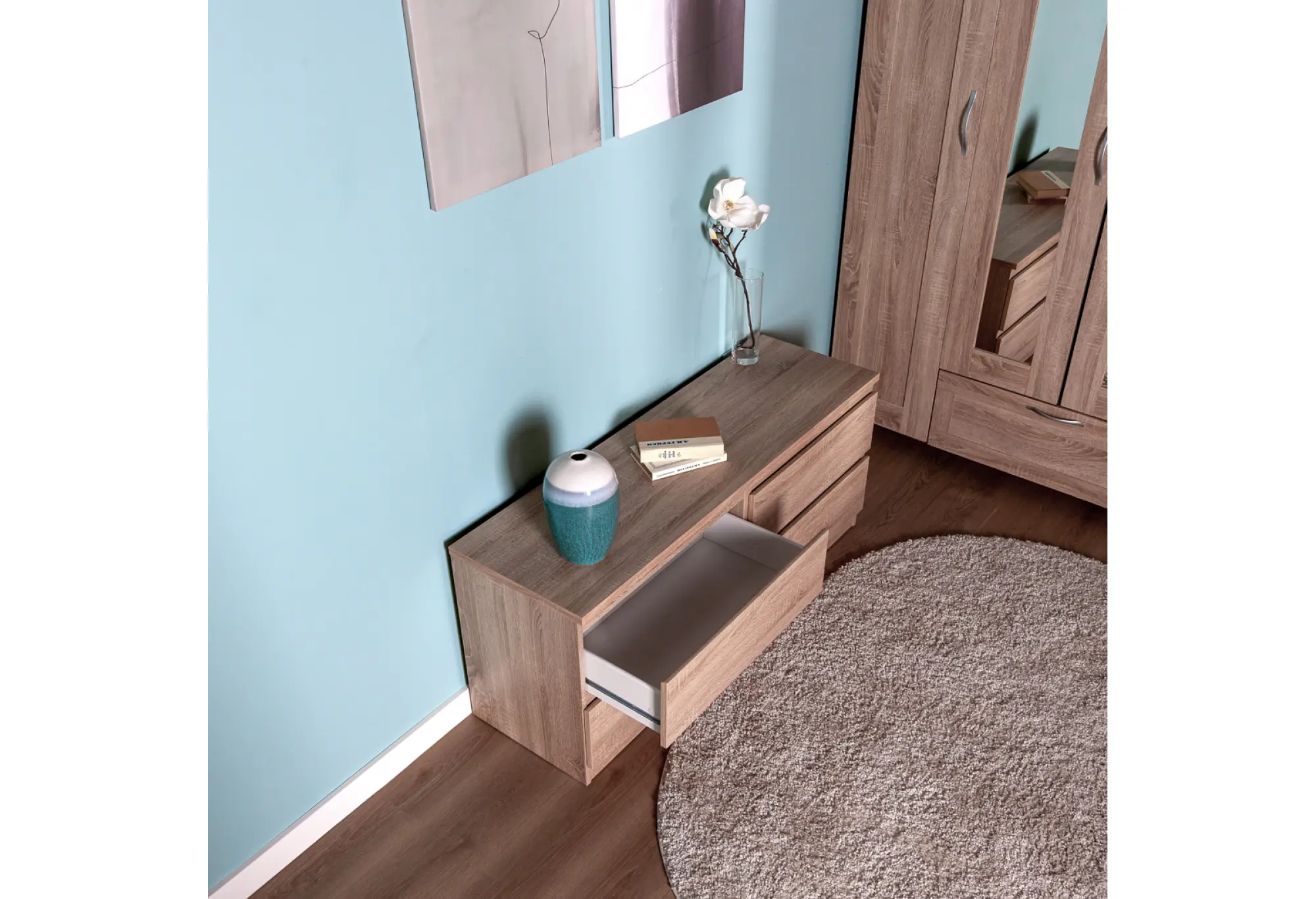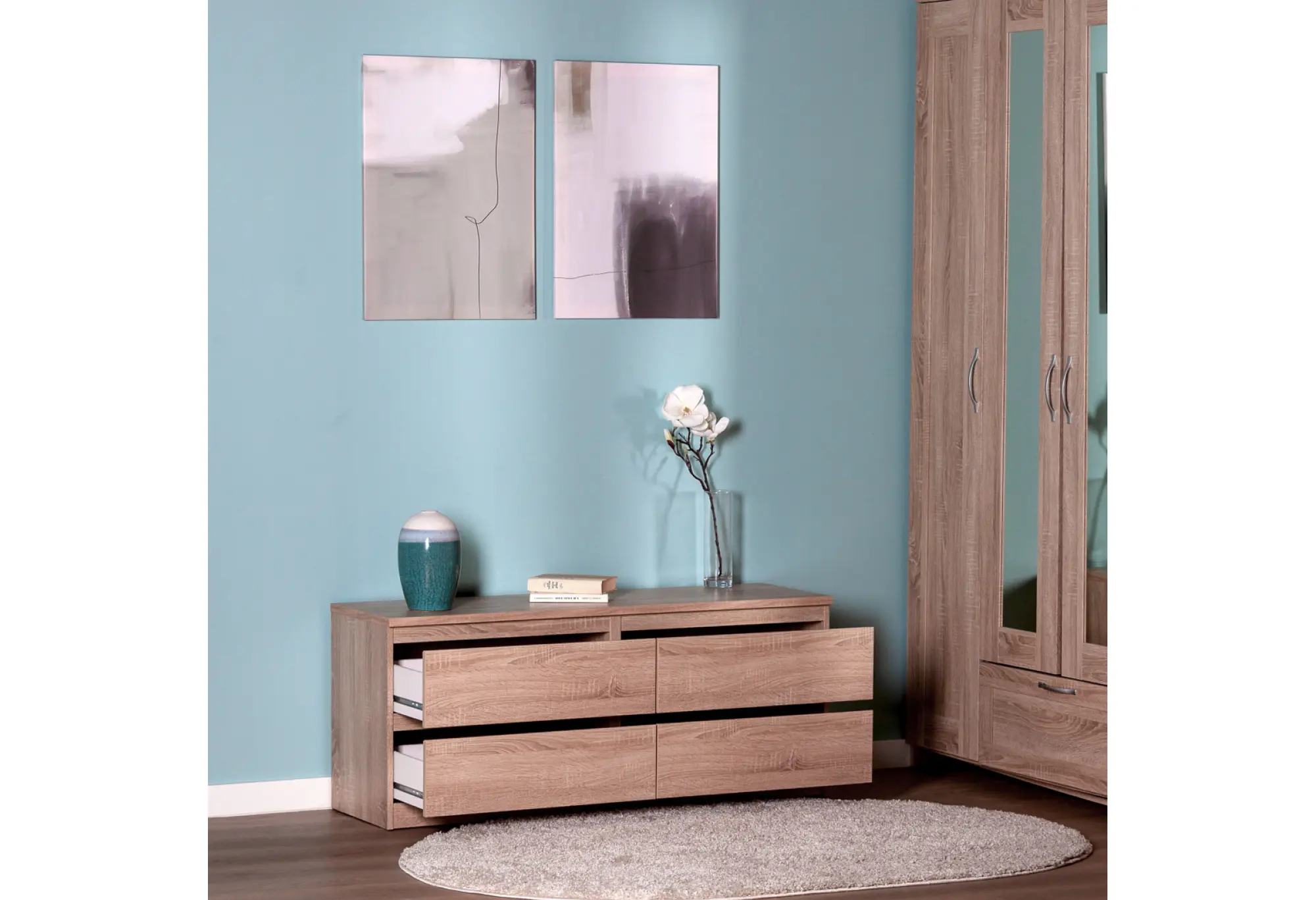 Тумба КАСТОР с четырьмя выдвижными ящиками — практичное решение для хранения вещей в доме или офисе. Продуманная длина позволяет эффективно использовать пространство вдоль стены, под телевизором или в зоне отдыха. Четыре наружных ящика обеспечивают удобный доступ ко всем хранящимся предметам - от белья и одежды до документов и бытовых мелочей.