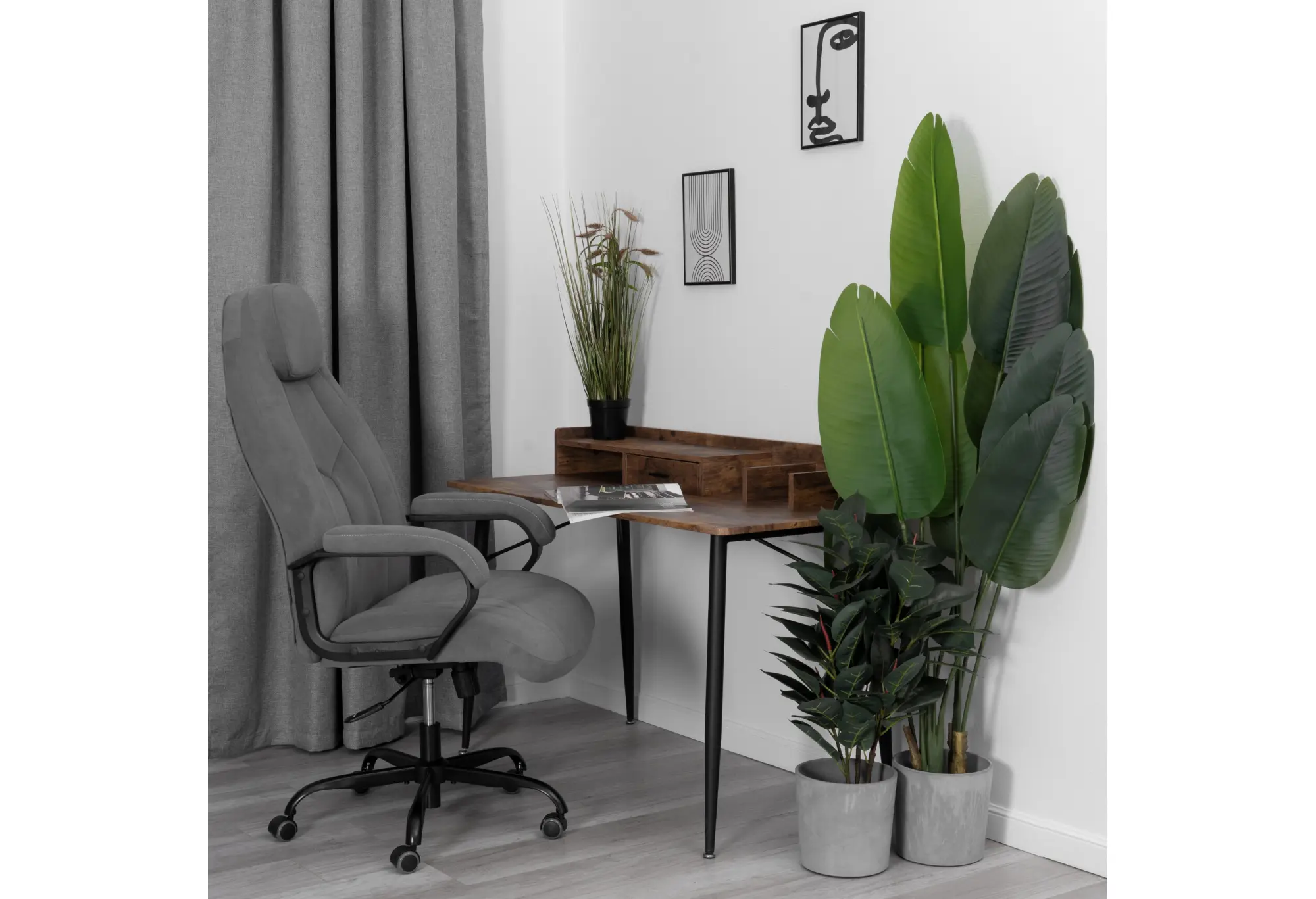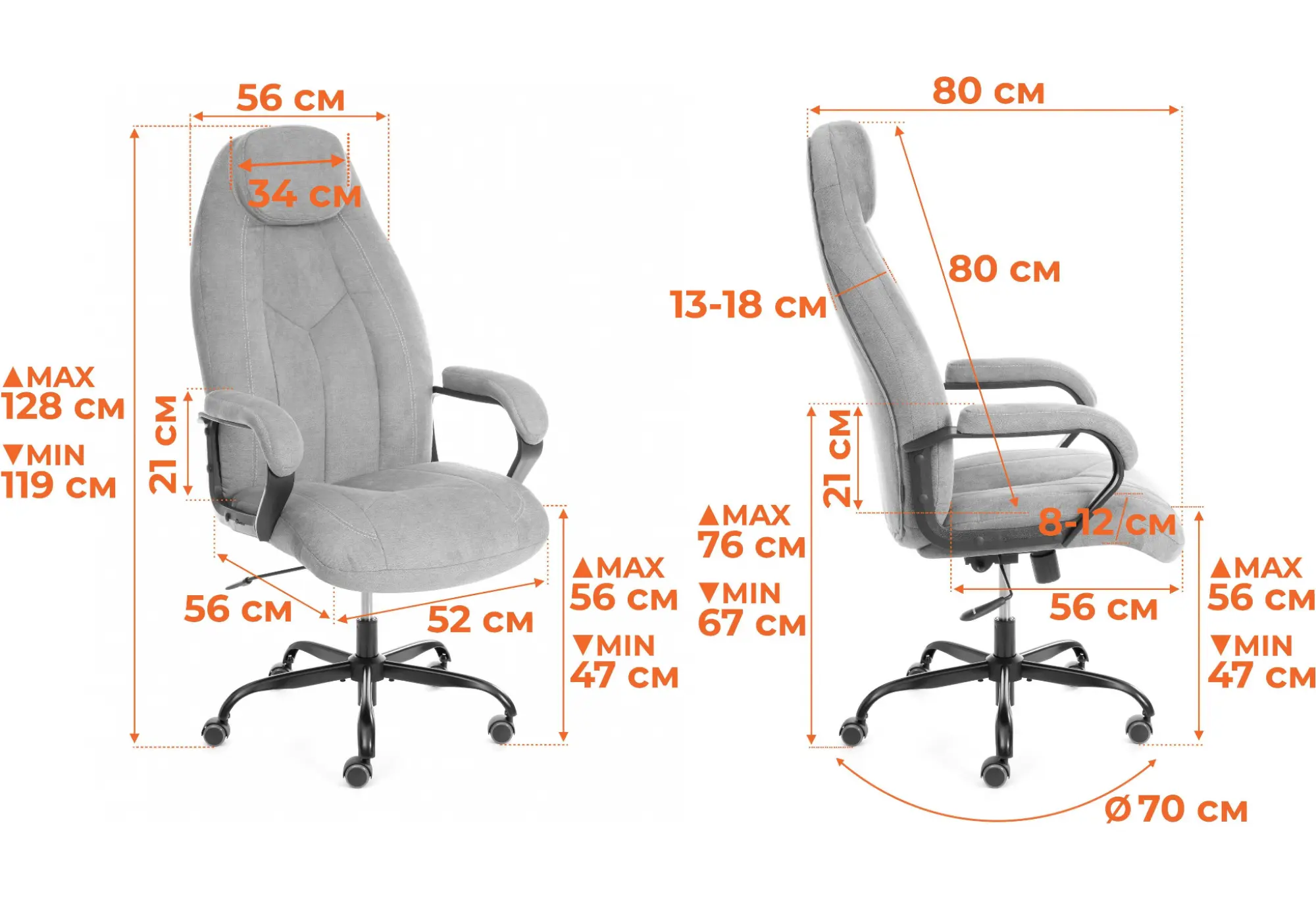 Практичное и функциональное компьютерное кресло Boss metalBL – необычный акцент в пространстве вашего дома или офиса. Модель прекрасно подойдет как для кабинета руководителя, так и для переговорной комнаты. Сиденье с мягким наполнителем из пенополиуретана стандартной плотности (до 35 кг/м2) уменьшит усталость при длительной работе. Каркас офисного кресла изготовлен из фанеры толщиной до 15 мм. Такой материал обладает отличными эксплуатационными качествами, прочностью и долговечностью. Кресло регулируется по высоте и наклону с фиксацией в нескольких положениях до 15 градусов. Жесткость механизма качания настраивается при помощи специального барабана. Стальная (разборная) крестовина надежна, основательна и устойчива. Ролики из полиуретана с прорезиненными вставками не шумят при перемещении, не оставляют следов на напольном покрытии. Ролики и крестовина в креслах бренда TETCHAIR соответствуют стандарту BIFMA. Во всех креслах бренда TETCHAIR используются газлифты 3 класса, он способен выдерживать вес до 120 кг. Удобный подголовник и фиксированные пластиковые подлокотники с мягкими накладками снизят нагрузку на шею и плечевой пояс. Оригинальное офисное кресло Boss metalBL , обитое высокопрочной износостойкой экокожей или флоком, представлено в нескольких вариантах. Обивка используемая при изготовлении кресла, выдерживает до 50 000 циклов на истирание по Мартиндейлу. Эргономичная модель подчеркнет безупречный вкус владельца, будет радовать своей долговечностью, презентабельностью и практичностью продолжительное время. Максимальная нагрузка 120 кг. Модель поставляется в разобранном виде. Требуется простая сборка по прилагаемой инструкции.
