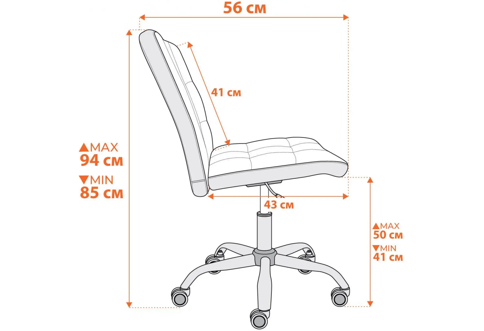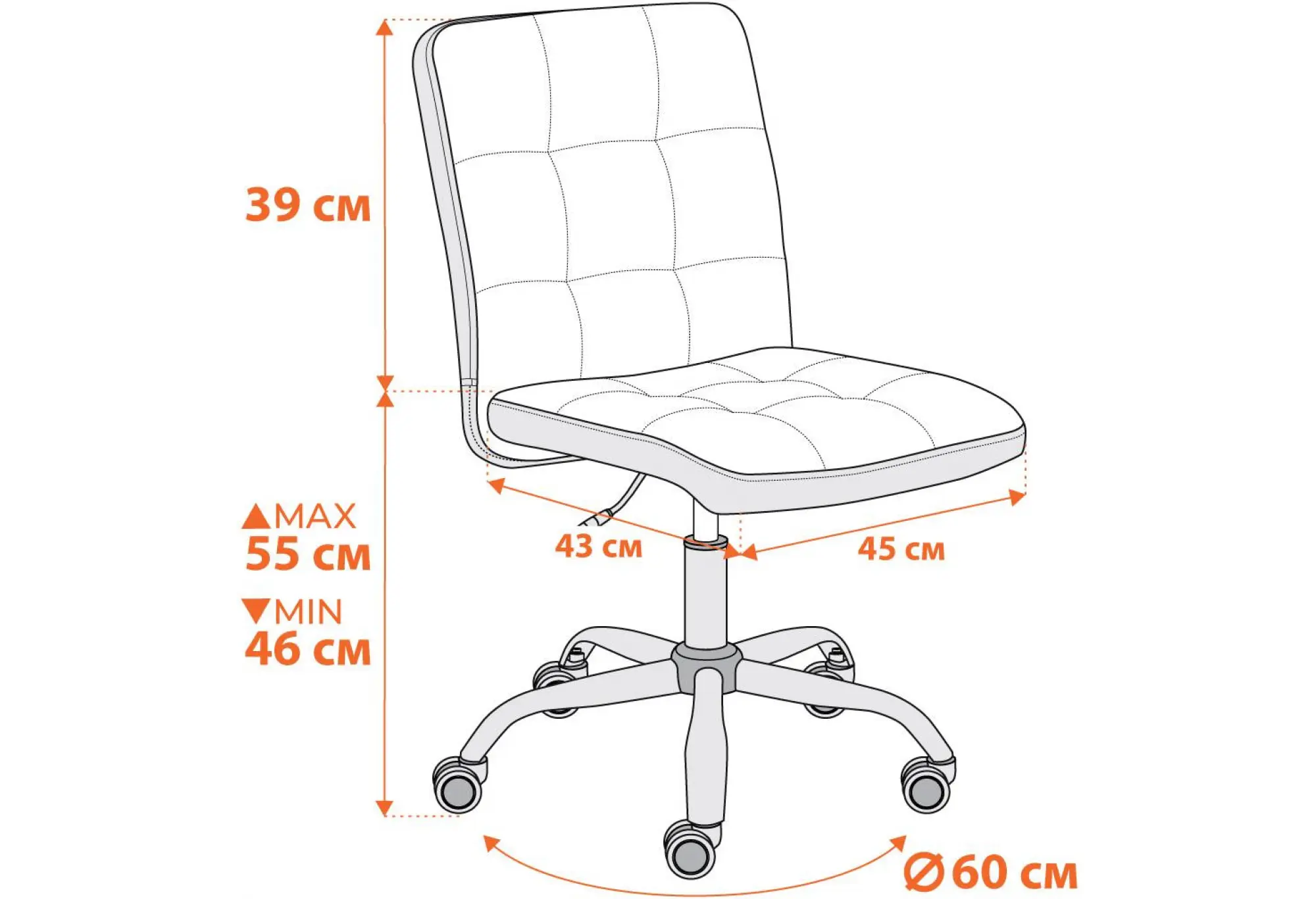Кресло FIESTA — идеальное сочетание комфорта, функциональности и современного дизайна. Это кресло станет отличным выбором для тех, кто проводит много времени за компьютером, обеспечивая настоящую поддержку и удобство. Ключевые особенности кресла FIESTA: - Устойчивость и надежность. Прочная 5-лучевая стальная хромированная крестовина (диаметр 600 мм) обеспечивает высокую устойчивость, а ролики с полиуретановым напылением защищают ваше напольное покрытие от повреждений, что делает кресло подходящим для паркета и ламината. - Регулируемая высота. Сиденье из фанеры (10 мм) и спинка с металлическим каркасом, наполненная ППУ плотностью не менее 30 кг/м³, обеспечивают оптимальную поддержку и комфорт даже при длительном использовании. - Качественная обивка. Обивка из экокожи (плотность 320 г/м²)й придает креслу презентабельный вид и защищает его от загрязнений. Этот материал долговечен, легко чистится и обеспечивает хороший воздухообмен - Современный дизайн. Стильное оформление кресла сделает его отличным дополнением к любому интерьеру, добавляя уют и элегантность в ваш дом или офис. Дополнительные характеристики: - Максимальная нагрузка: 100 кг. - Сборка. Кресло поставляется в разобранном виде, комплектуется простой инструкцией для сборки. Кресло FIESTA — ваш надежный помощник для комфортной работы и отдыха в любое время.Размер: