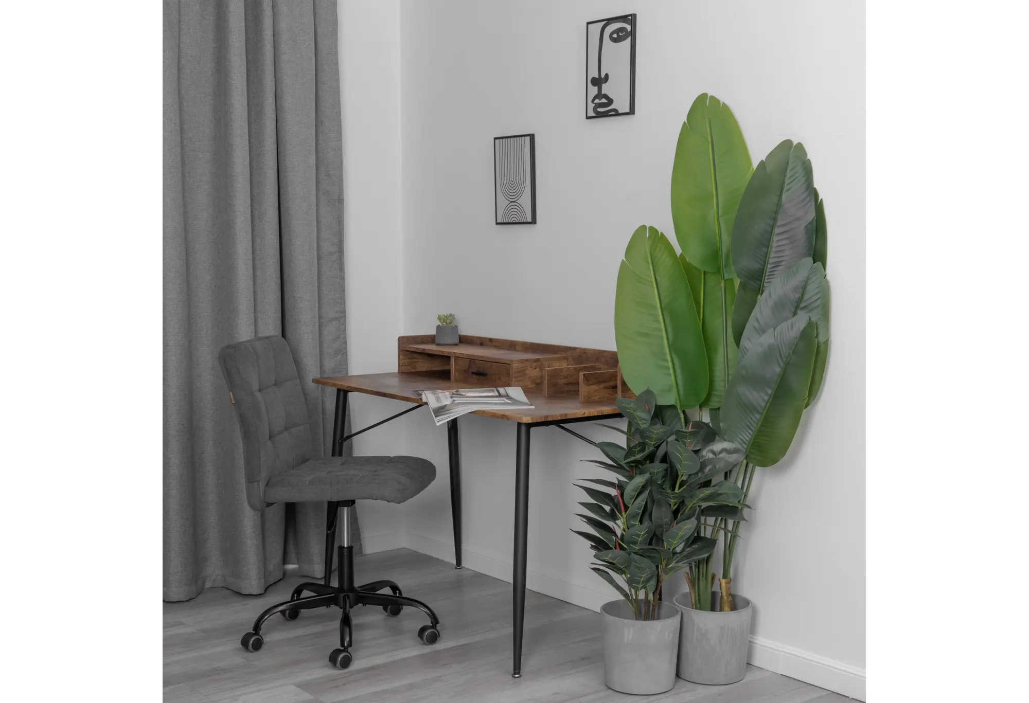 Кресло FIESTA — идеальное сочетание комфорта, функциональности и современного дизайна. Это кресло станет отличным выбором для тех, кто проводит много времени за компьютером, обеспечивая настоящую поддержку и удобство. Ключевые особенности кресла FIESTA: - Устойчивость и надежность. Прочная 5-лучевая стальная крестовина (диаметр 600 мм) обеспечивает высокую устойчивость, а ролики с полиуретановым напылением защищают ваше напольное покрытие от повреждений, что делает кресло подходящим для паркета и ламината. - Регулируемая высота. Сиденье из фанеры (10 мм) и спинка с металлическим каркасом, наполненная ППУ плотностью не менее 30 кг/м³, обеспечивают оптимальную поддержку и комфорт даже при длительном использовании. - Качественная обивка. Обивка из рогожки придает креслу презентабельный вид и защищает его от загрязнений. Этот материал долговечен, легко чистится и обеспечивает хороший воздухообмен - Современный дизайн. Стильное оформление кресла сделает его отличным дополнением к любому интерьеру, добавляя уют и элегантность в ваш дом или офис. Дополнительные характеристики: - Максимальная нагрузка: 100 кг. - Сборка. Кресло поставляется в разобранном виде, комплектуется простой инструкцией для сборки. Кресло FIESTA — ваш надежный помощник для комфортной работы и отдыха в любое время.