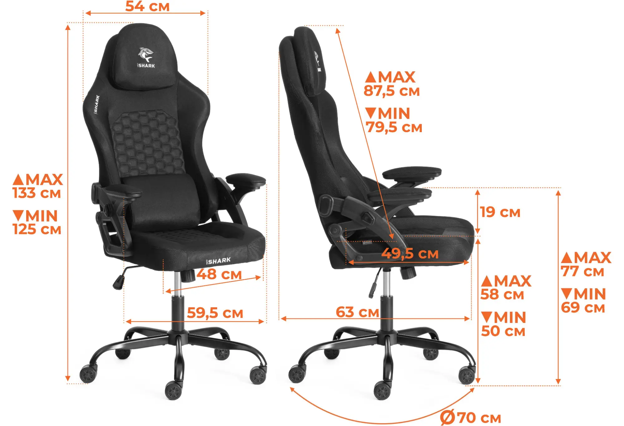 Кресло iShark — это отличное сочетание дизайна, комфорта и функциональности для недорогого, но качественного игрового кресла. Вот несколько ключевых характеристик и особенностей, которые делают это кресло привлекательным вариантом: Каркас: Металлический каркас спинки из трубы толщиной 1,2 мм обеспечивает прочность и долговечность. Сиденье: Изготовлено из многослойной фанеры толщиной не менее 12 мм, что обеспечивает стабильную основу для сидения. Наполнение: Спинка: Наполнена пенополиуретаном (ППУ) плотностью 25 кг/м³, что гарантирует хороший уровень комфорта. Сиденье: Внешний слой из ППУ не менее 25 кг/м³ сочетается с внутренним слоем переработанного ППУ плотностью 70 кг/м³ для оптимальной поддержки. Обивка: Используется триплированная ткань плотностью 160 г/м², протестированная на 20 000 циклов по методике Мартиндейла, что свидетельствует о ее износостойкости и долговечности. Крупноячеистая сетка добавляет вентиляцию и комфорт. Эргономика: Регулируемые подлокотники с мягкой накладкой и функцией встроенного в них реклайнера способствуют удобству в различных позах. Механизм изменения высоты и возможность свободного качания (от 0 до 15 градусов) с регулировкой под вес сидящего. Безопасность и устойчивость: Используется газ-лифт 3 класса (BIFMA) с ходом около 80 мм, максимальная нагрузка — 120 кг. Пятиконечная разборная база из стали (700 мм) устойчива к динамическим нагрузкам. Колеса: Полиамидные прорезиненные ролики диаметром 60 мм подходят для разных типов покрытий и имеют геймерский дизайн. Дополнительные особенности: Регулируемый по высоте подголовник и свободно лежащая поясничная подушка гарантируют дополнительную поддержку. Эстетические детали, такие как вышивка логотипа iShark и стежка в виде "соты" на спинке, делают кресло не только функциональным, но и стильным. Кресло iShark — это отличный выбор для тех, кто ценит комфорт, поддержку и стиль в своем игровом пространстве. Максимальная нагрузка модели — 120 кг. Кресло поставляется в разобранном виде, необходима несложная сборка по прилагаемой инструкции.