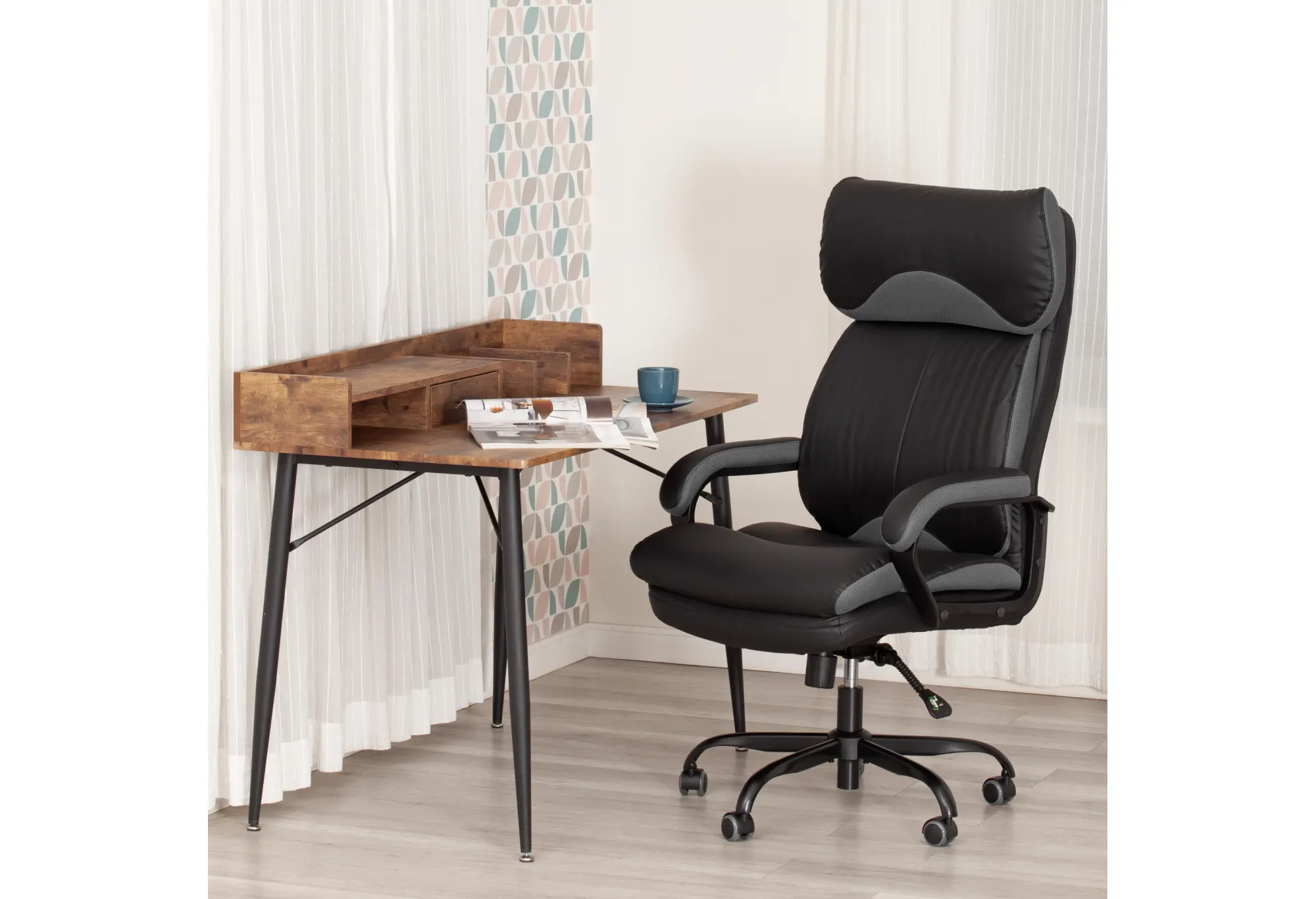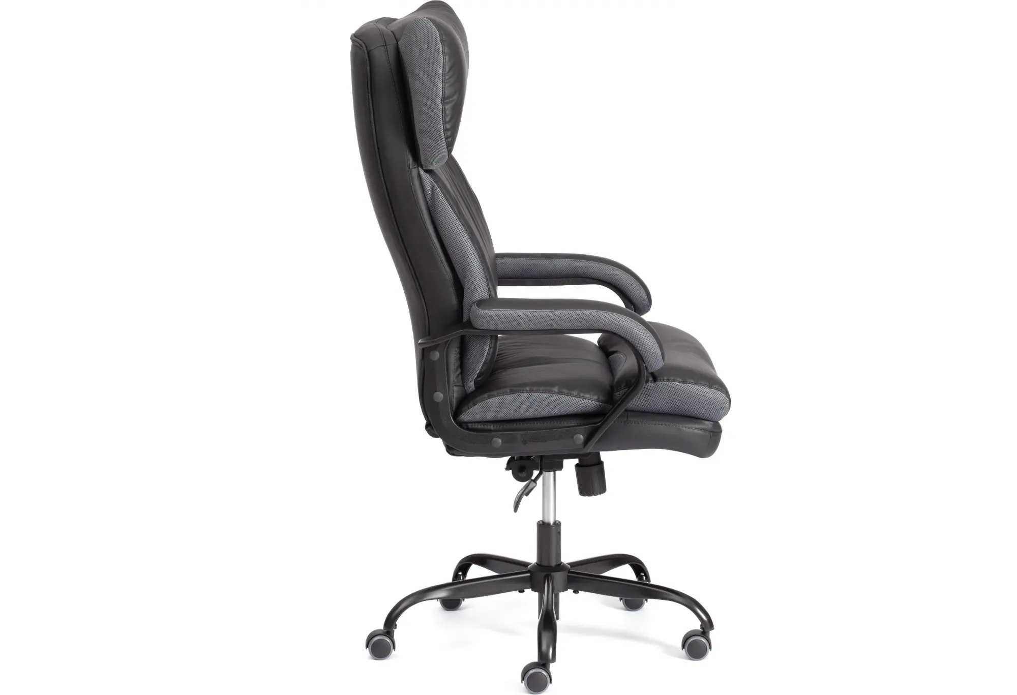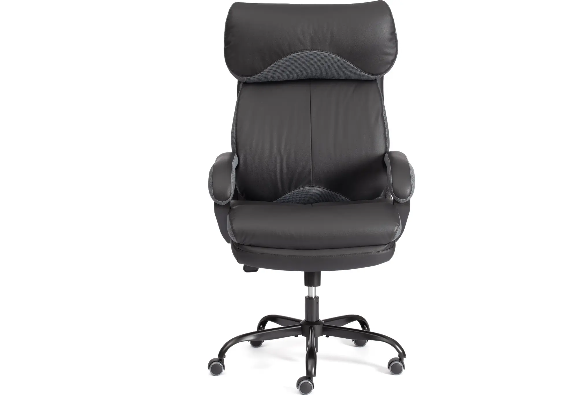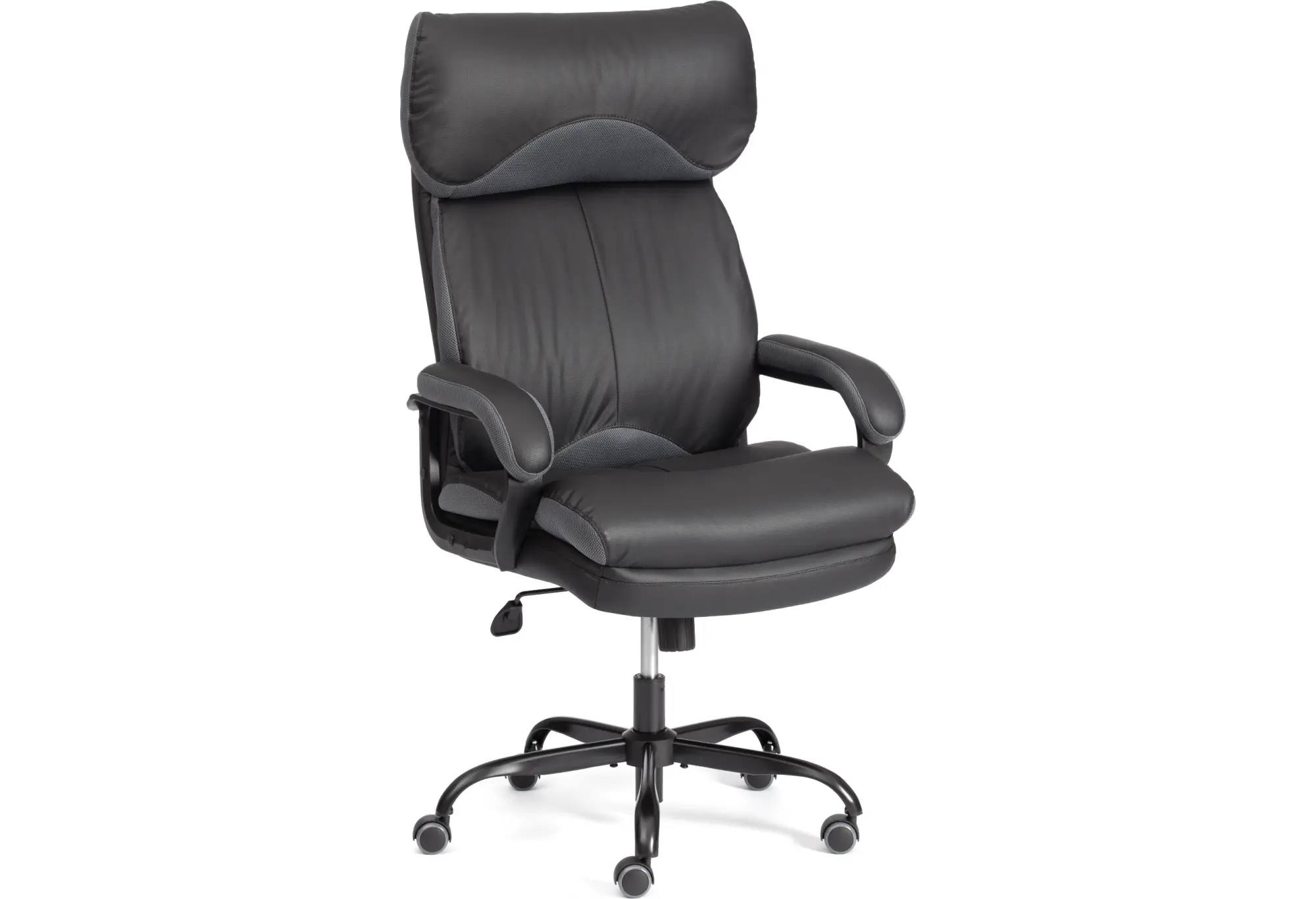 Эргономичная спинка, прочный каркас, мягкое сиденье компьютерного кресла DUKE metalBL - воплощение элегантности, практичности и солидности. Модель отлично впишется в дизайн рабочего кабинета как офиса, так и дома. Каркас из экологически безопасной фанеры толщиной до 15 мм гипоаллергенен и надежен. Широкое сиденье с мягким наполнителем из пенополиуретана стандартной плотности (до 35 кг/м2) с независимыми пружинными блоками подстраивается под контуры тела человека, обладает отличными эксплуатационными качествами. Регулировка высоты и наклона с фиксацией в любом положении до 15 градусов помогут принять комфортную позу для продолжительной работы. Cтальная крестовина покрытая черной порошковой краской (разборная), толщина стенки трубы 1,1 мм Соответствует стандарту BIFMA. Диаметр крестовины 700 мм. Крестовина обладает долгим сроком службы, не требует сложного ухода, не теряет своего первоначального внешнего вида на протяжении длительного времени. Полиуретановые ролики с прорезиненными вставками бесшумны, не повреждают напольное покрытие. Ролики и крестовина в креслах бренда TETCHAIR соответствуют стандарту BIFMA. Во всех креслах бренда TETCHAIR используются газлифты 3 класса, он способен выдерживать вес до 120 кг. Мягкий подголовник, удобные фиксированные подлокотники с накладками снимут напряжение с шеи и плеч. Офисное кресло, обитое прочной обивкой, выдерживает до 50 000 циклов на истирание по Мартиндейлу. Уникальная модель DUKE подчеркнёт безупречный вкус владельца и придаст интерьеру презентабельный вид. Максимальная нагрузка 120 кг. Компьютерное кресло поставляется в разобранном виде. Требуется простая сборка по прилагаемой инструкции.Размер: